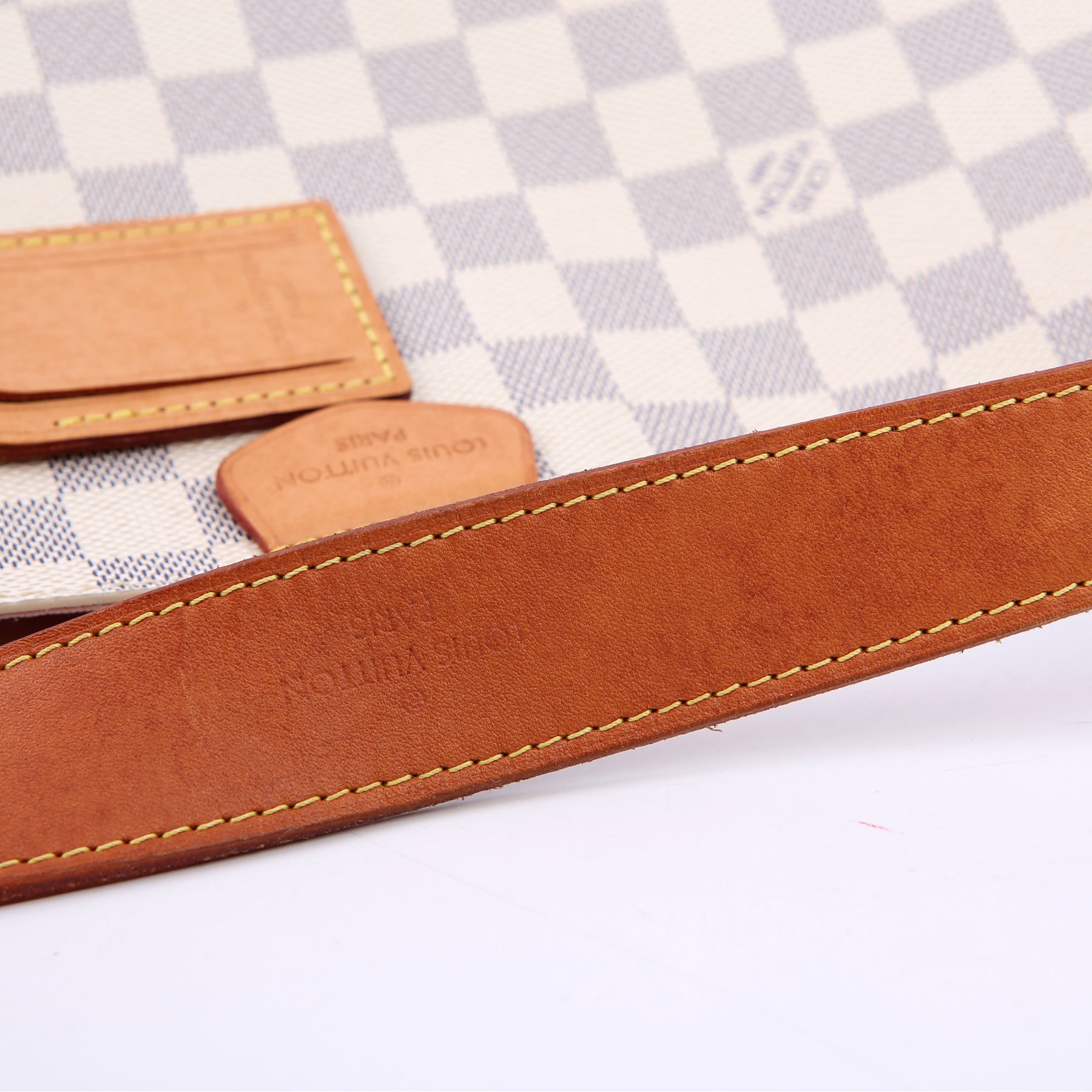 Handle: The leather handle has discoloration throughout.