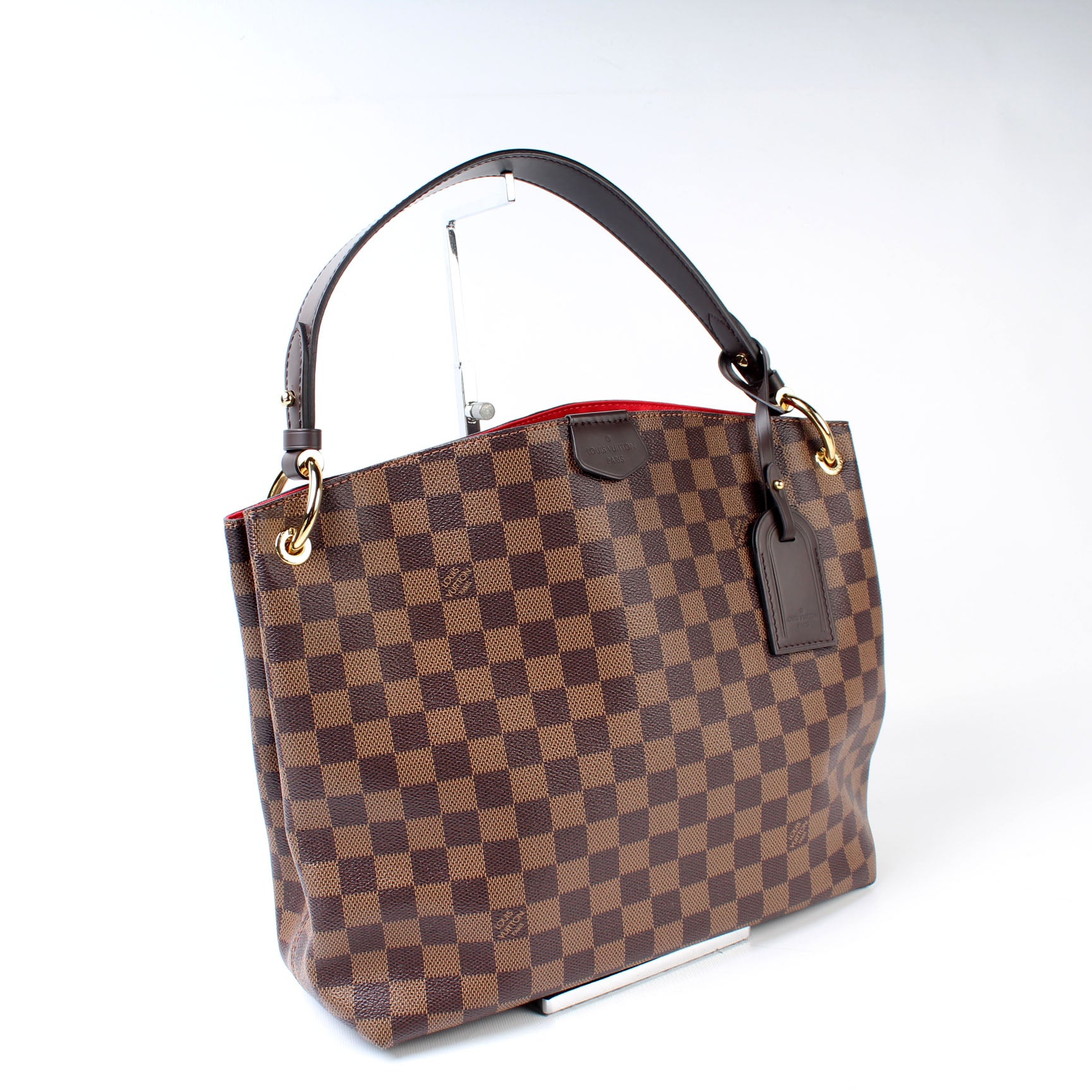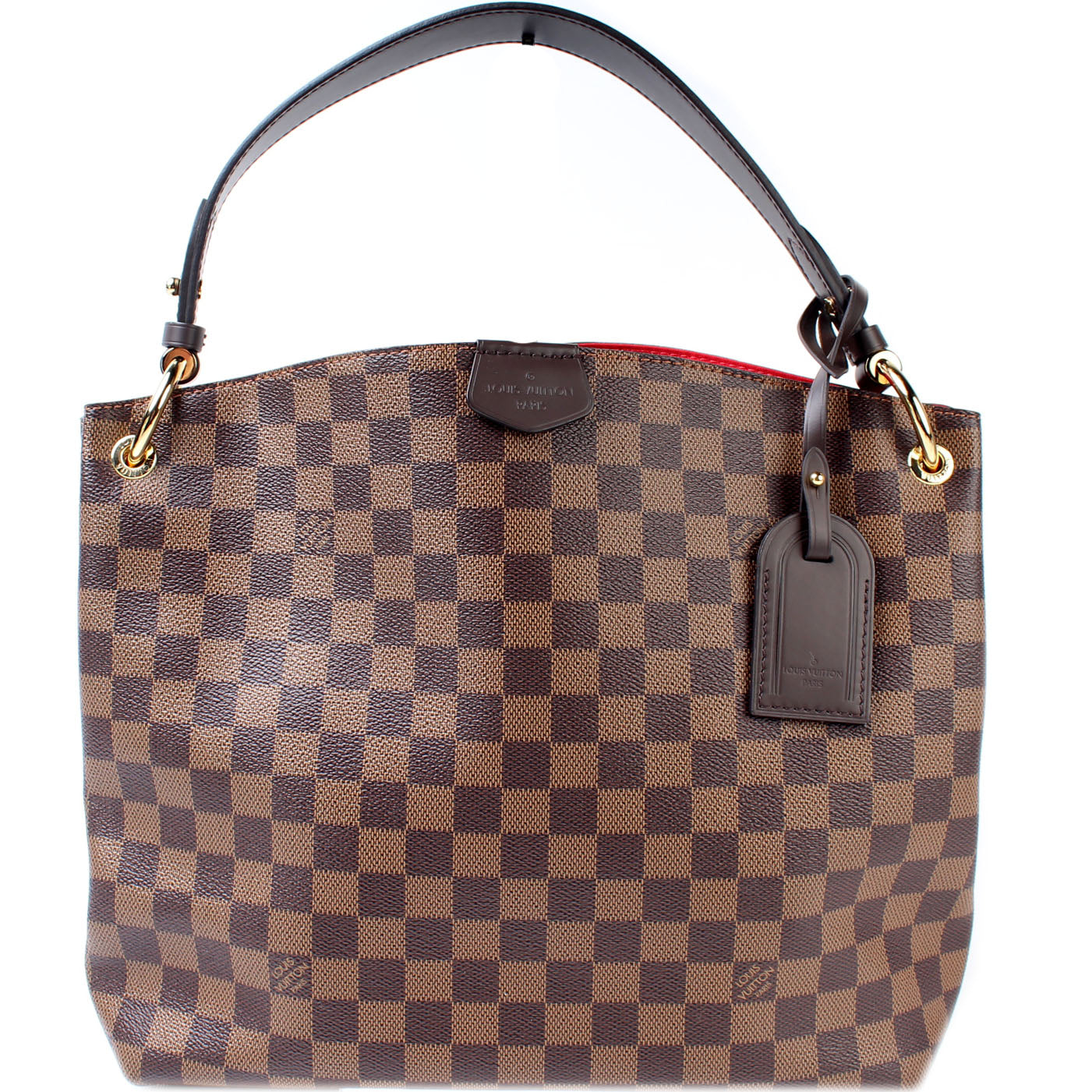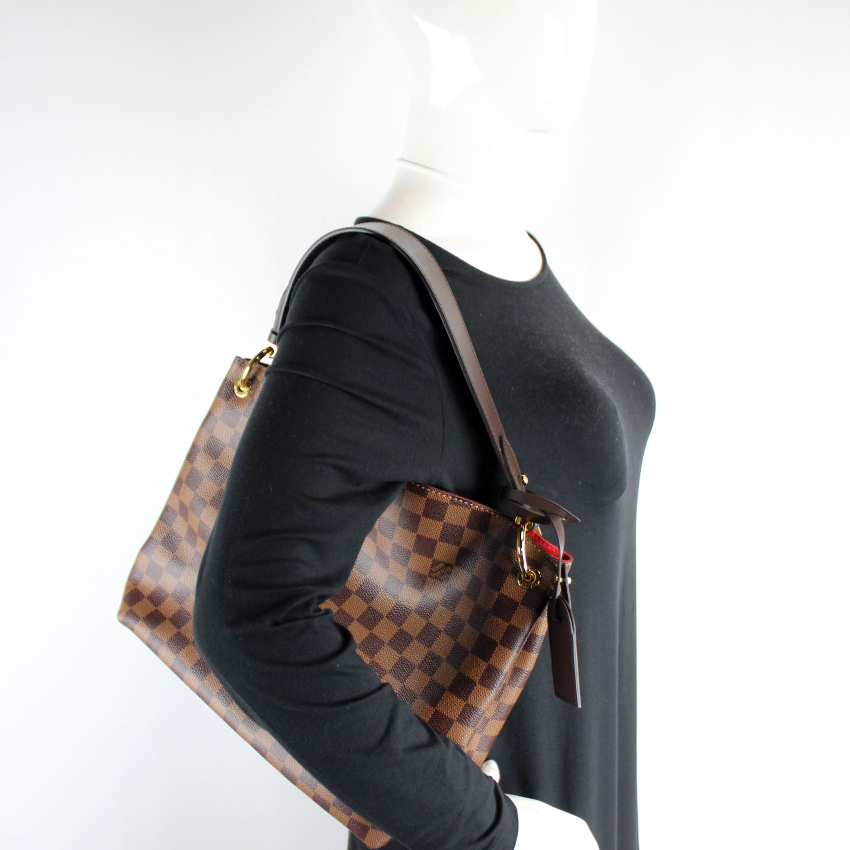 This pre-owned Louis Vuitton Graceful PM is guaranteed 100% authentic. The exterior is in the classic Louis Vuitton Damier Ebene coated canvas.
