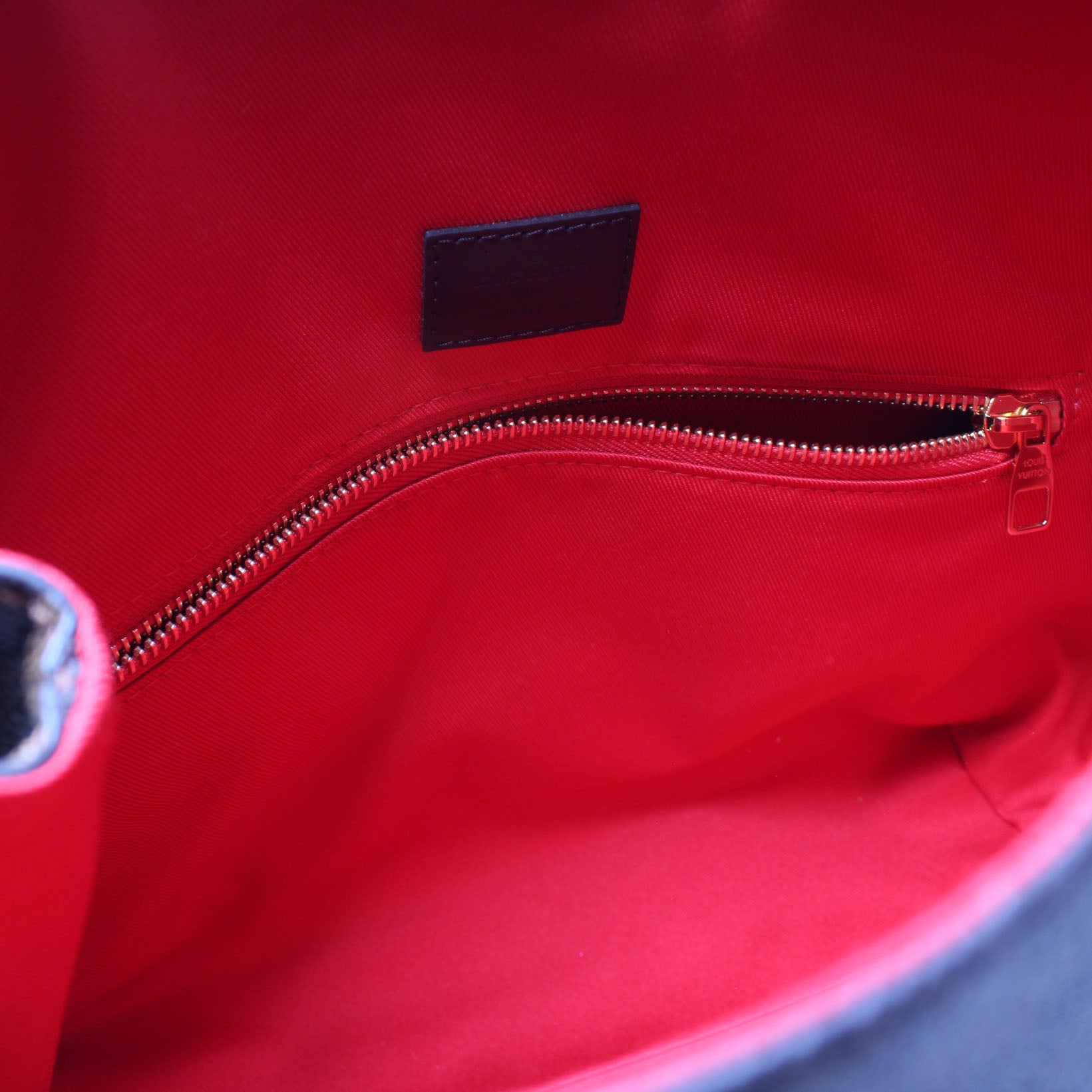 Interior: The interior is clean and free of rips or tears. The interior features one zip closure pocket.