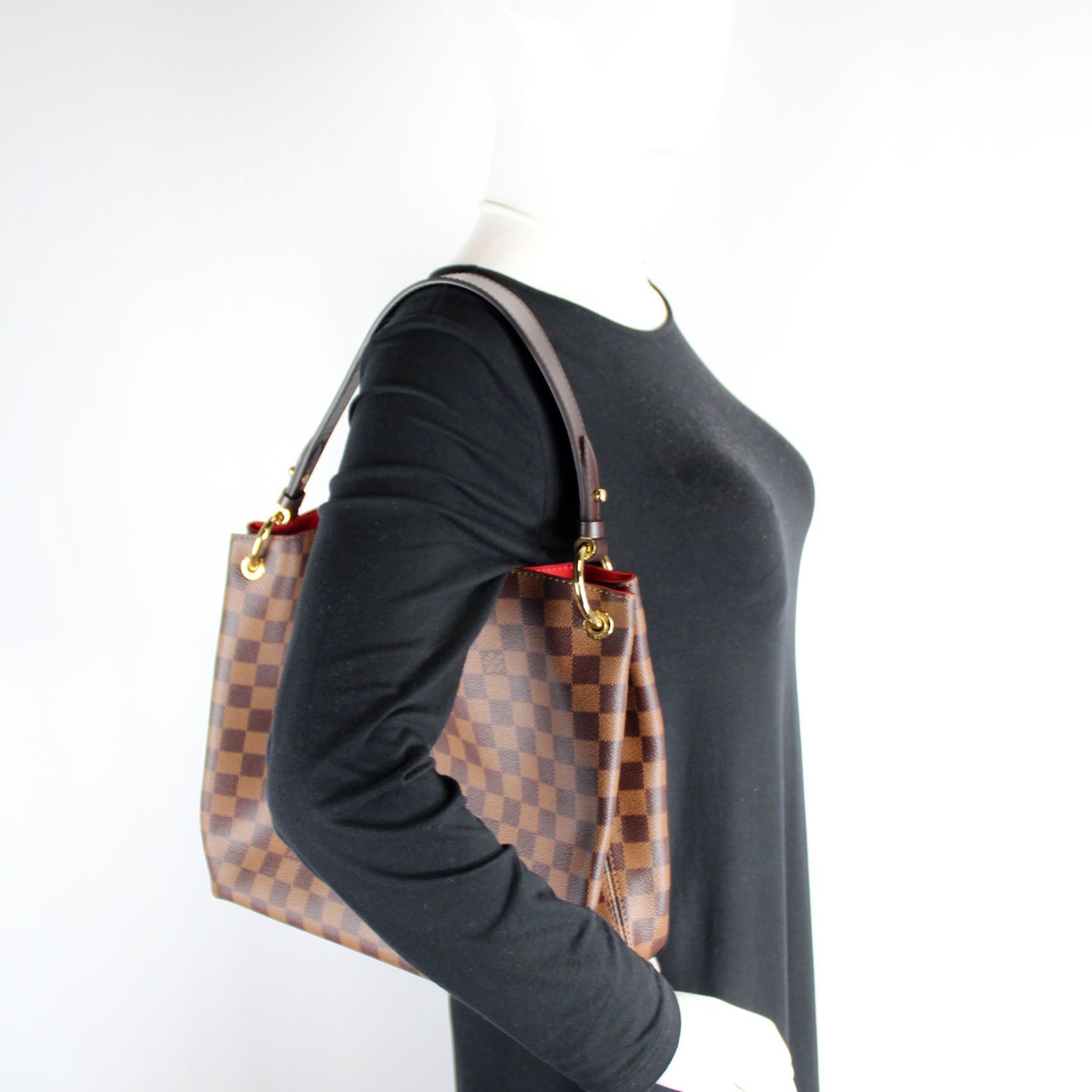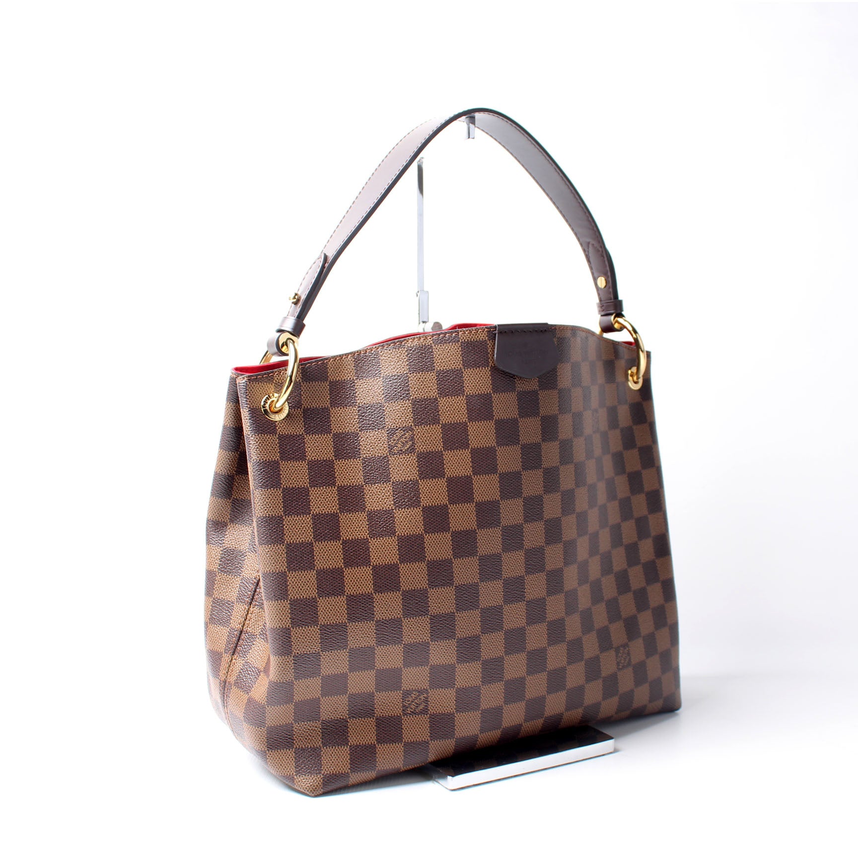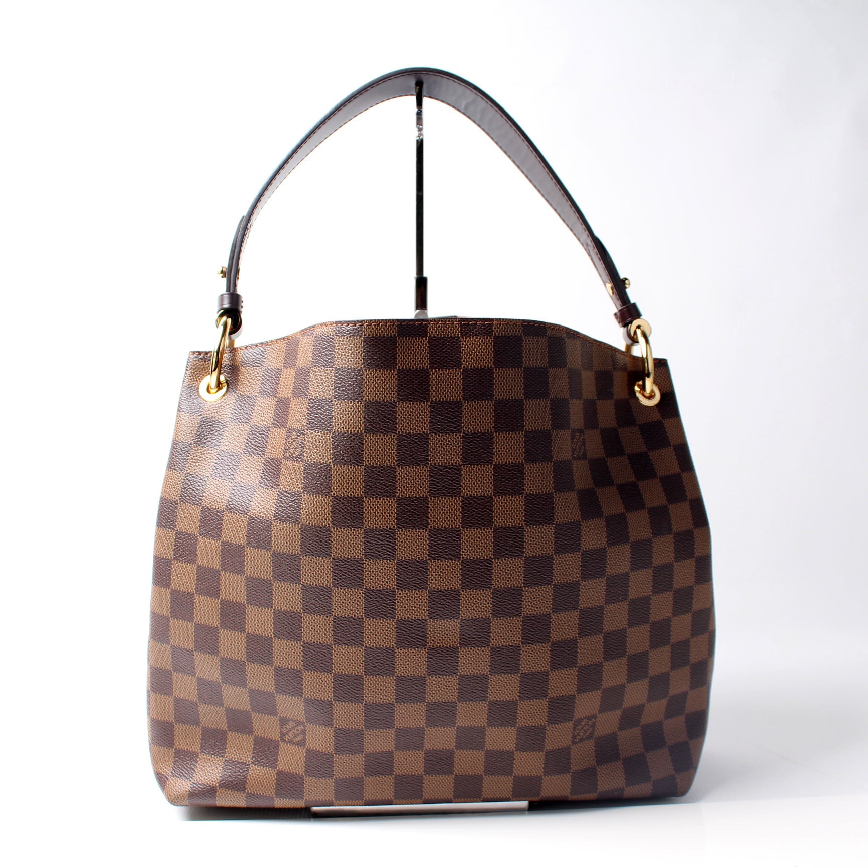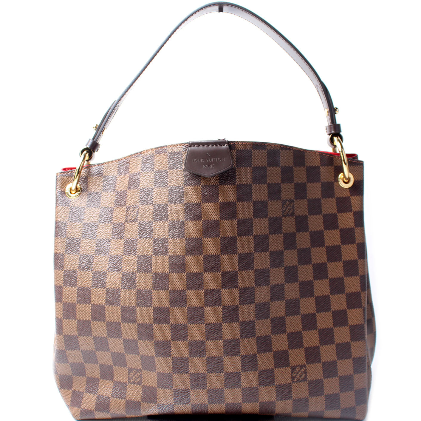 This pre-owned Louis Vuitton Graceful PM is guaranteed 100% authentic. The exterior is in the classic Louis Vuitton Damier Ebene coated canvas.