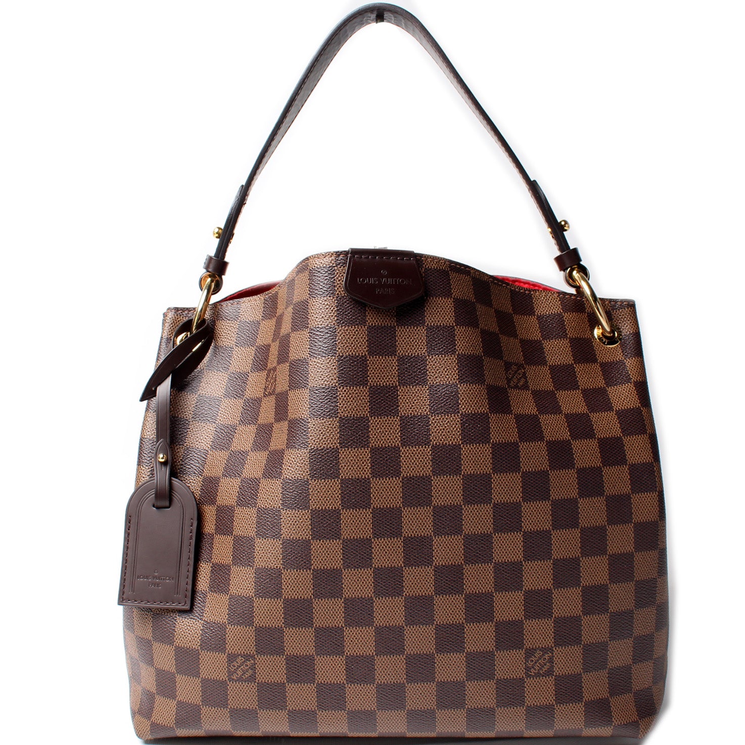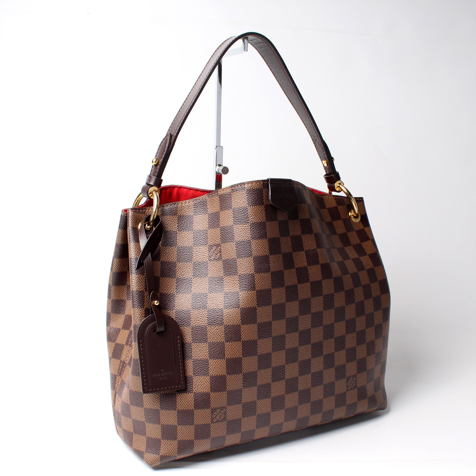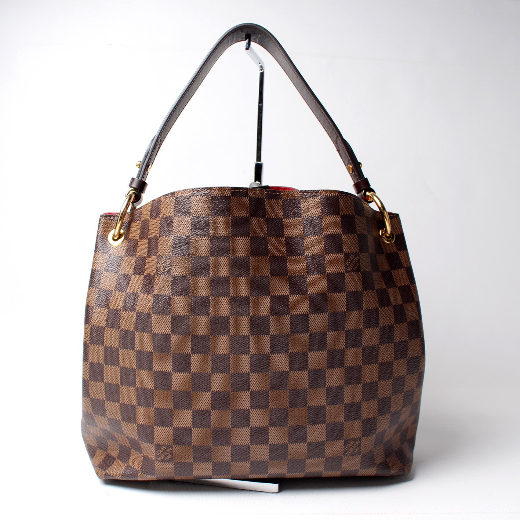 This pre-owned Louis Vuitton Graceful PM is guaranteed 100% authentic. The exterior is in the classic Louis Vuitton Damier Ebene coated canvas.
