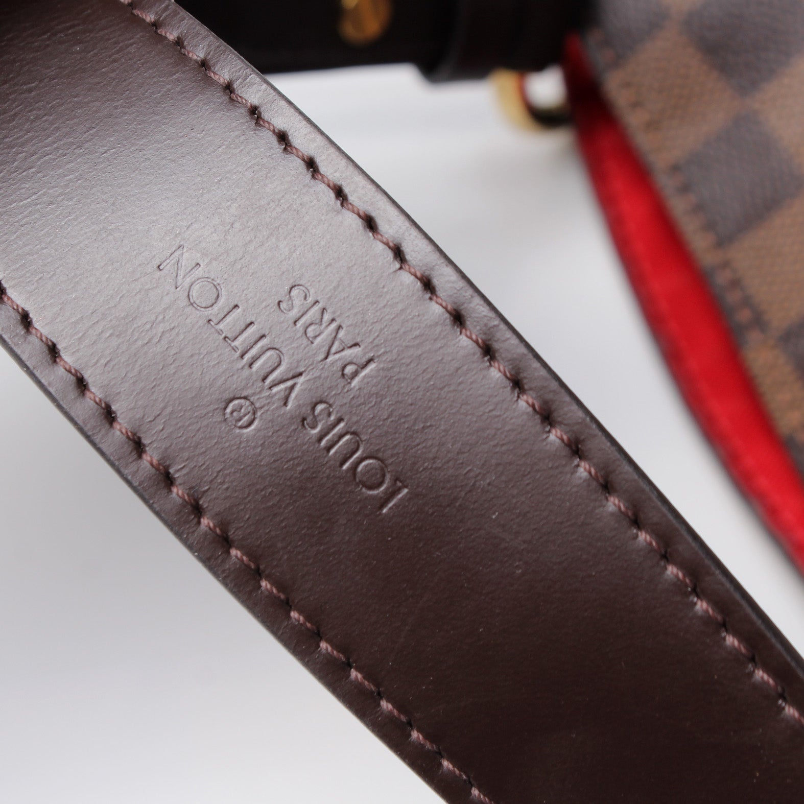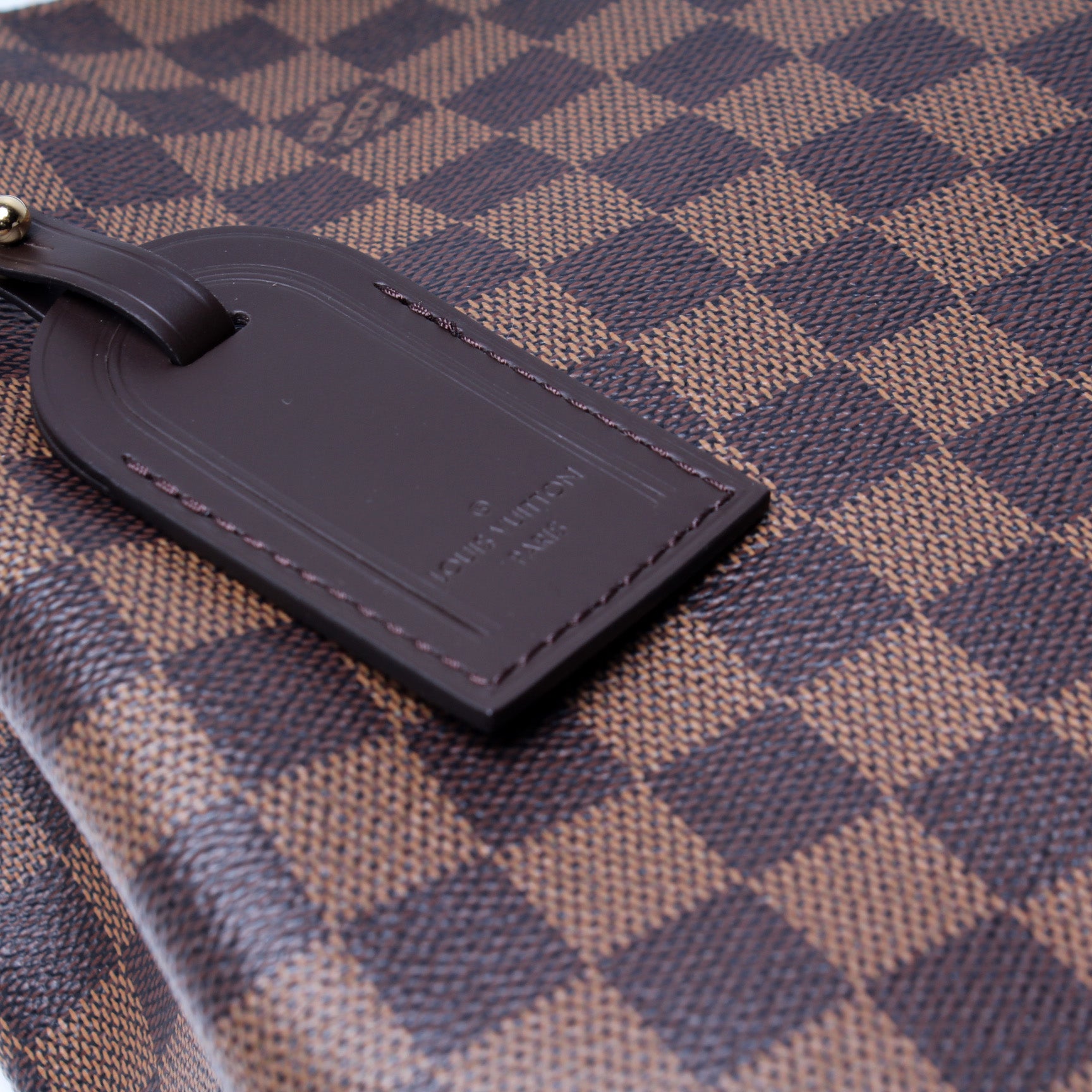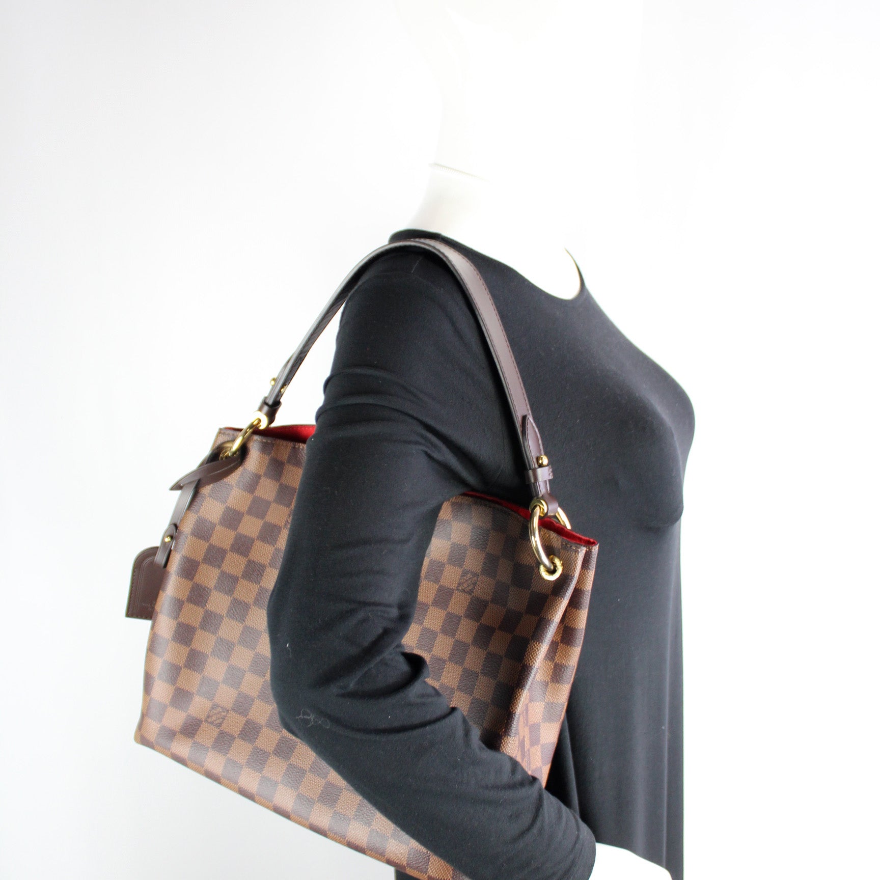 This pre-owned Louis Vuitton Graceful PM is guaranteed 100% authentic. The exterior is in the classic Louis Vuitton Damier Ebene coated canvas.