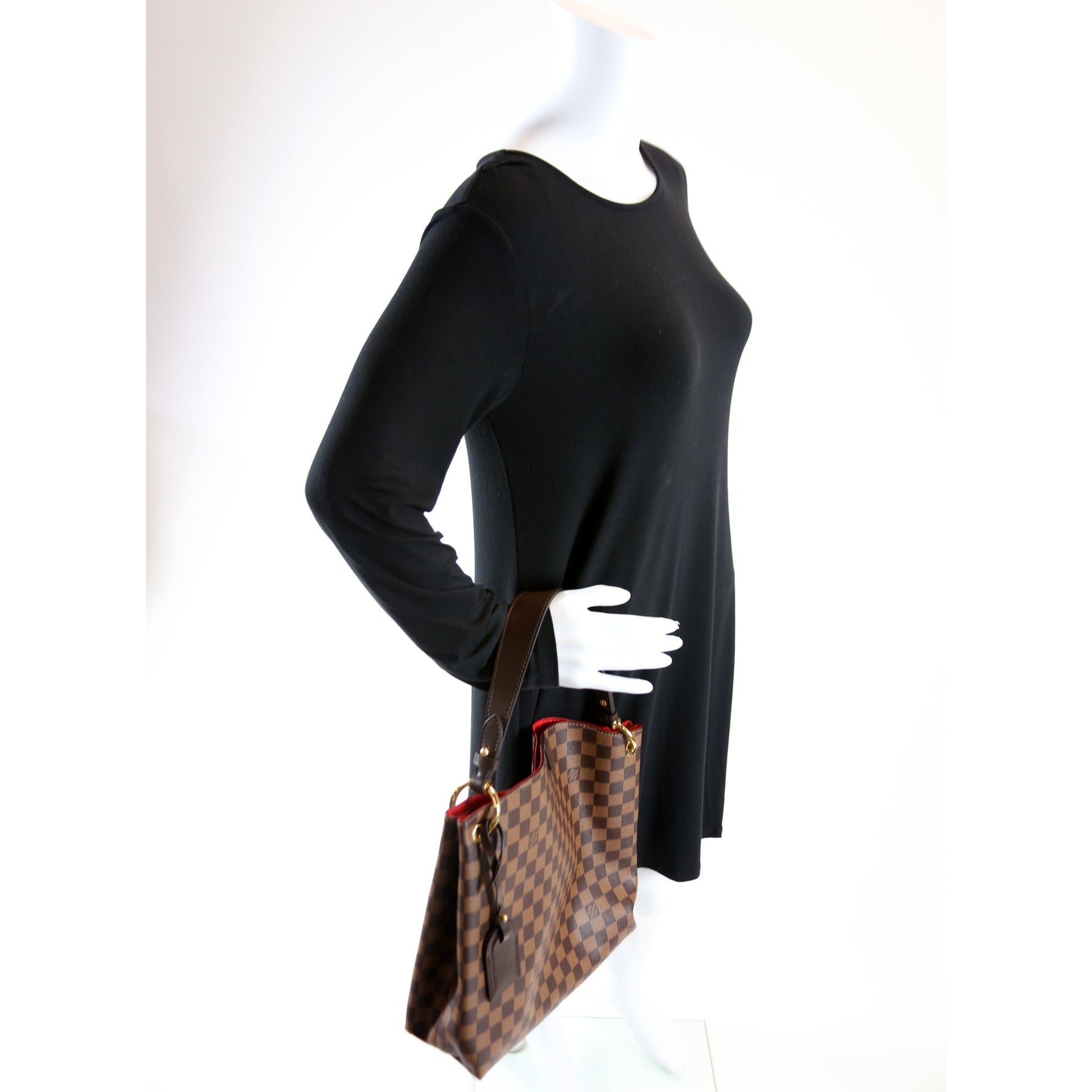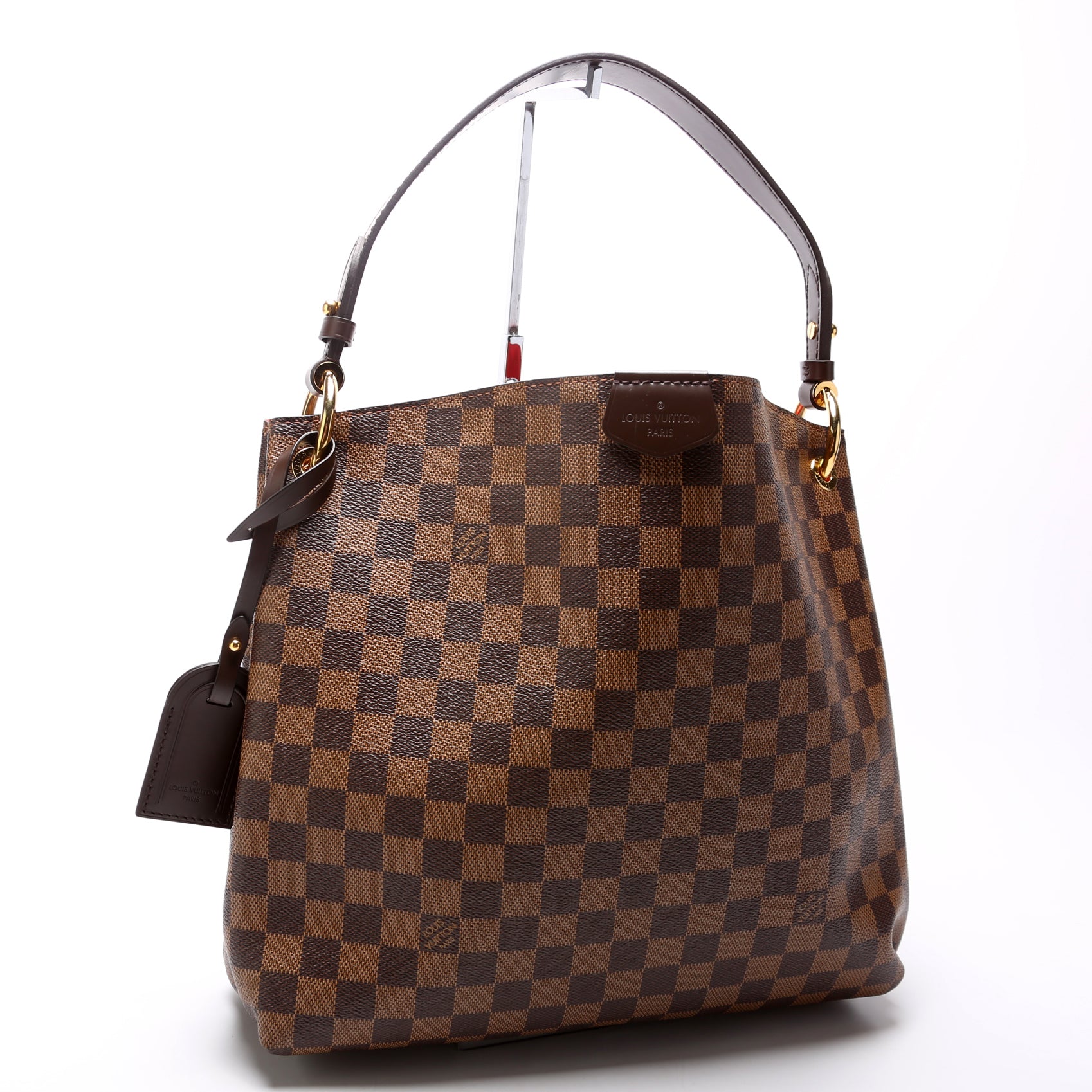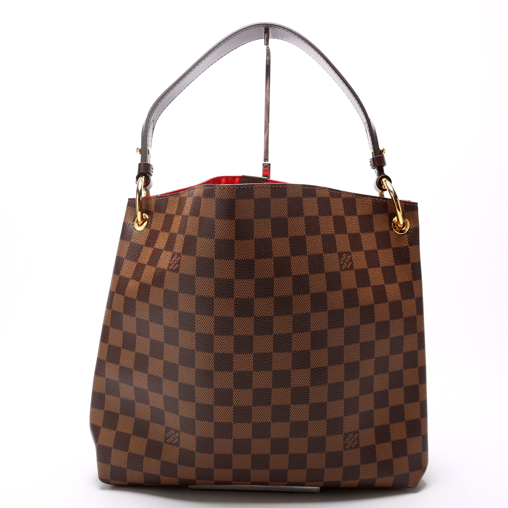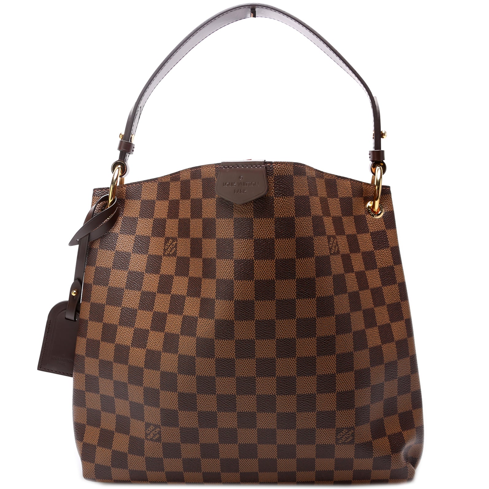 This pre-owned Louis Vuitton Graceful PM is guaranteed 100% authentic. The exterior is in the classic Louis Vuitton Damier Ebene coated canvas.