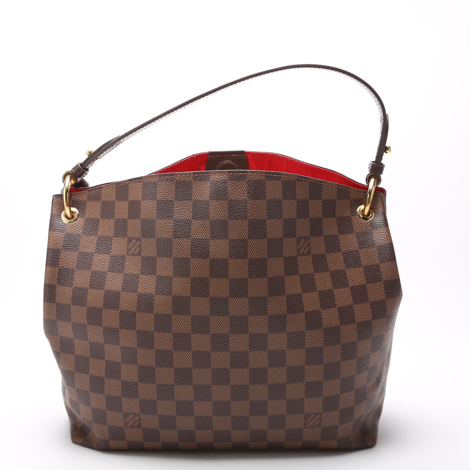 This pre-owned Louis Vuitton Graceful PM is guaranteed 100% authentic. The exterior is in the classic Louis Vuitton Damier Ebene coated canvas.