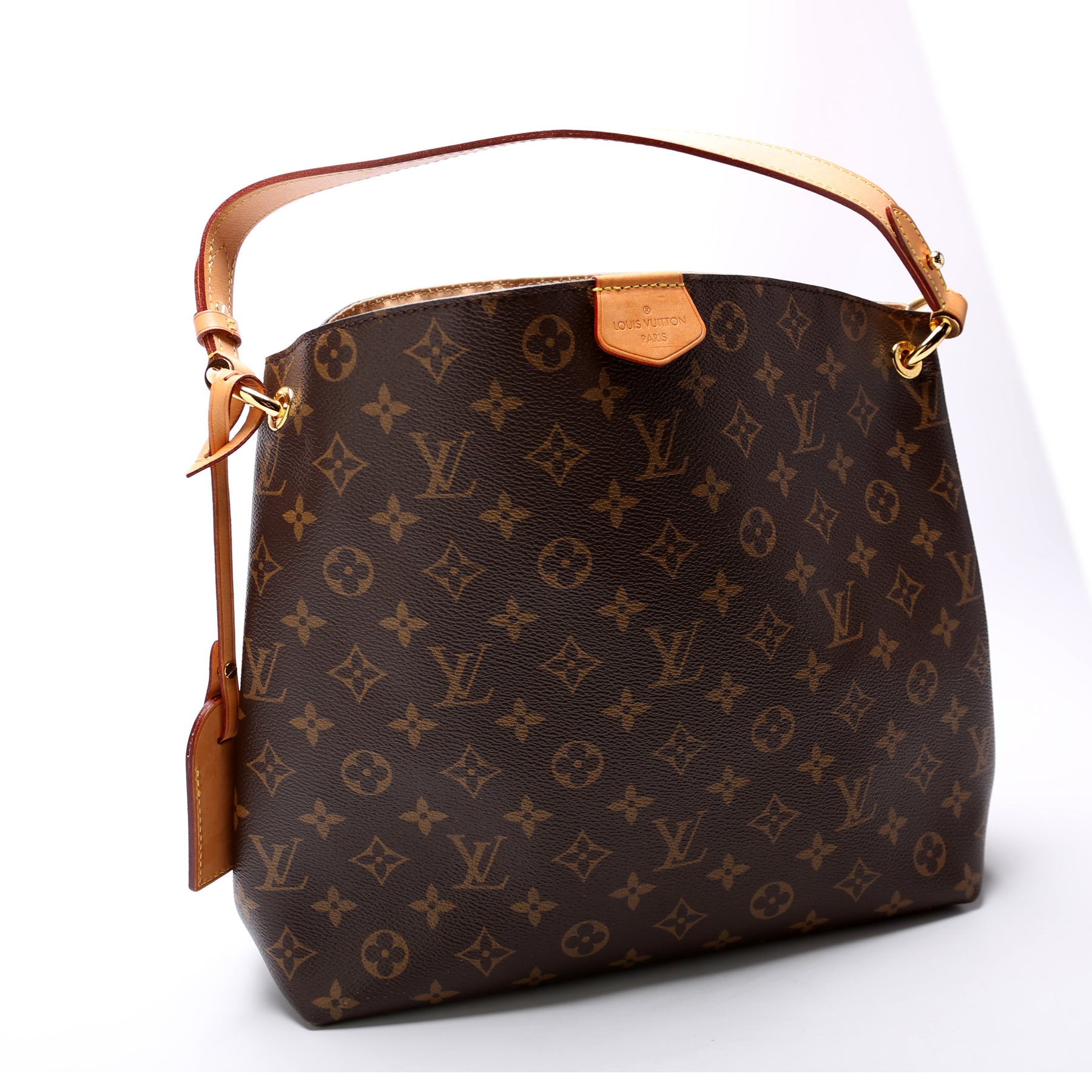 This pre-owned Louis Vuitton Graceful PM is guaranteed 100% authentic. The exterior is in the classic Louis Vuitton Monogram coated canvas.