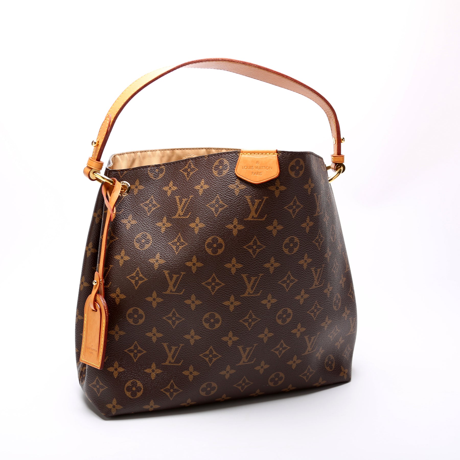 This pre-owned Louis Vuitton Graceful PM is guaranteed 100% authentic. The exterior is in the classic Louis Vuitton Monogram coated canvas.