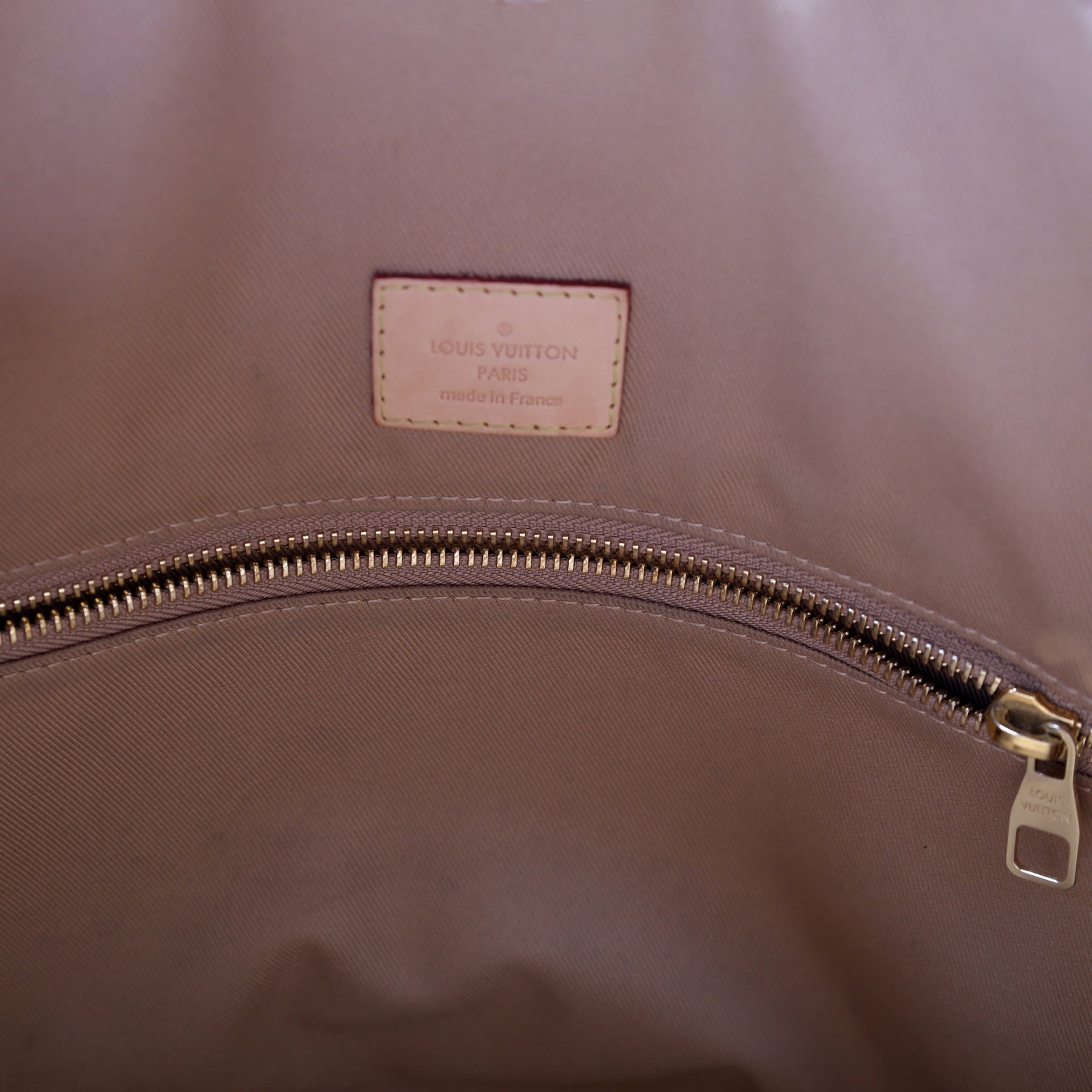 Interior: The interior has minor discoloration and it features one zip closure pocket.