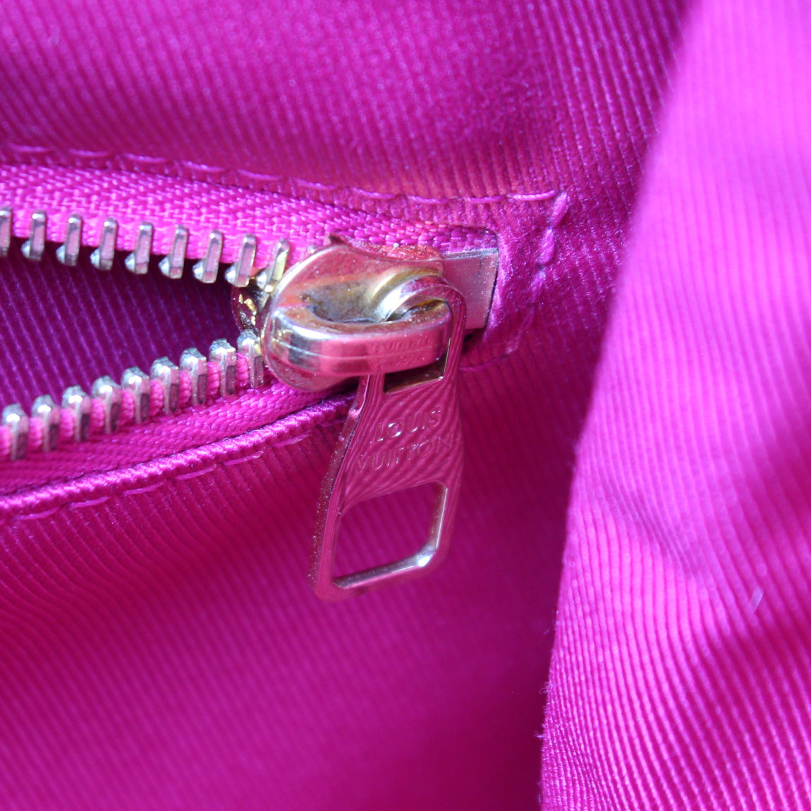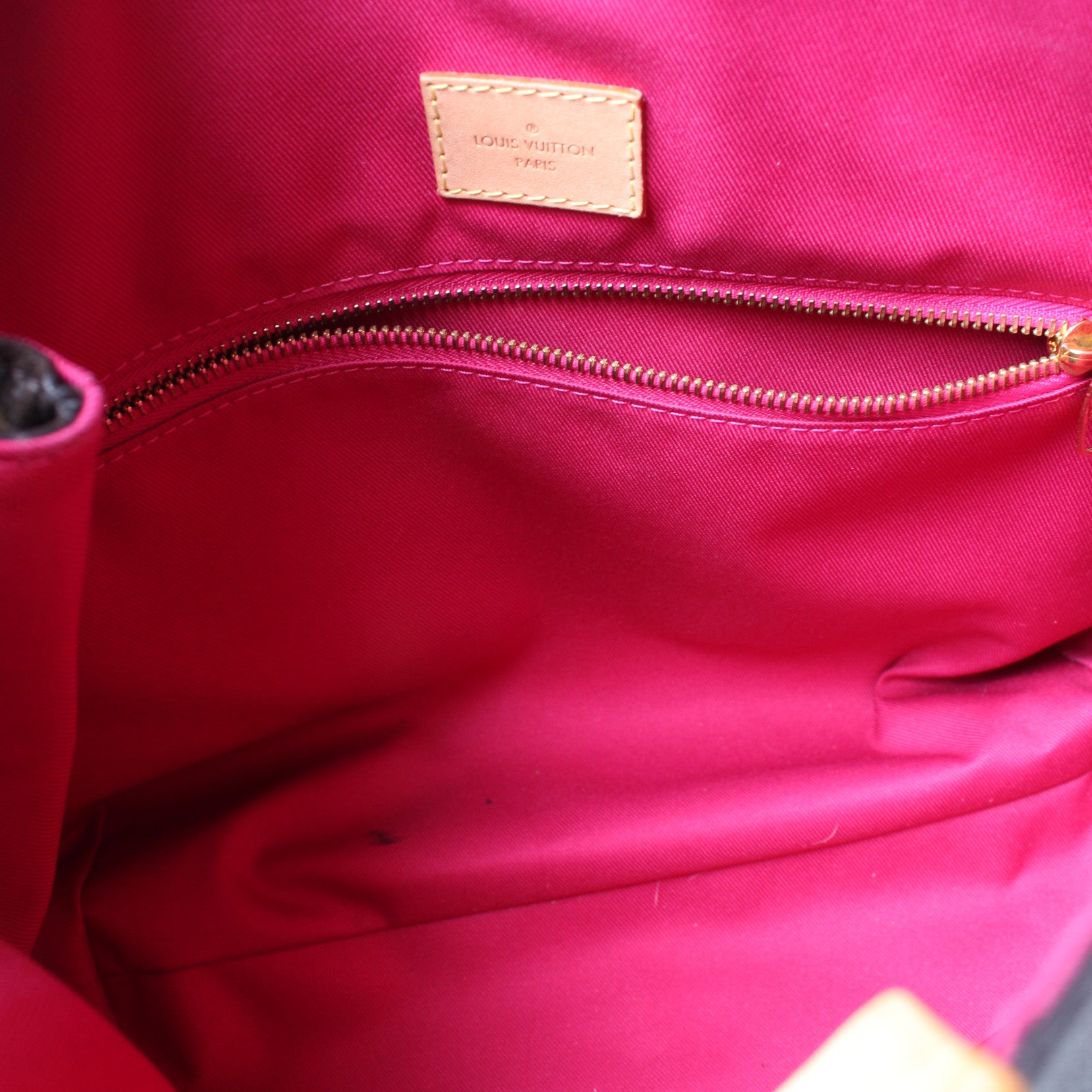Interior: The interior is free of rips or tears. The interior features one zip closure pocket. There are minor pen marks to the interior fabric.