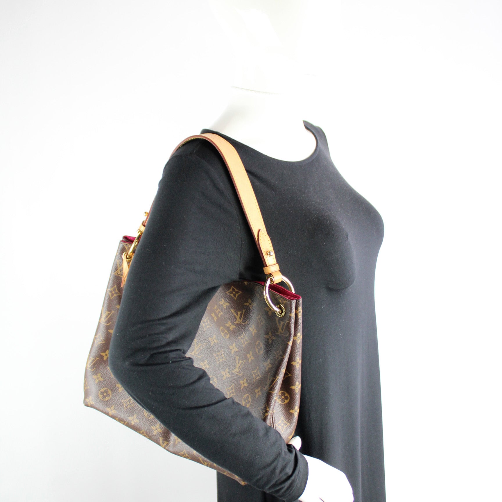 This pre-owned Louis Vuitton Graceful PM is guaranteed 100% authentic. The exterior is in the classic Louis Vuitton Monogram coated canvas.