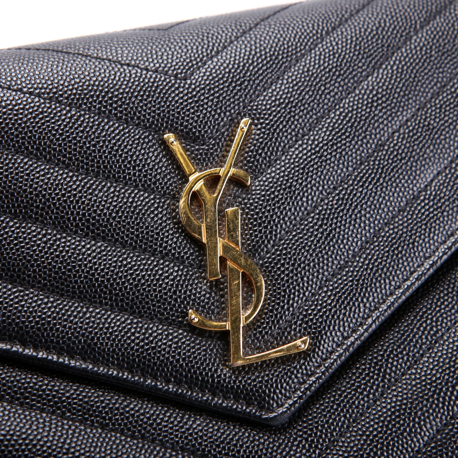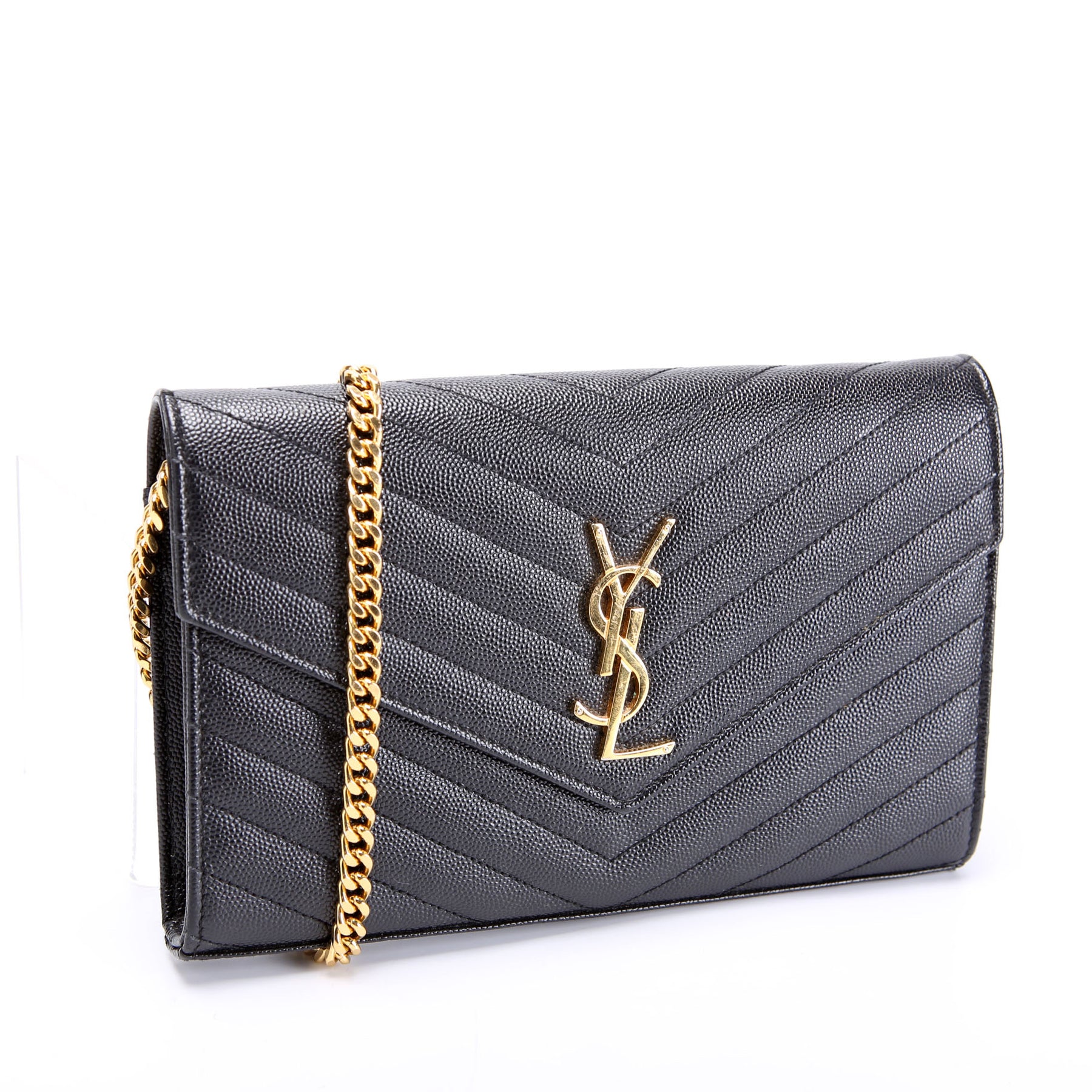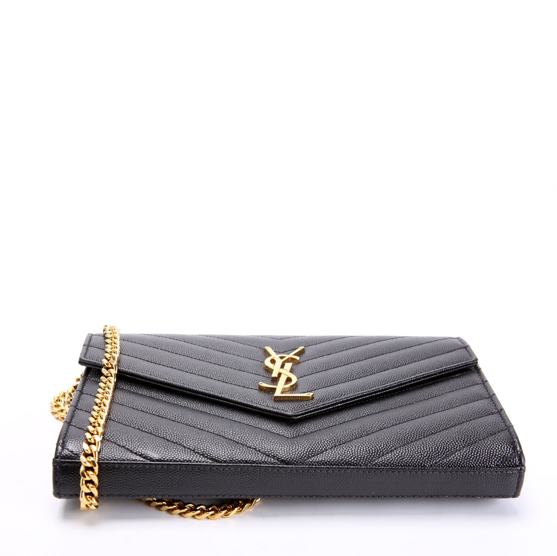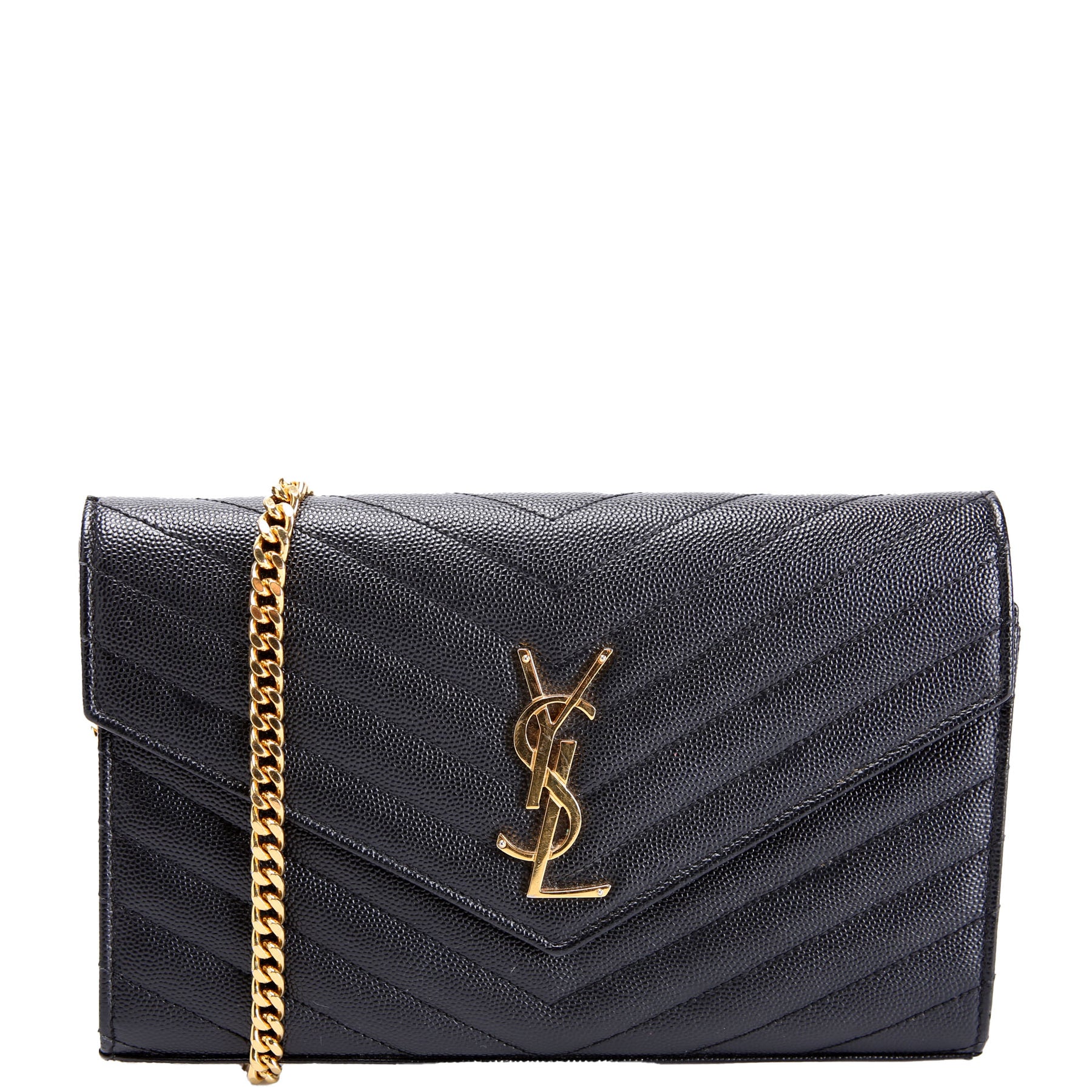 This pre-owned Saint Laurent Chain Wallet is guaranteed 100% authentic. The exterior is in the classic Saint Laurent Grain De Poudre leather.