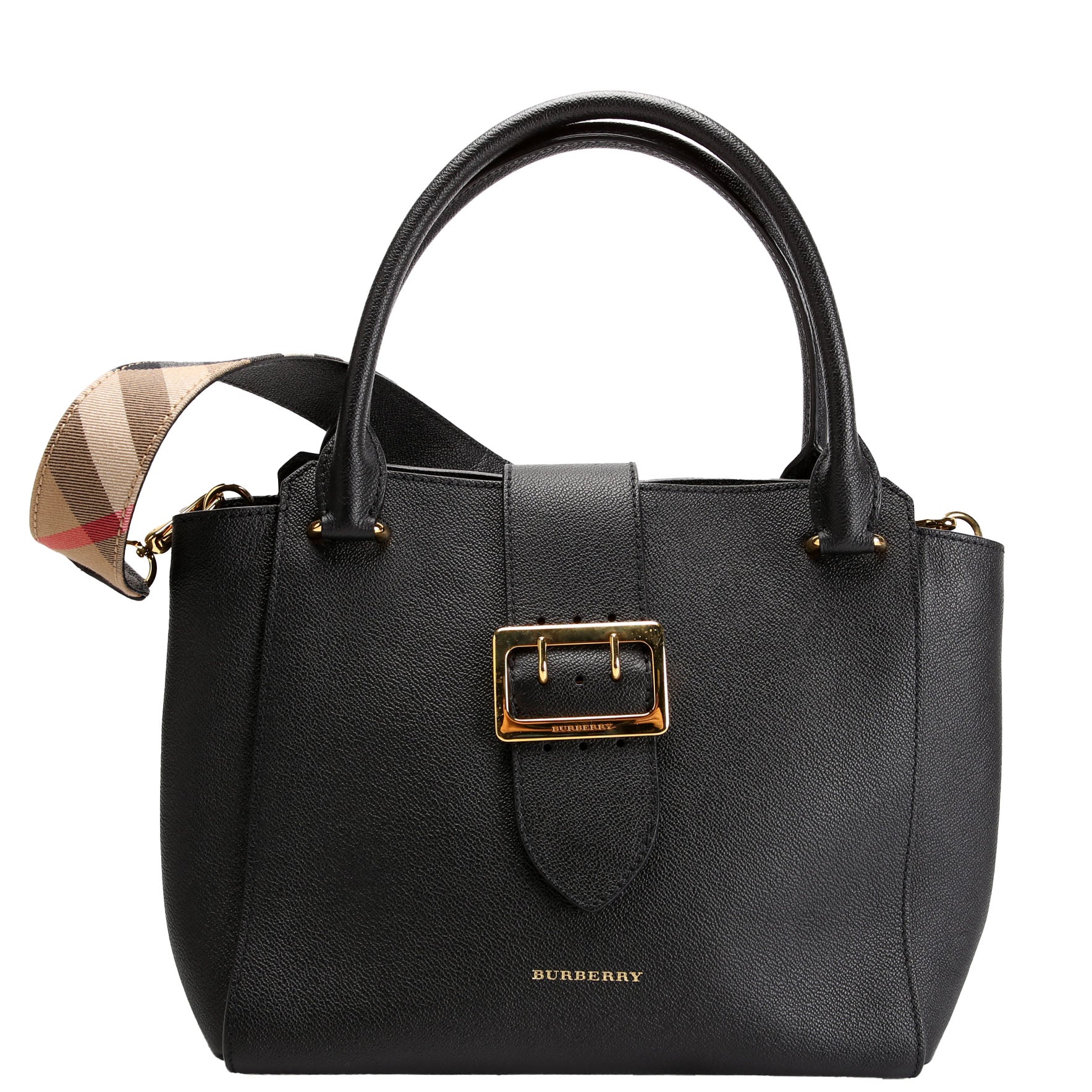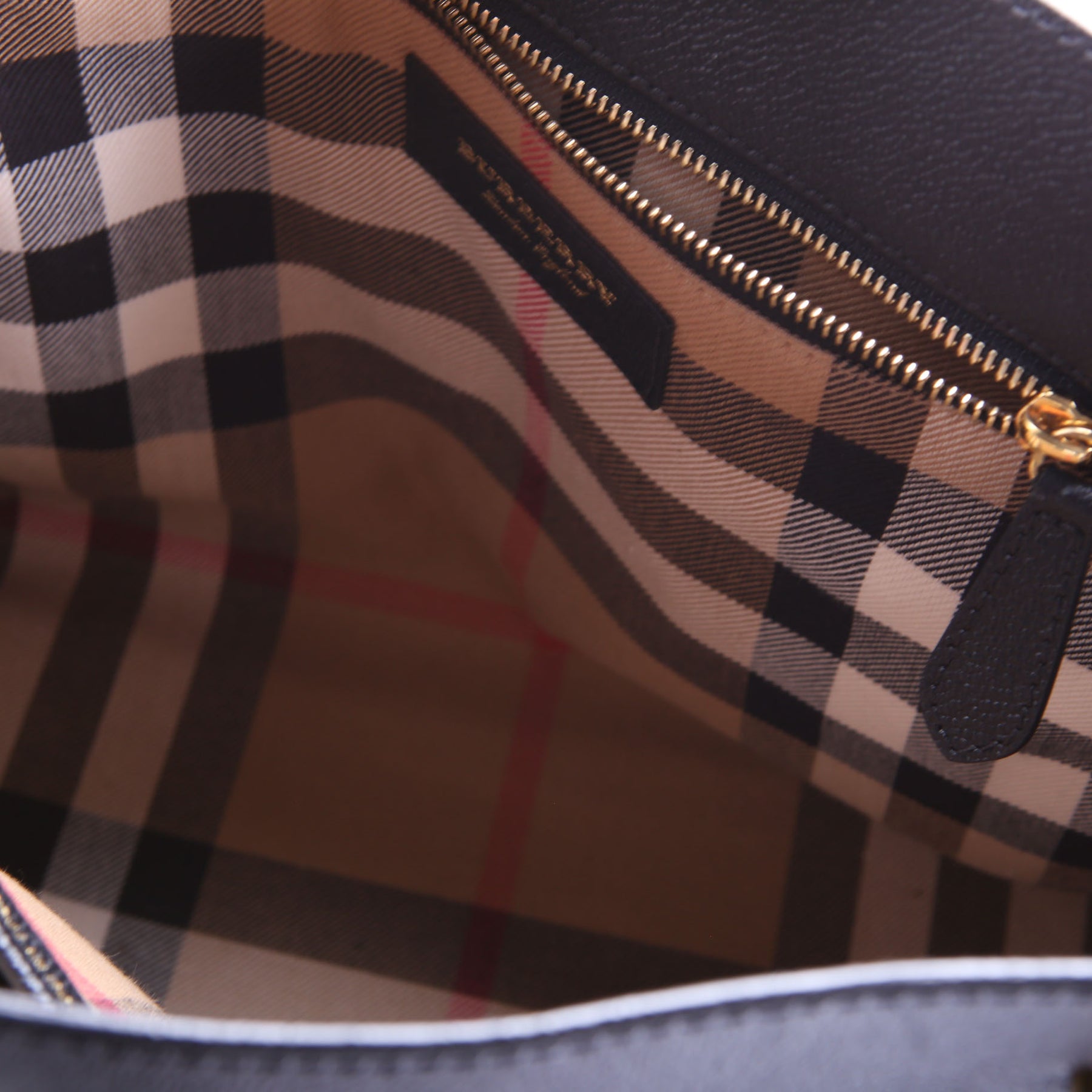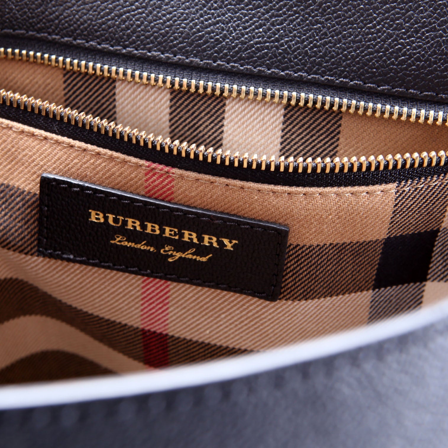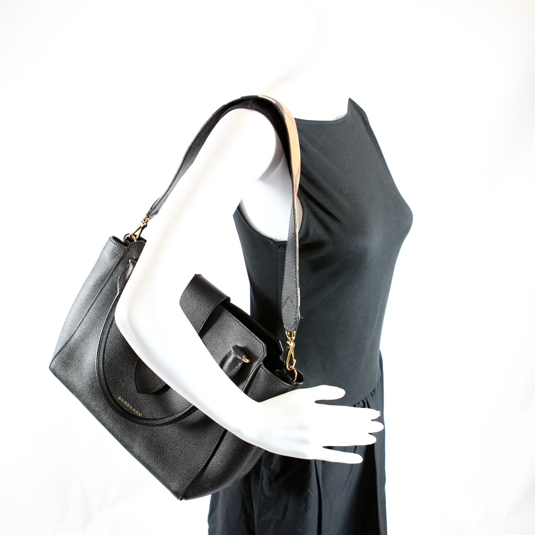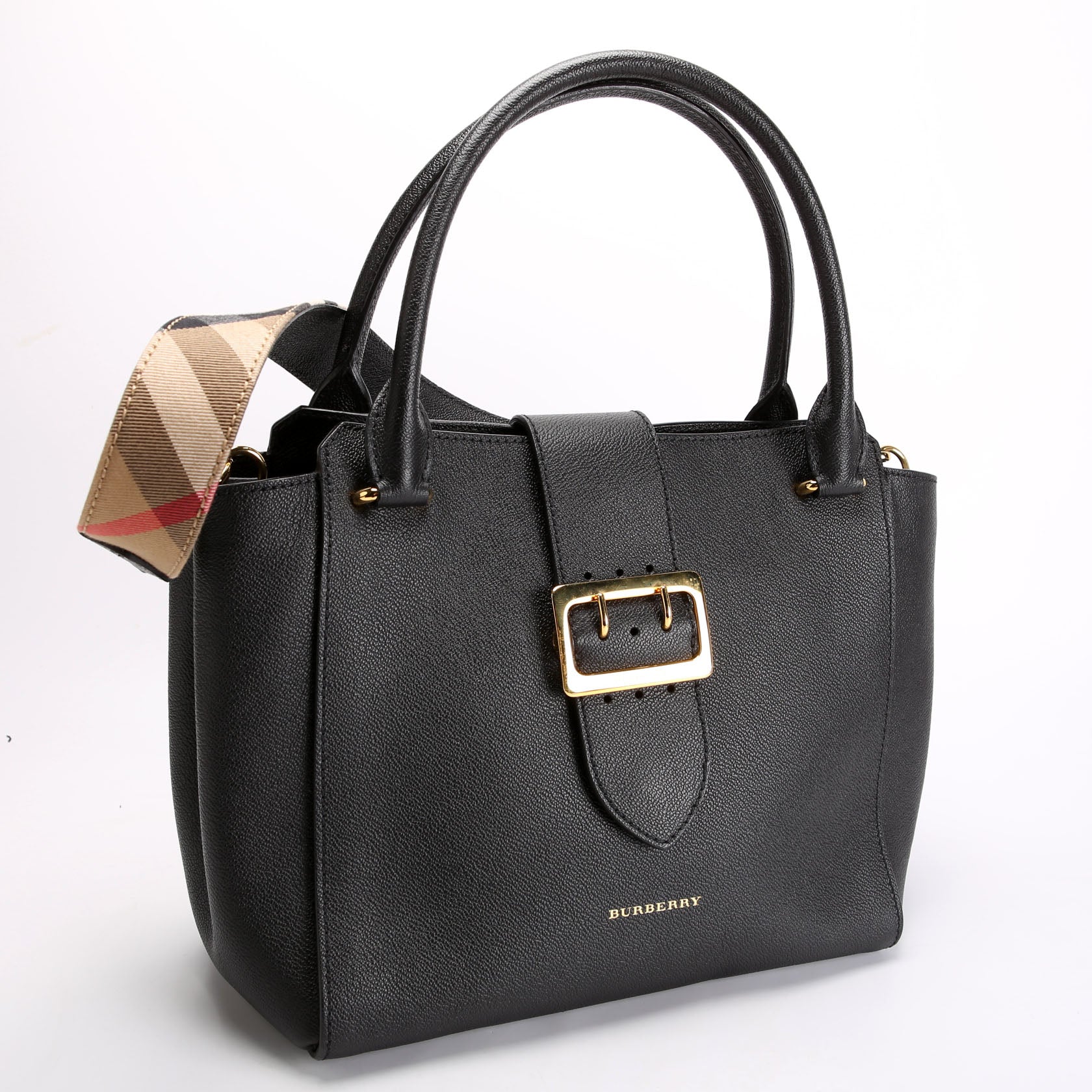 This pre-owned Burberry Grained Calfskin Buckle Tote Medium is guaranteed 100% authentic.