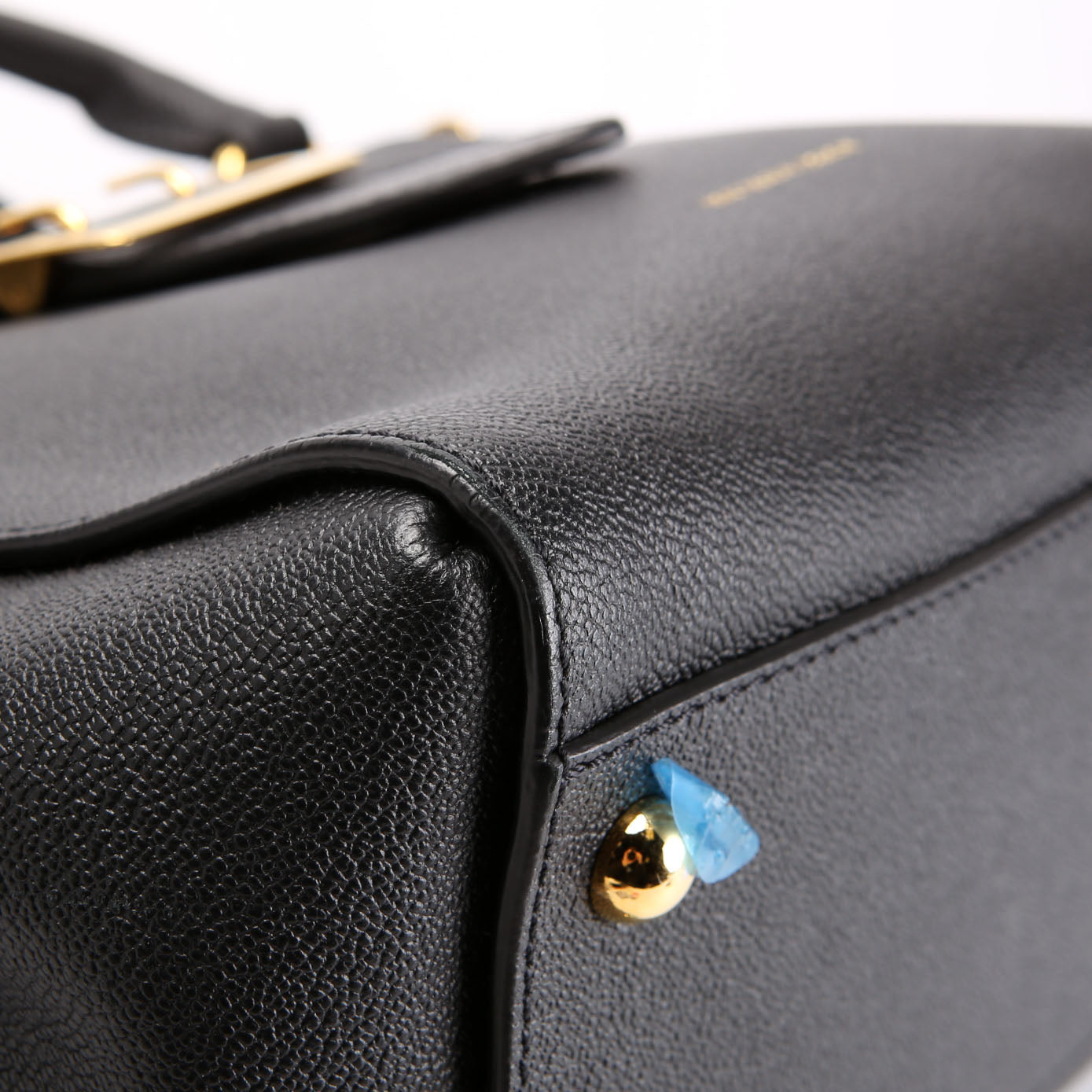 Grained Calfskin Buckle Tote Medium Black/Multicolor
