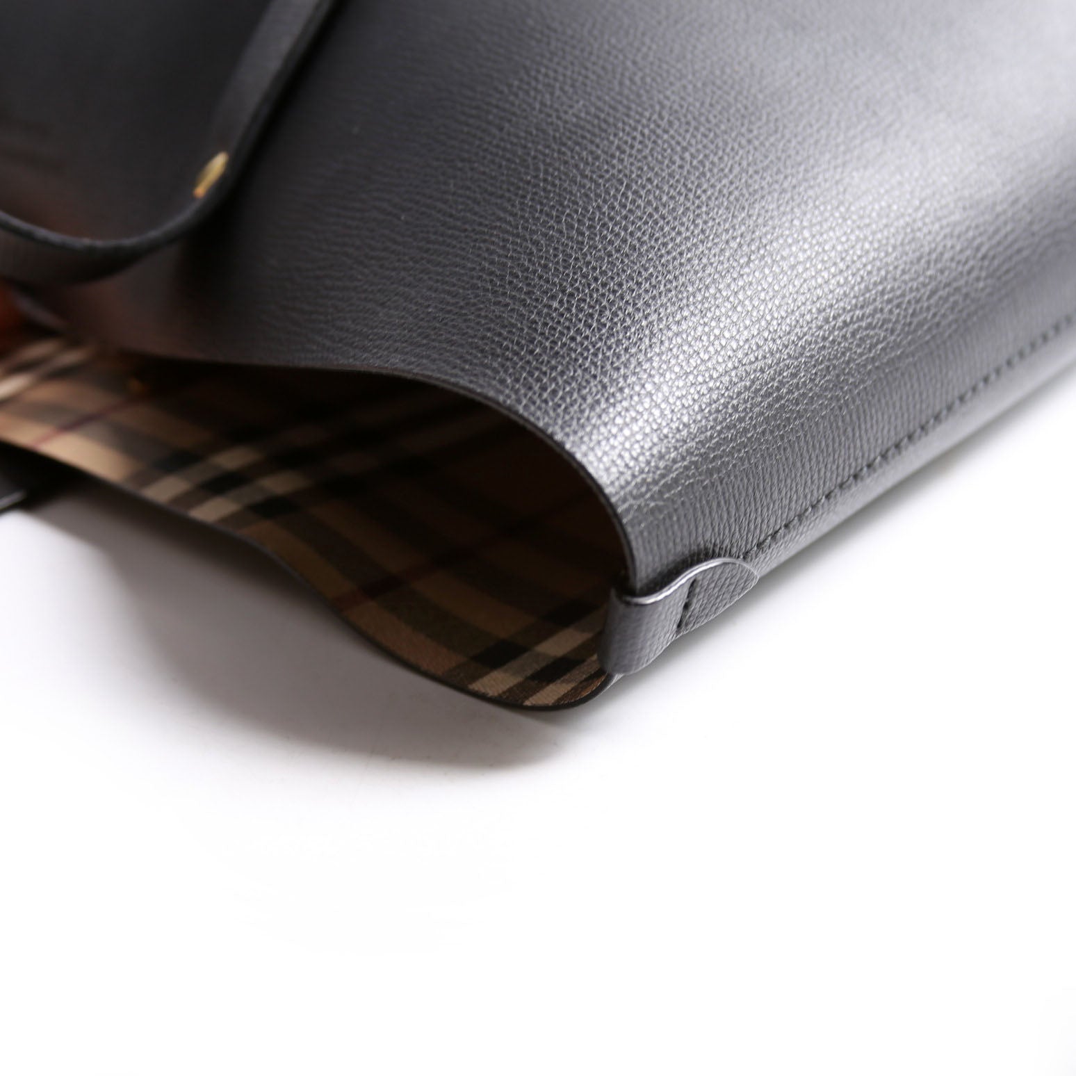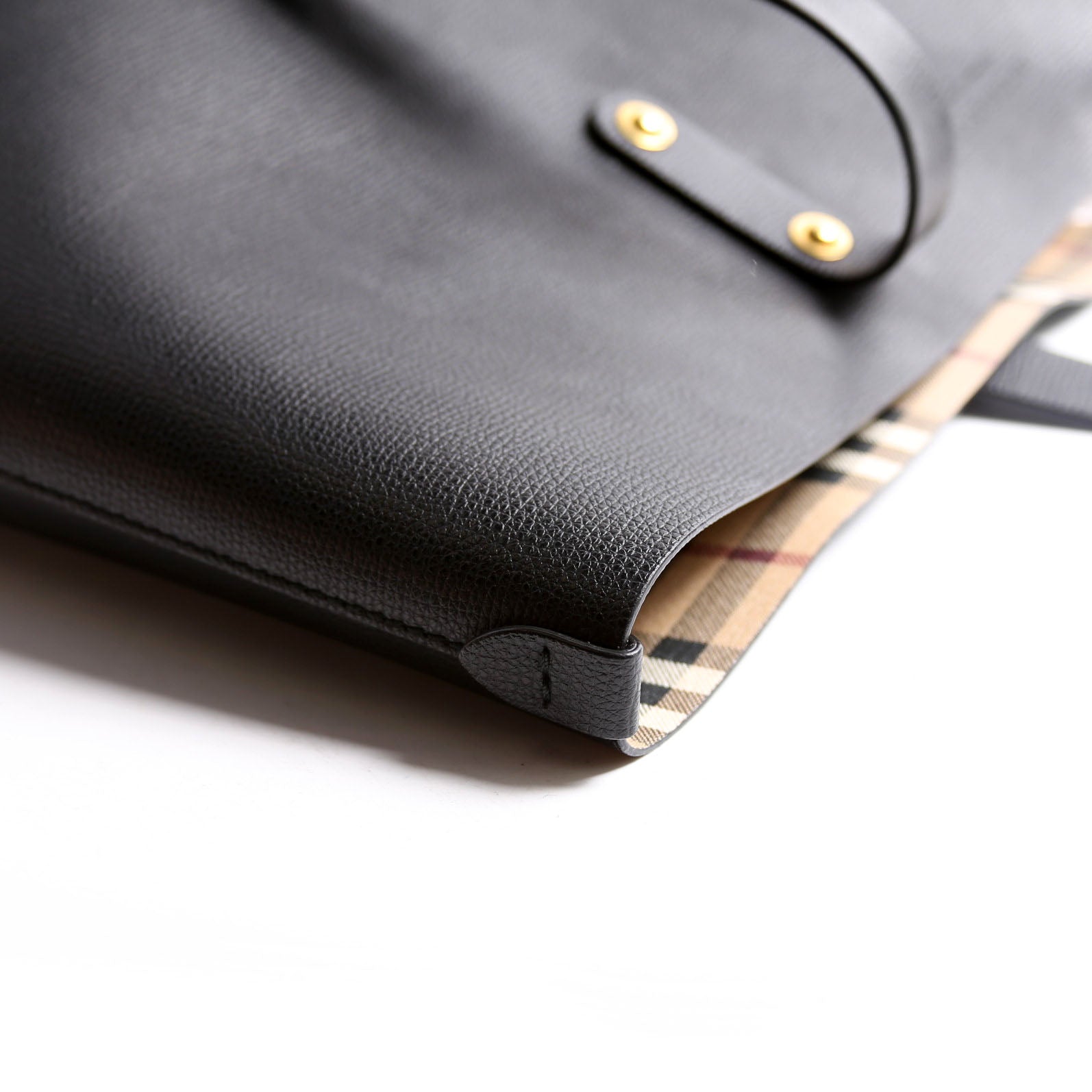 This pre-owned Burberry Grainy Leather Haymarket Check Vertical Tote is guaranteed 100% authentic.