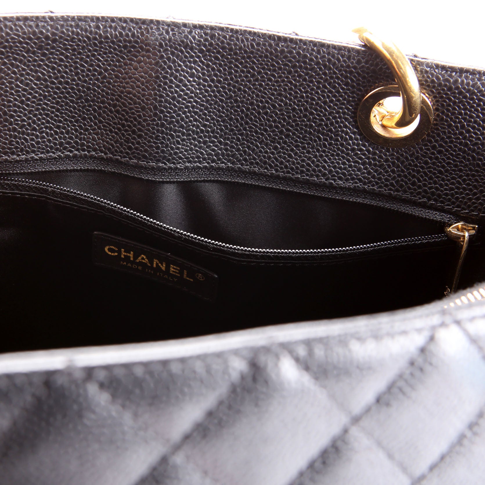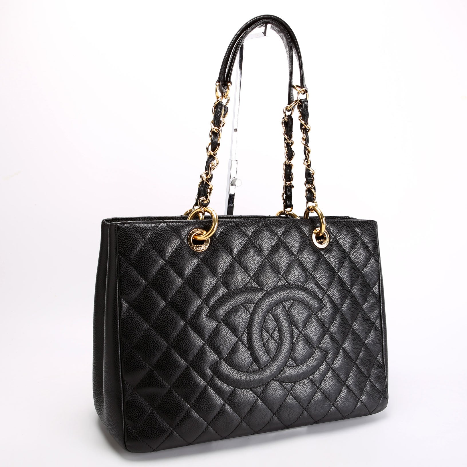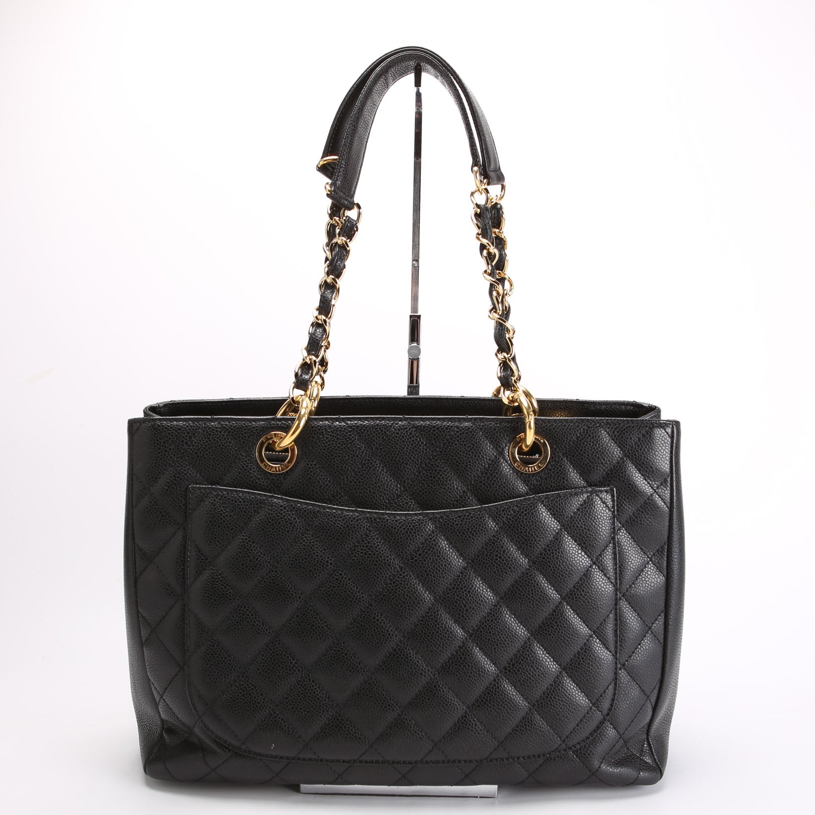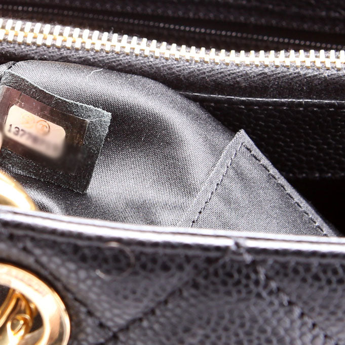 This pre-owned Chanel Grand Shopping Tote is guaranteed 100% authentic. The exterior is in the classic Chanel Caviar leather.