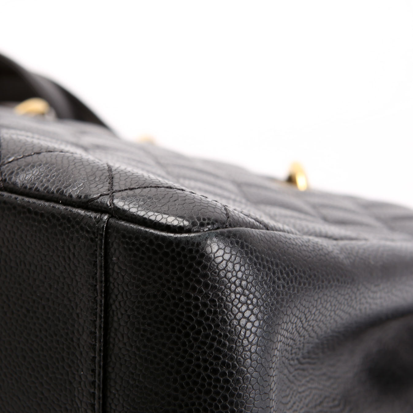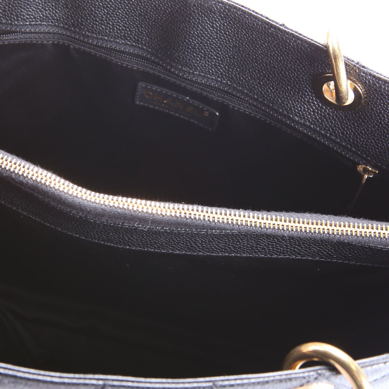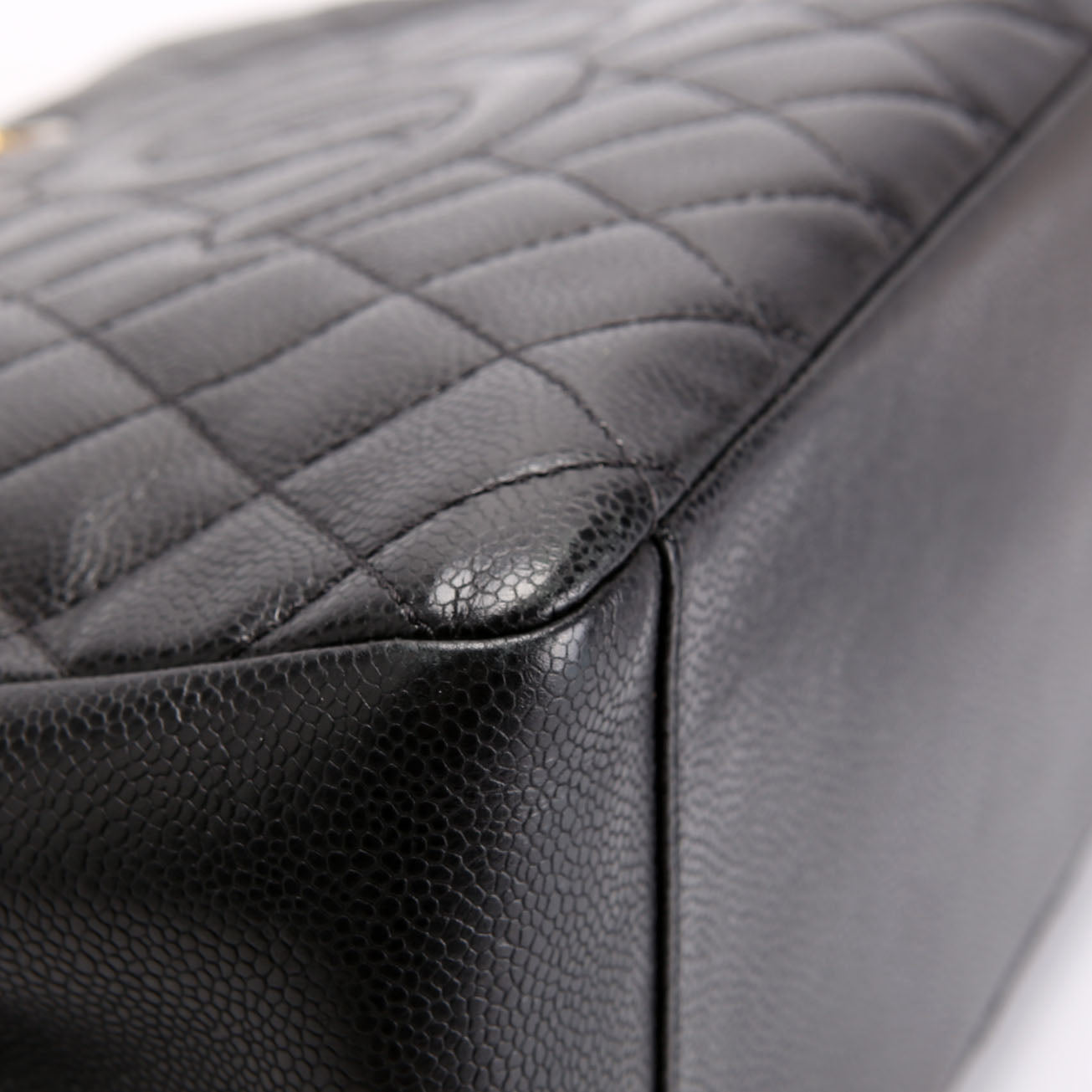 This pre-owned Chanel Grand Shopping Tote is guaranteed 100% authentic. The exterior is in the classic Chanel Caviar leather.