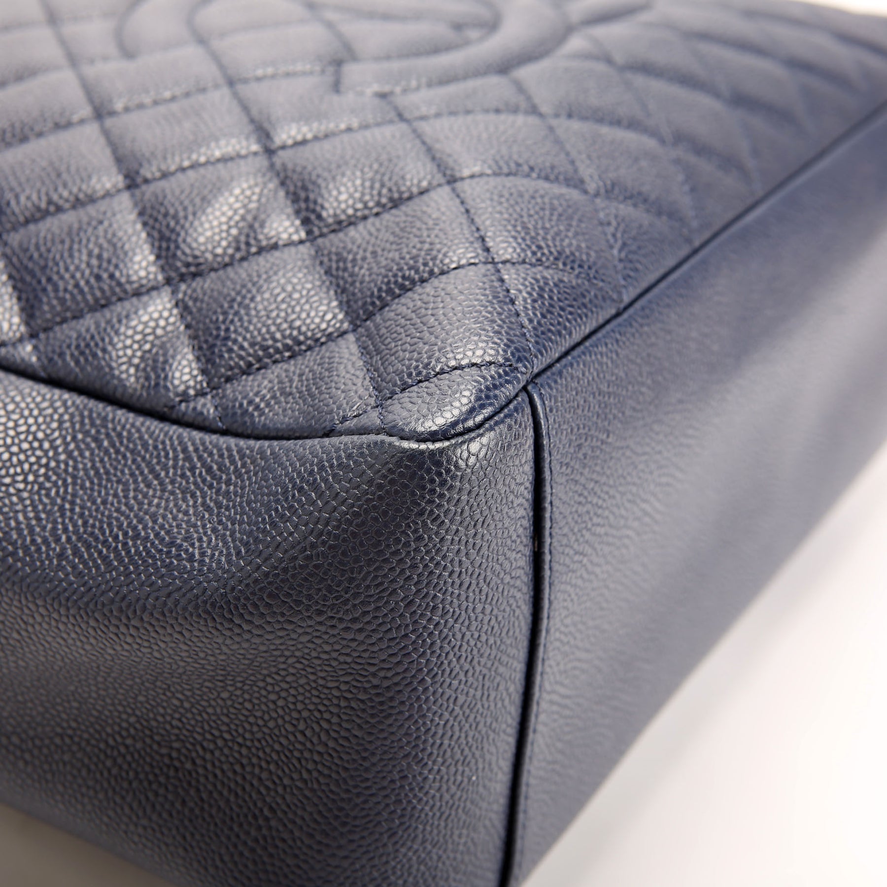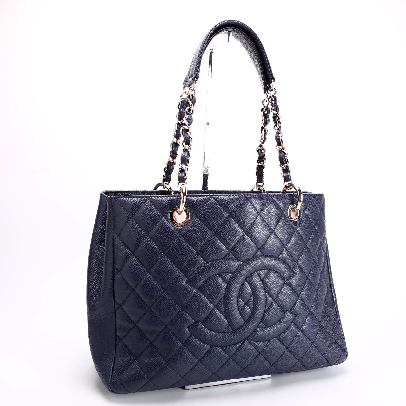 Grand Shopping Tote Caviar 18M Navy/Silver