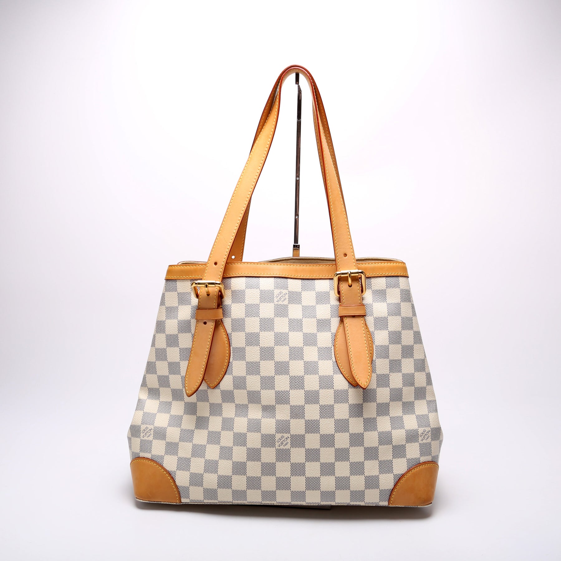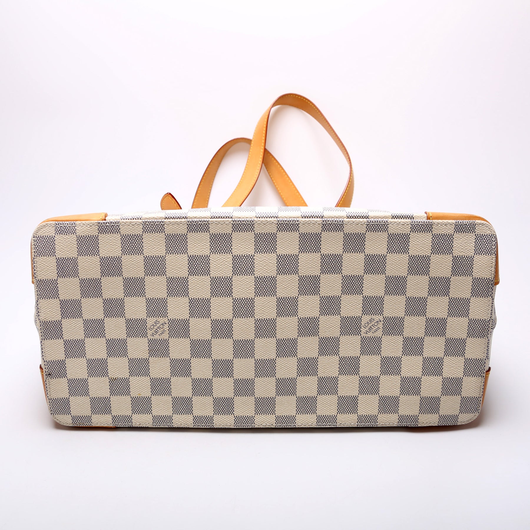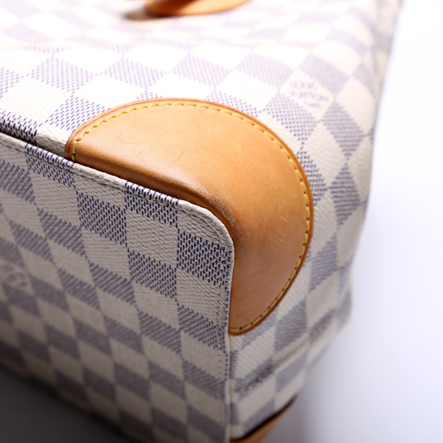 Handle: The leather handles have minor discoloration spots.