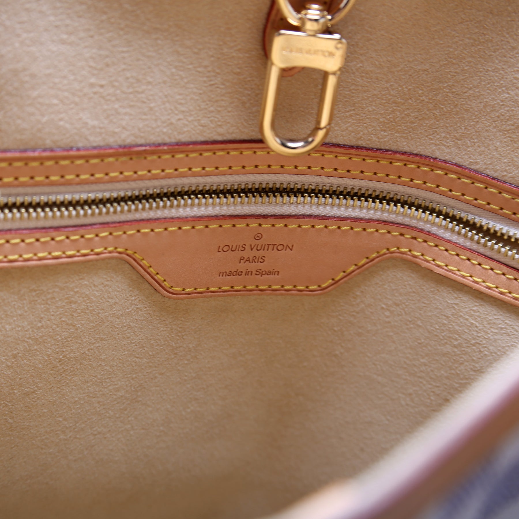 Hardware: The clasp closure operates properly. The logo plate shows minor scratches.