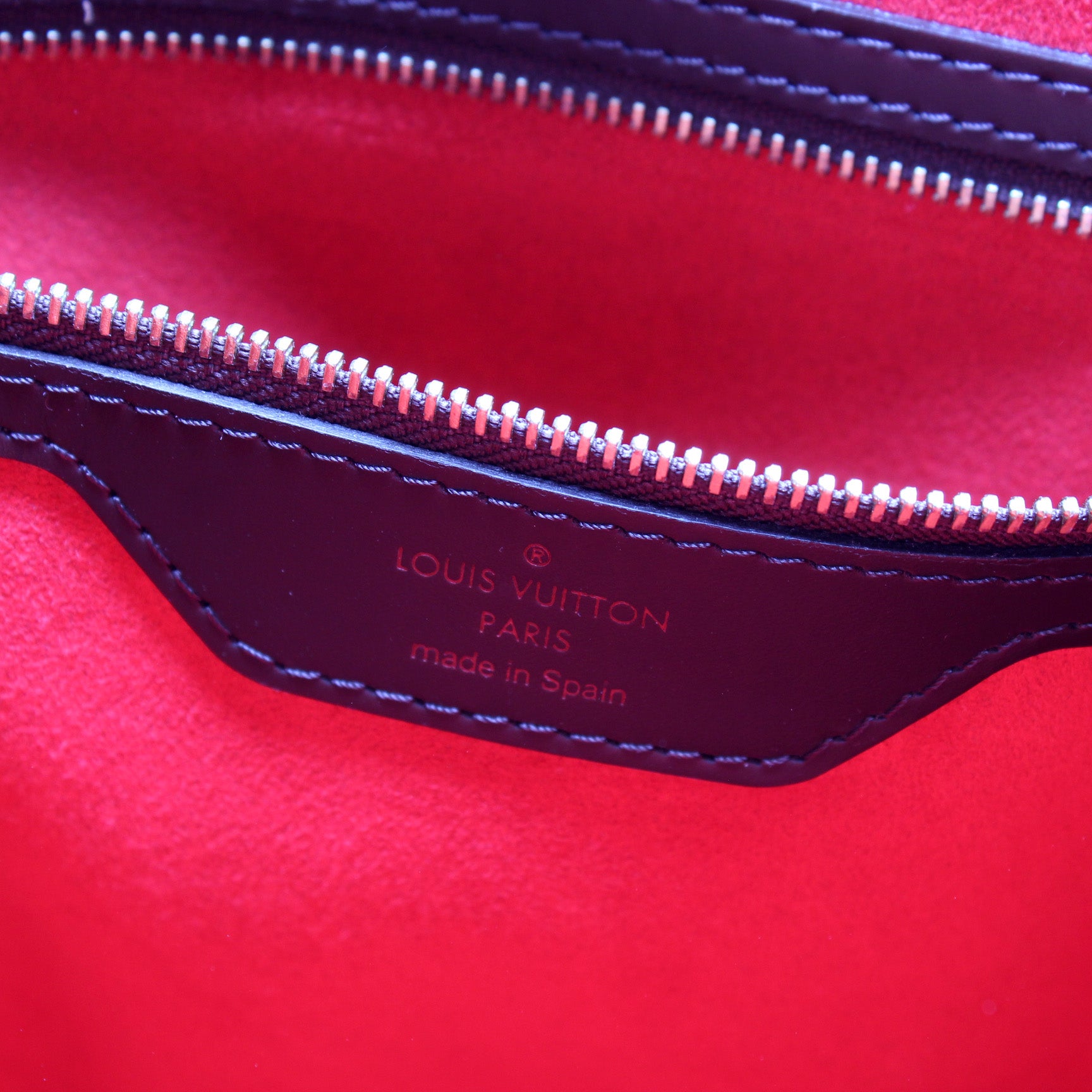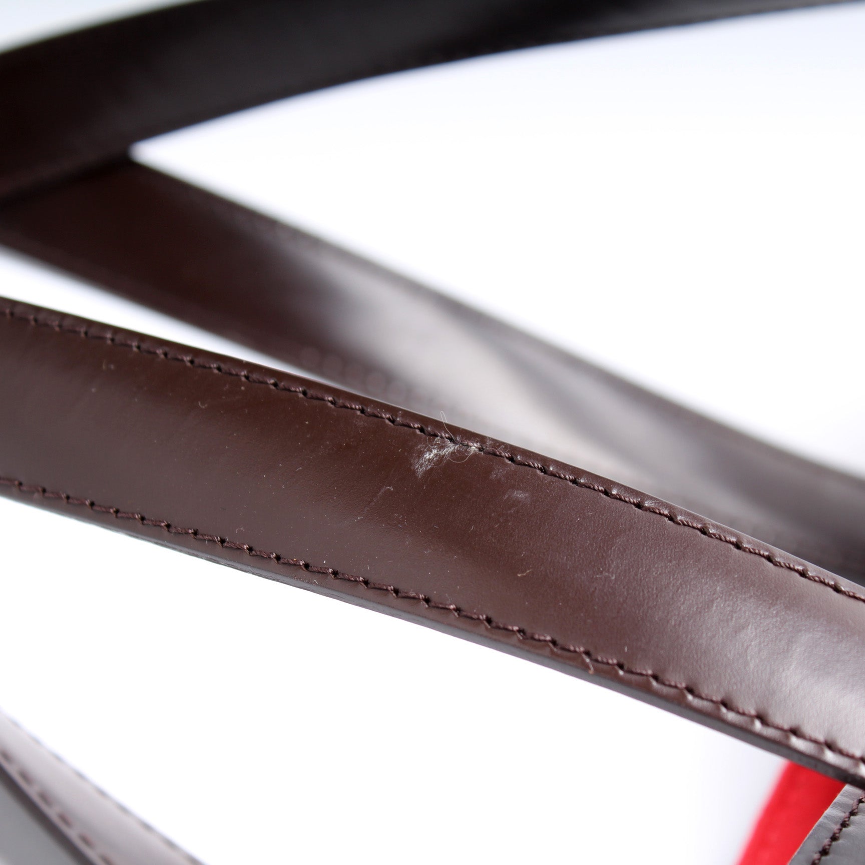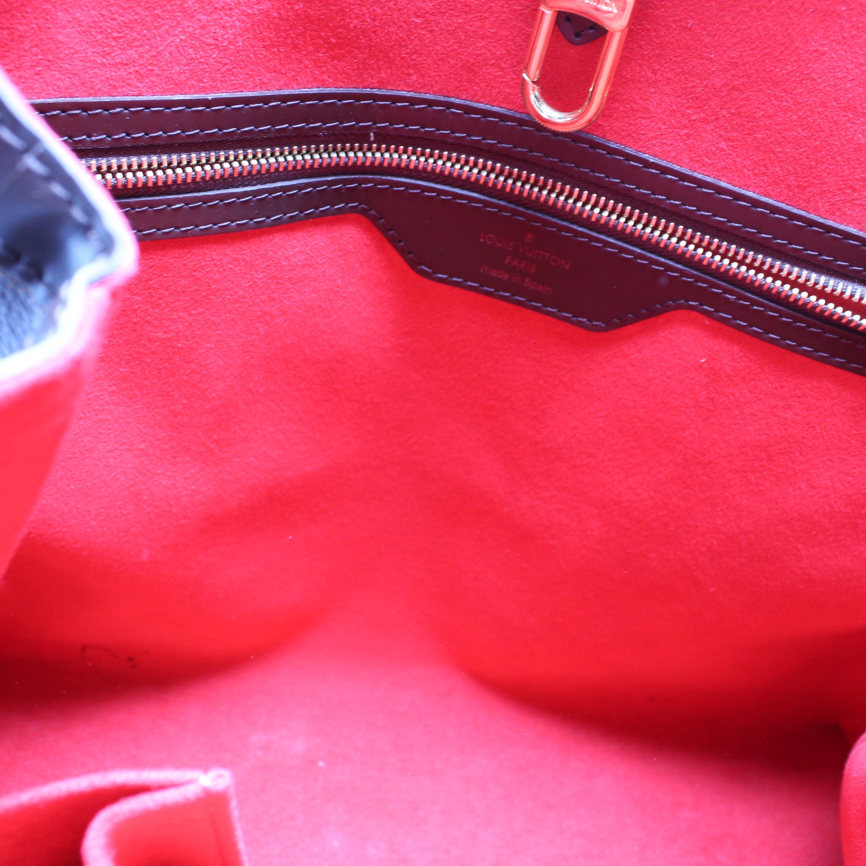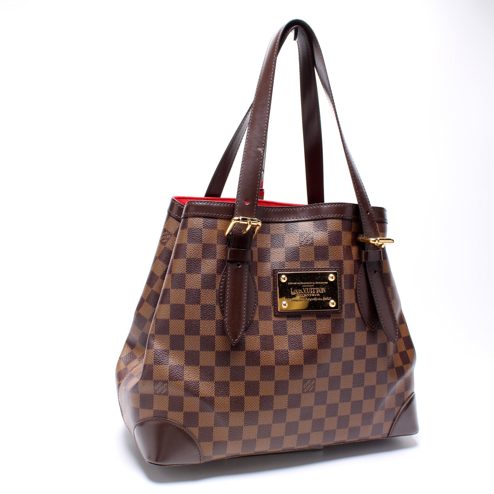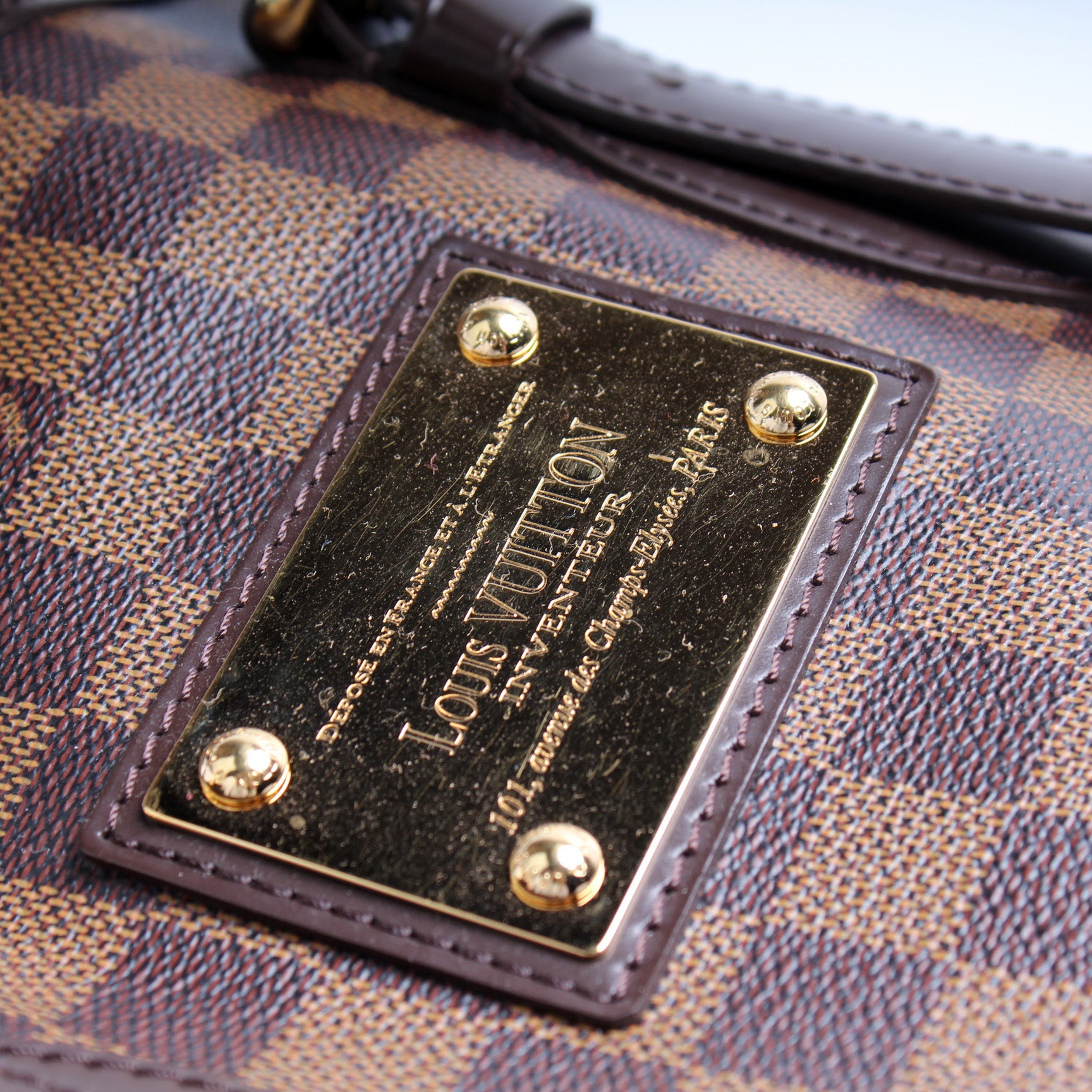 This pre-owned Louis Vuitton Hampstead MM is guaranteed 100% authentic. The exterior is in the classic Louis Vuitton Damier Ebene coated canvas.
