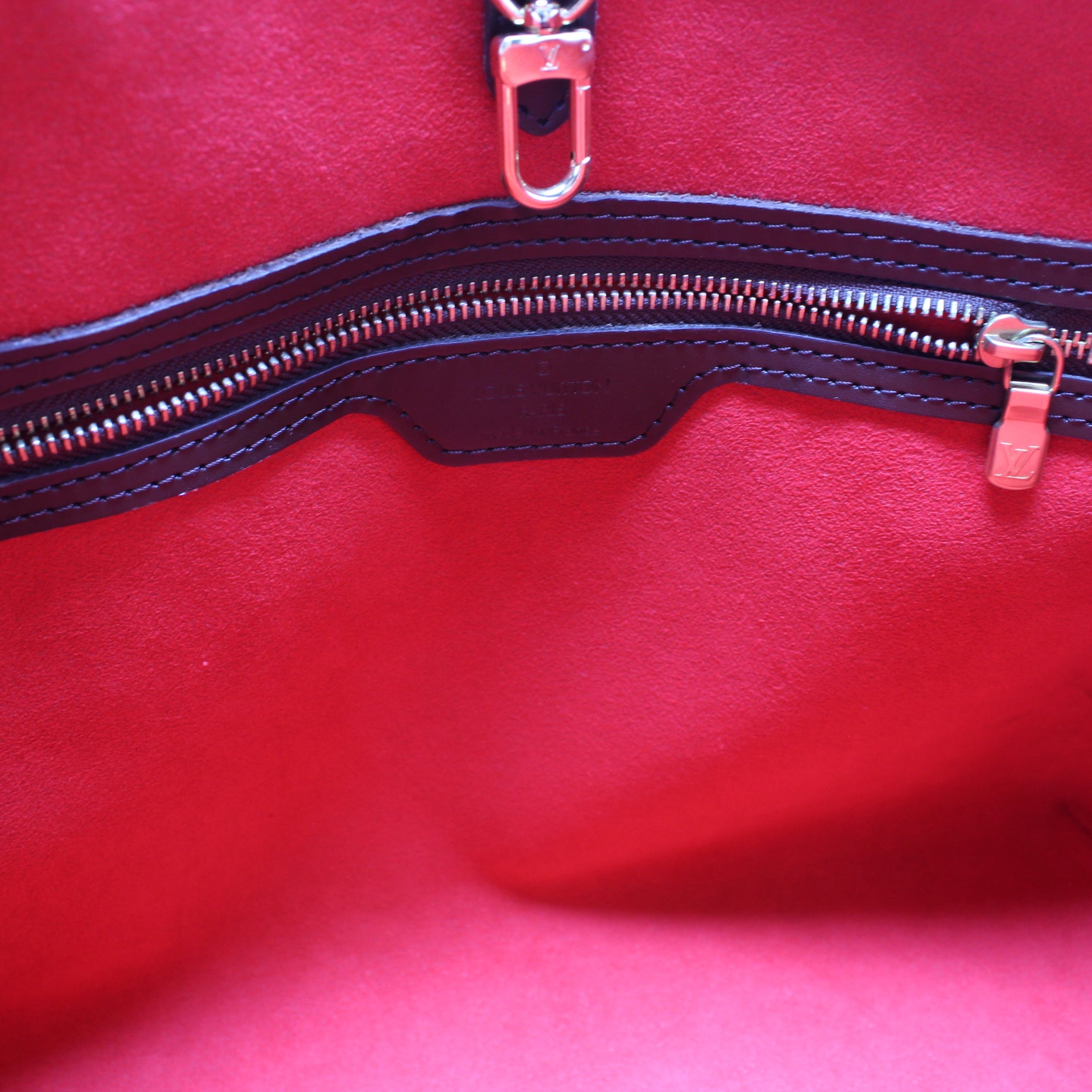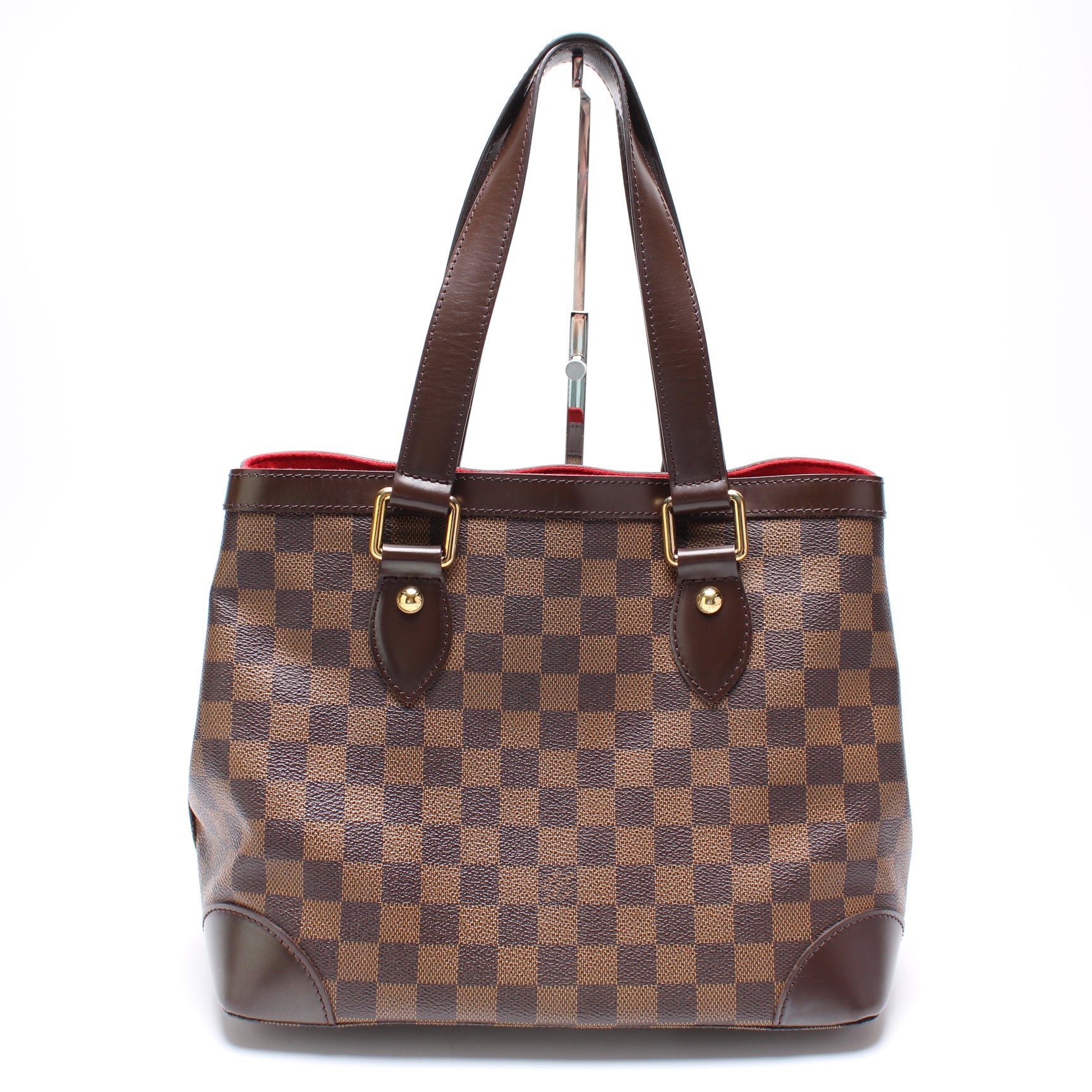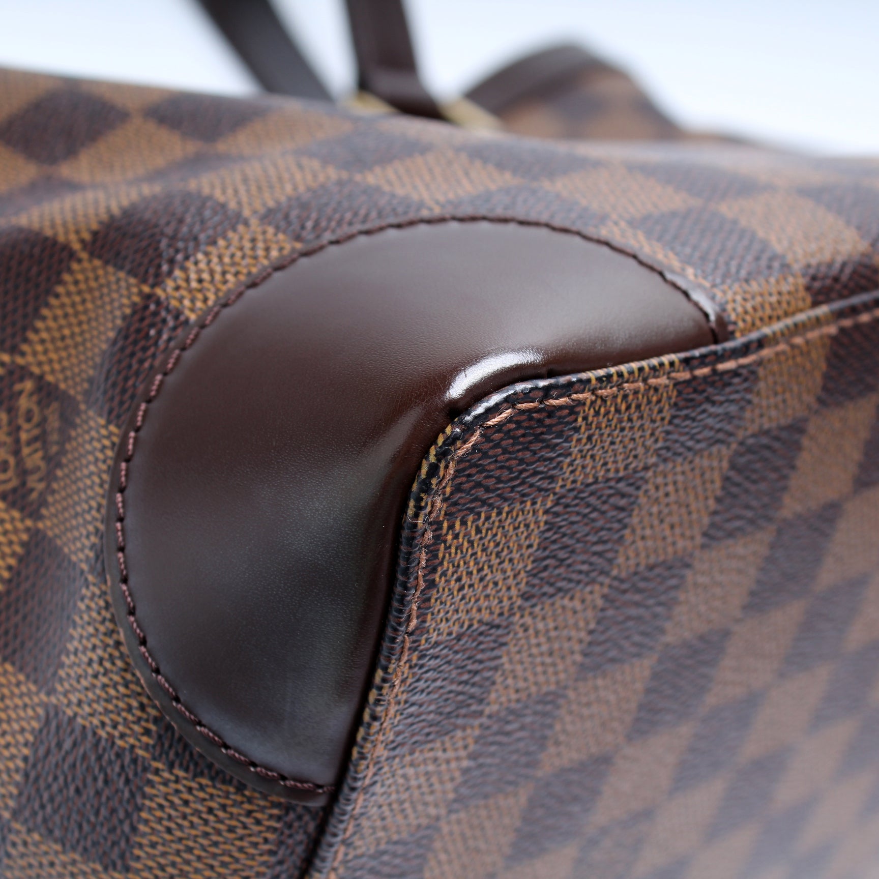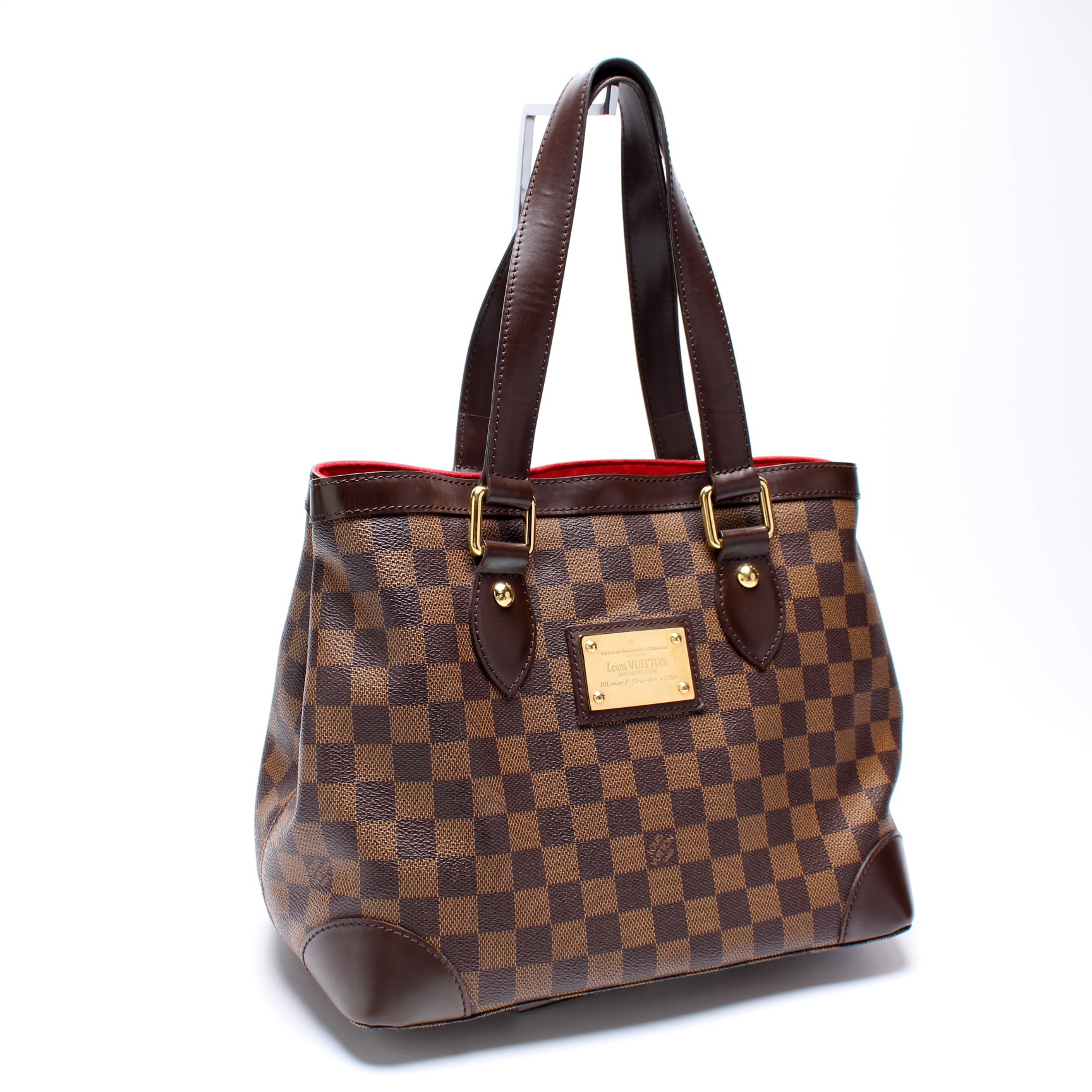 This pre-owned Louis Vuitton Hampstead PM is guaranteed 100% authentic. The exterior is in the classic Louis Vuitton Damier Ebene coated canvas.