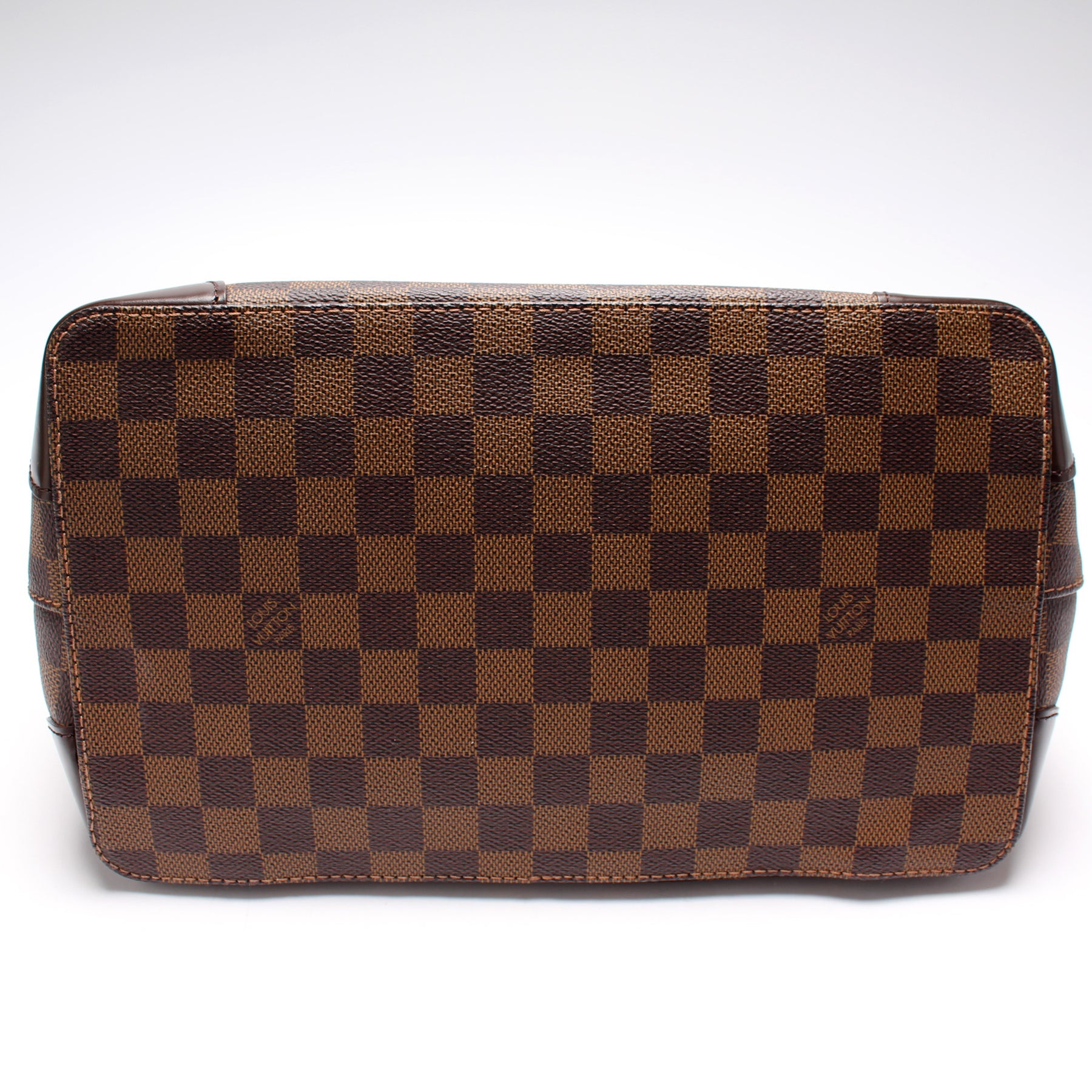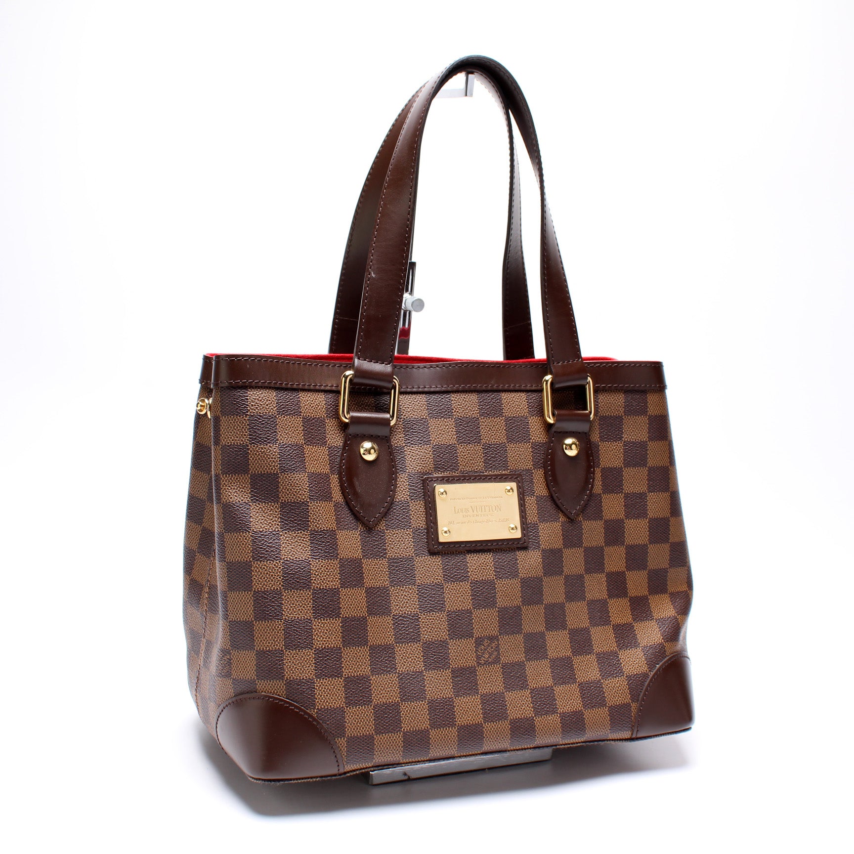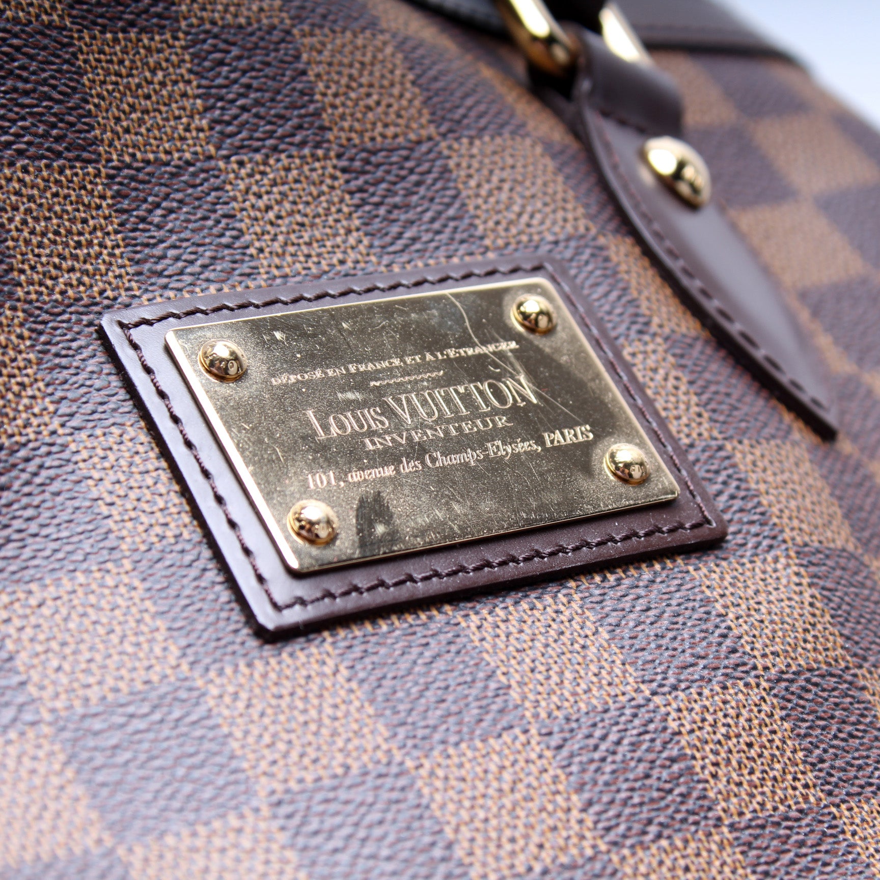 This pre-owned Louis Vuitton Hampstead PM is guaranteed 100% authentic. The exterior is in the classic Louis Vuitton Damier Ebene coated canvas.