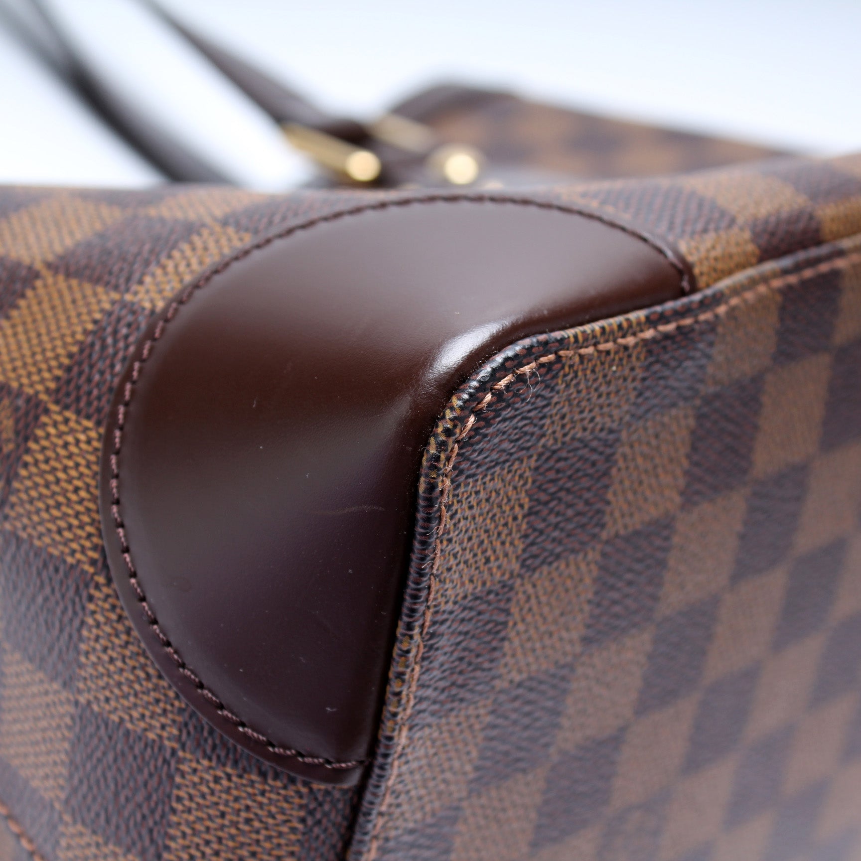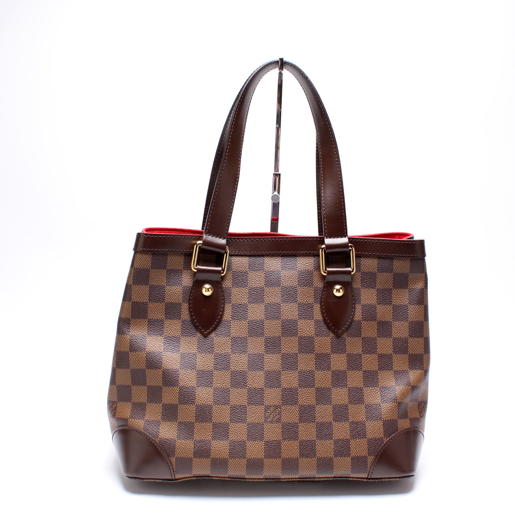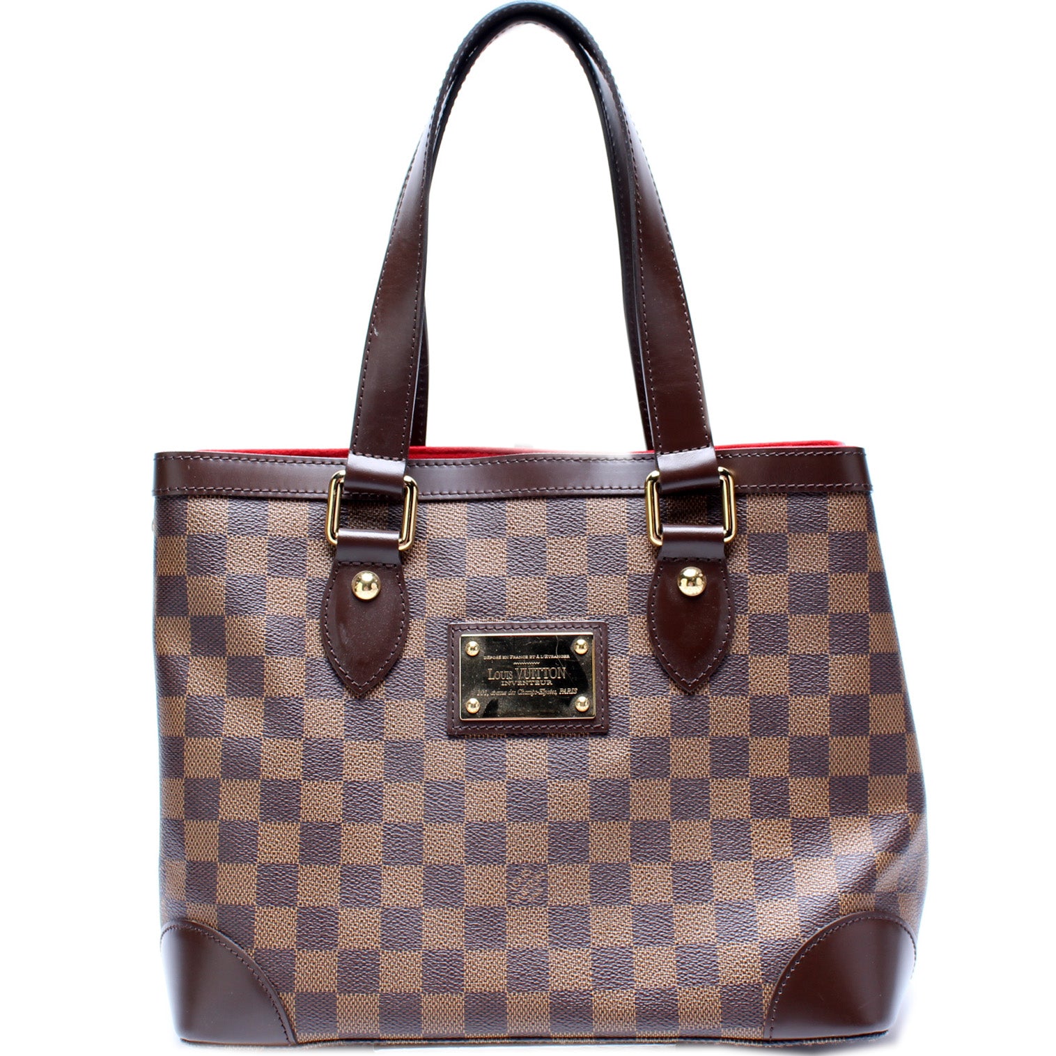This pre-owned Louis Vuitton Hampstead PM is guaranteed 100% authentic. The exterior is in the classic Louis Vuitton Damier Ebene coated canvas.