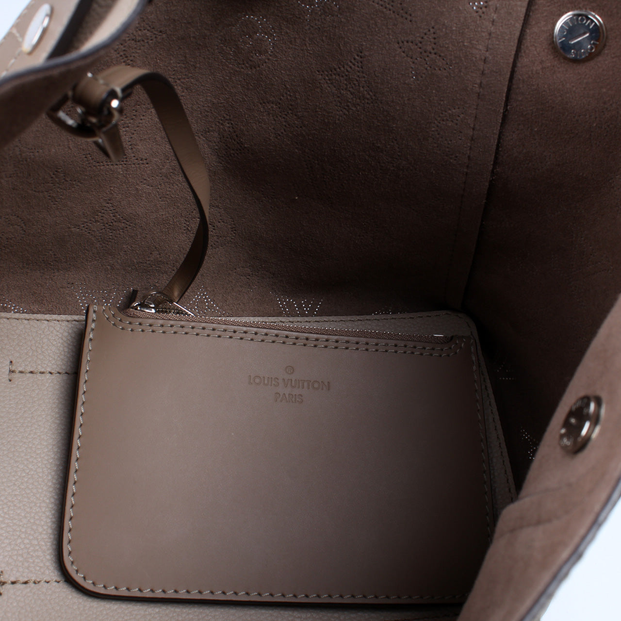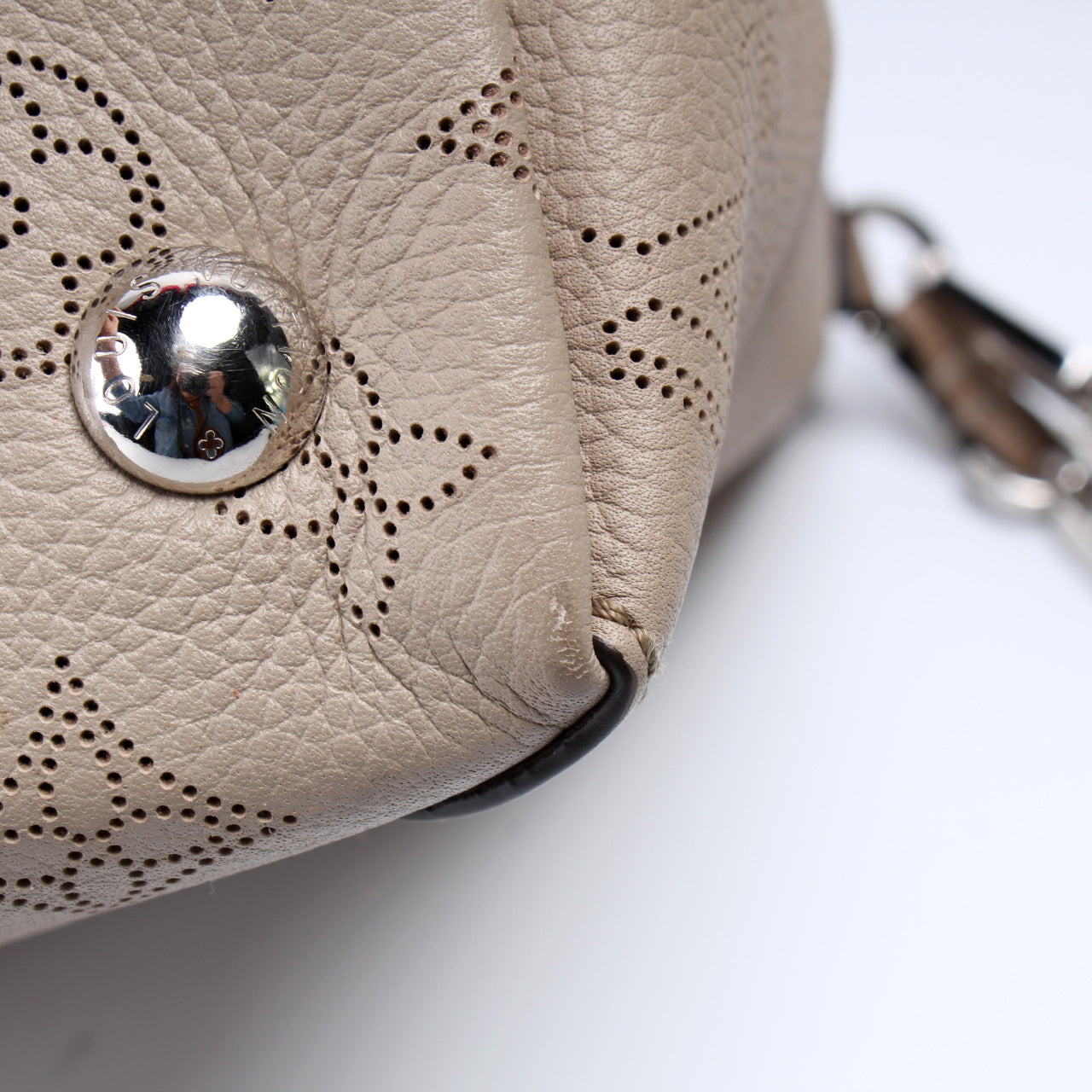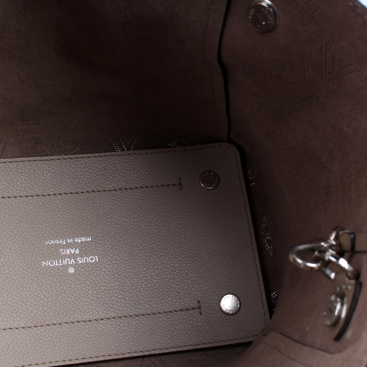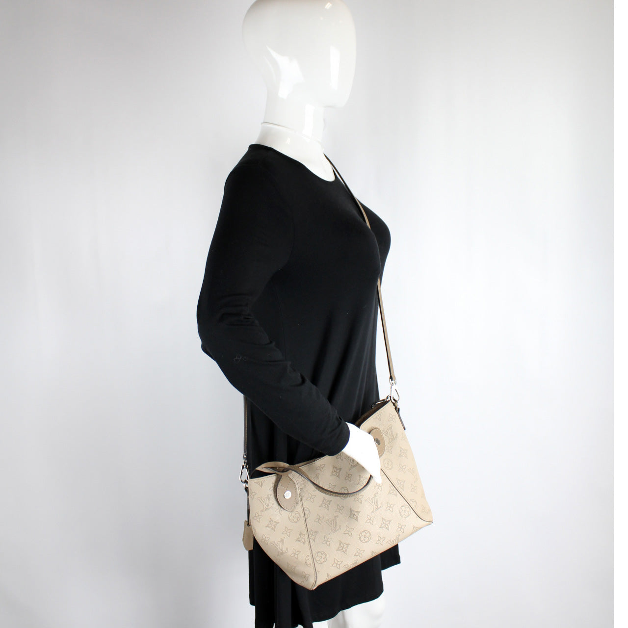 This pre-owned Louis Vuitton Hina PM is guaranteed 100% authentic. The exterior is in the classic Louis Vuitton Mahina leather.