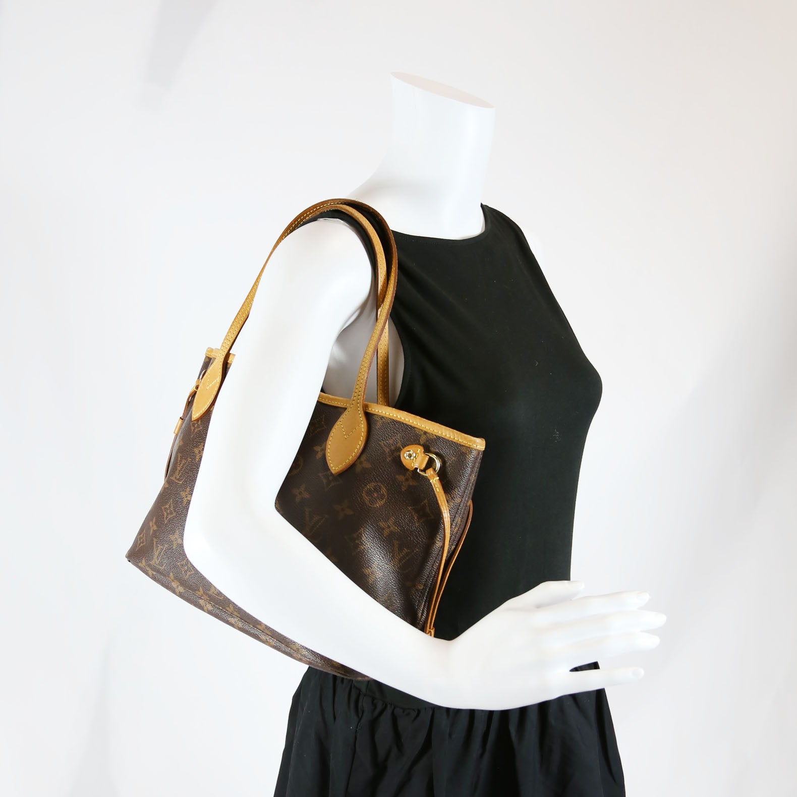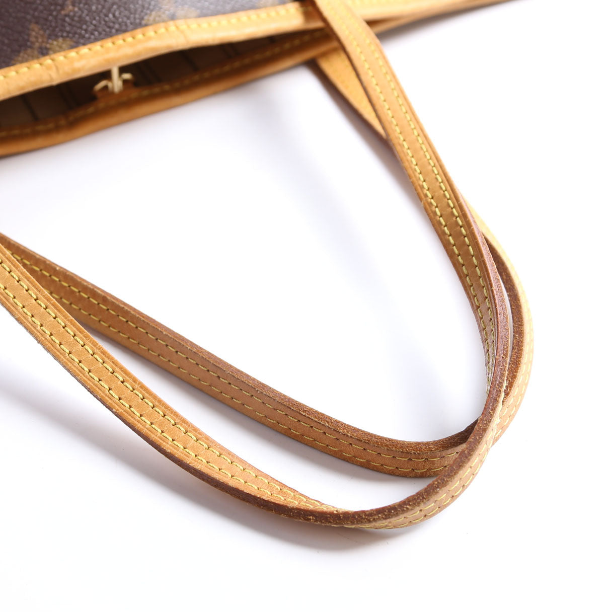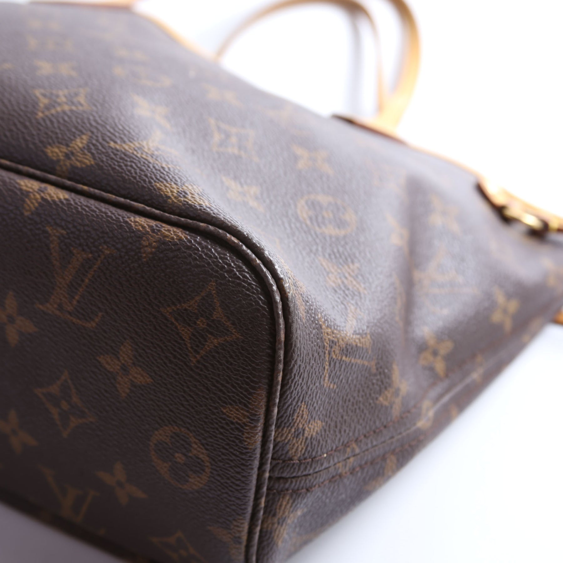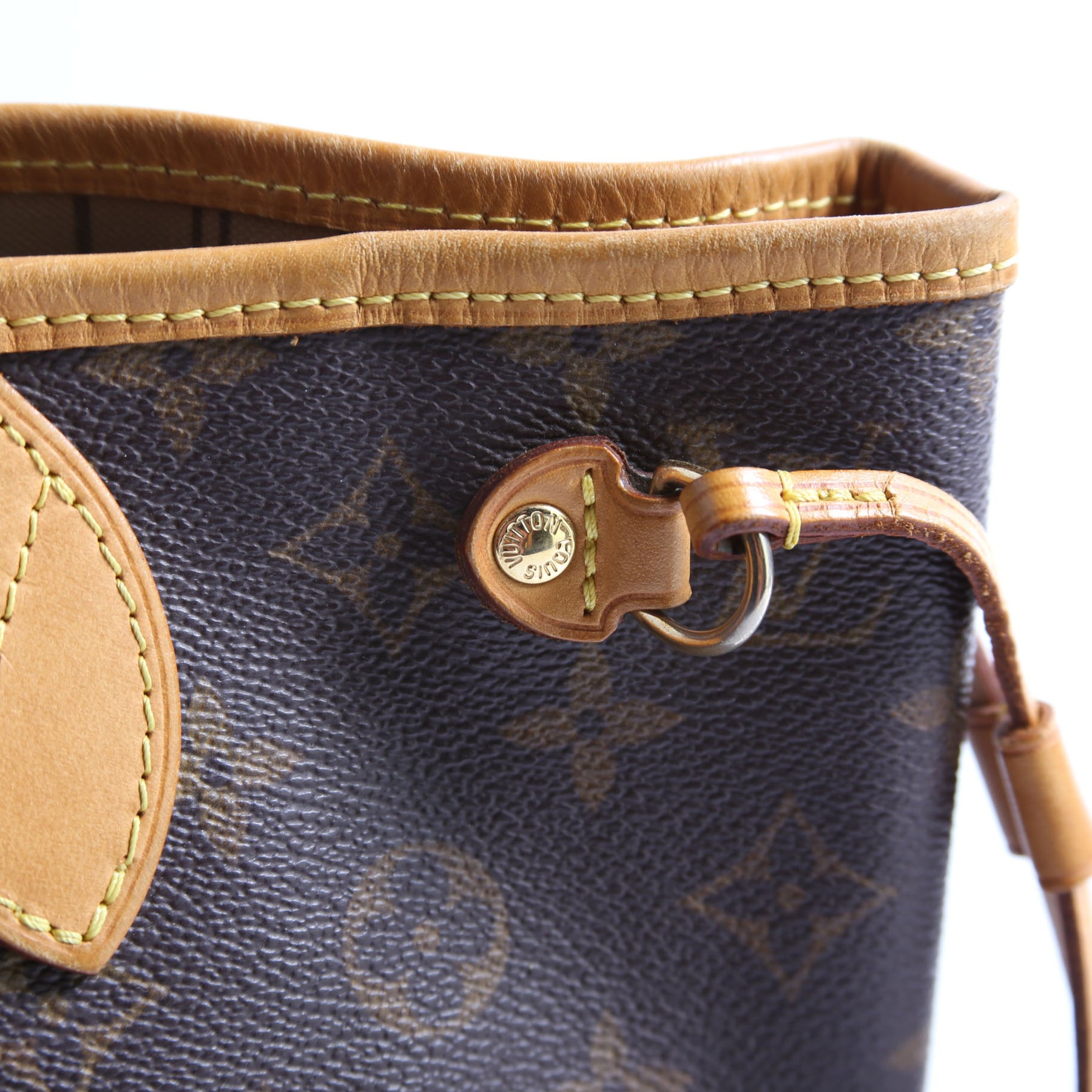 This pre-owned Louis Vuitton Neverfull PM is guaranteed 100% authentic. The exterior is in the classic Louis Vuitton Monogram coated canvas.