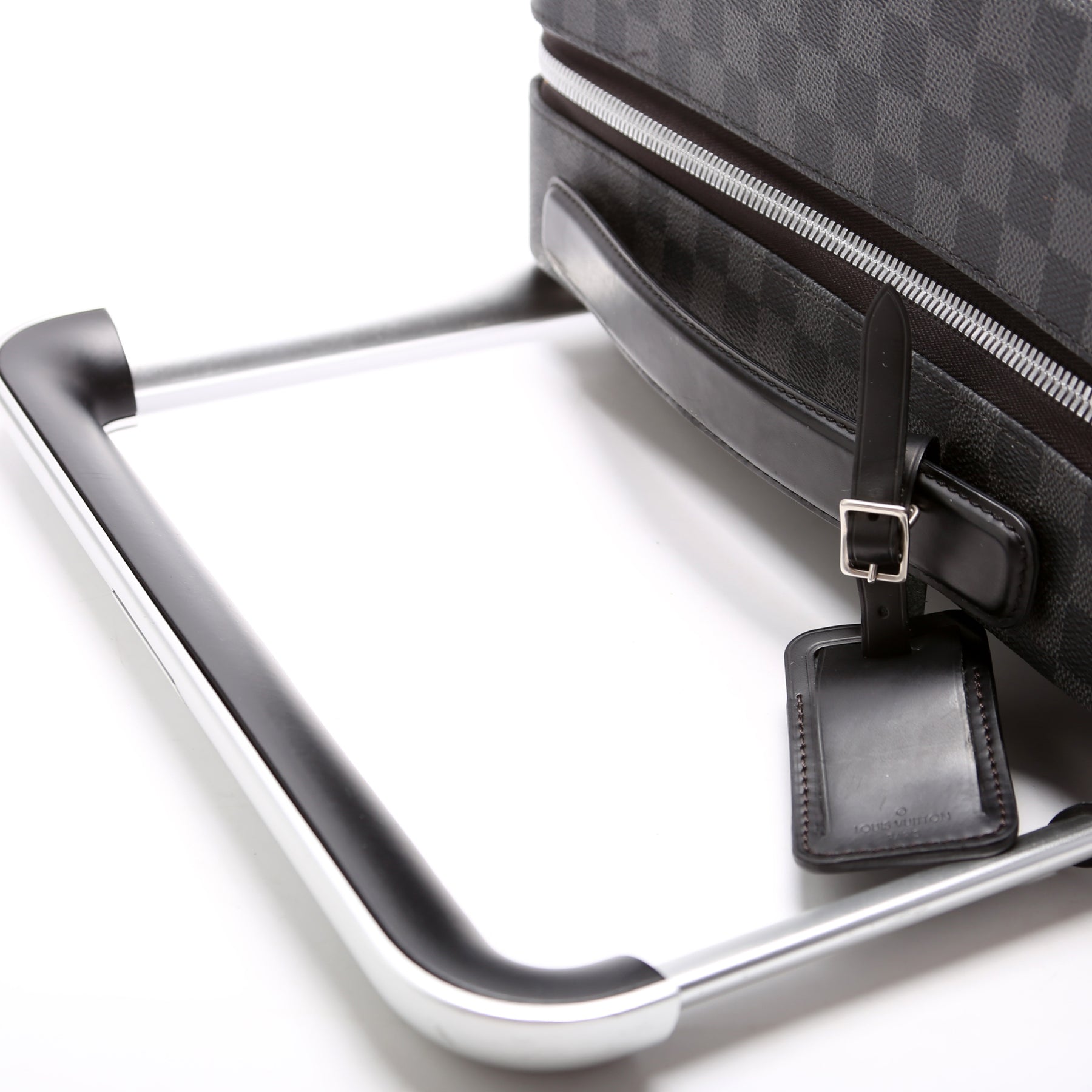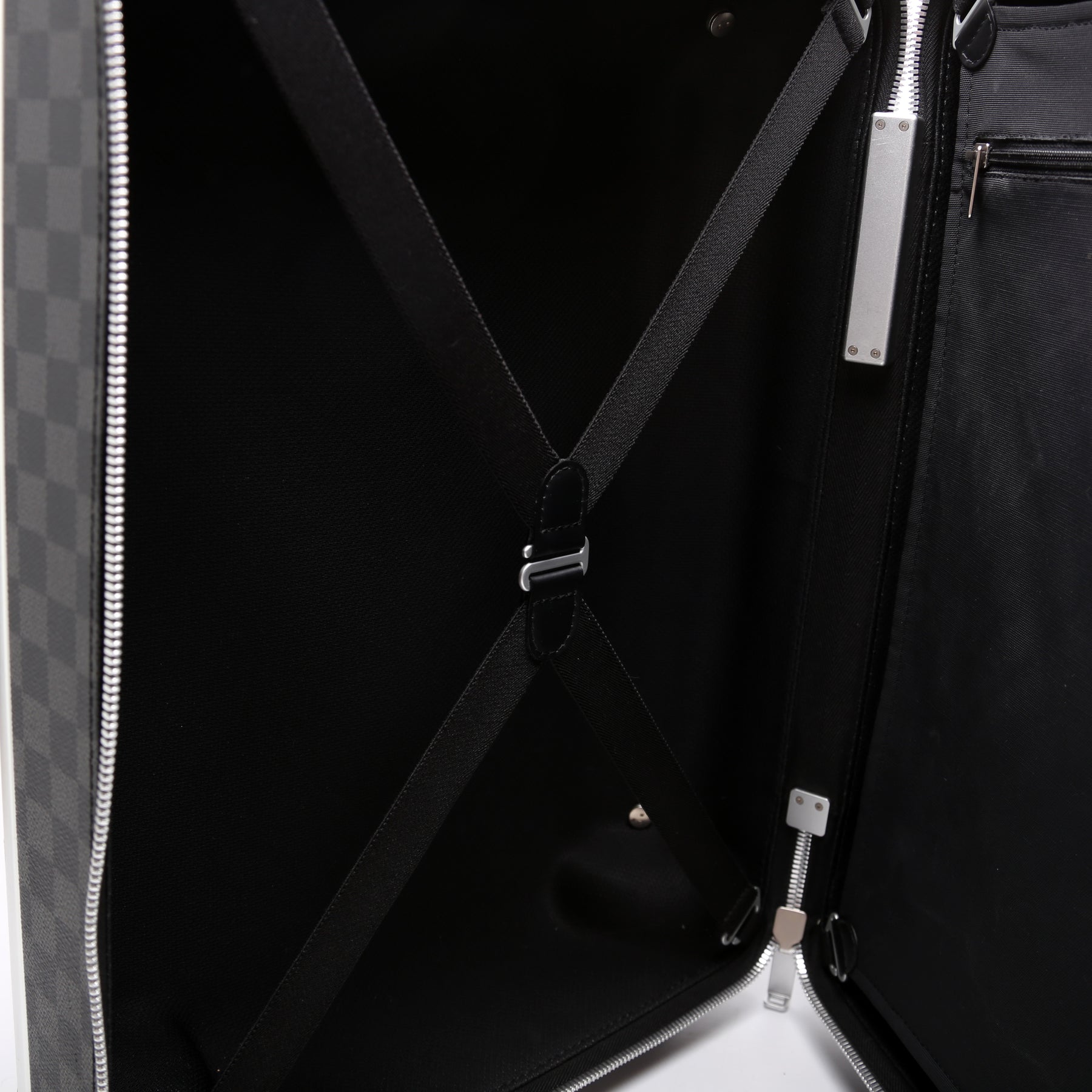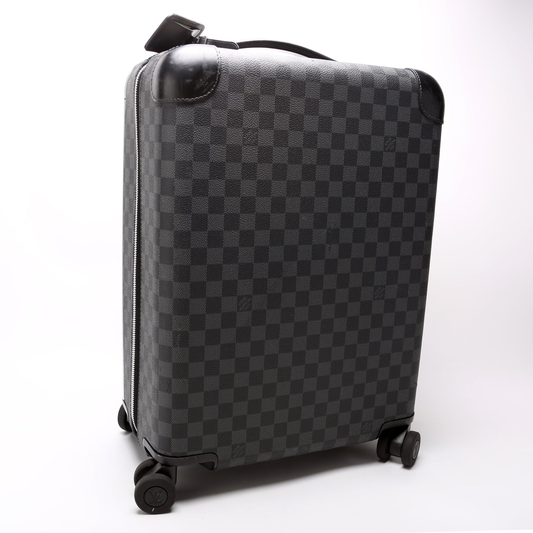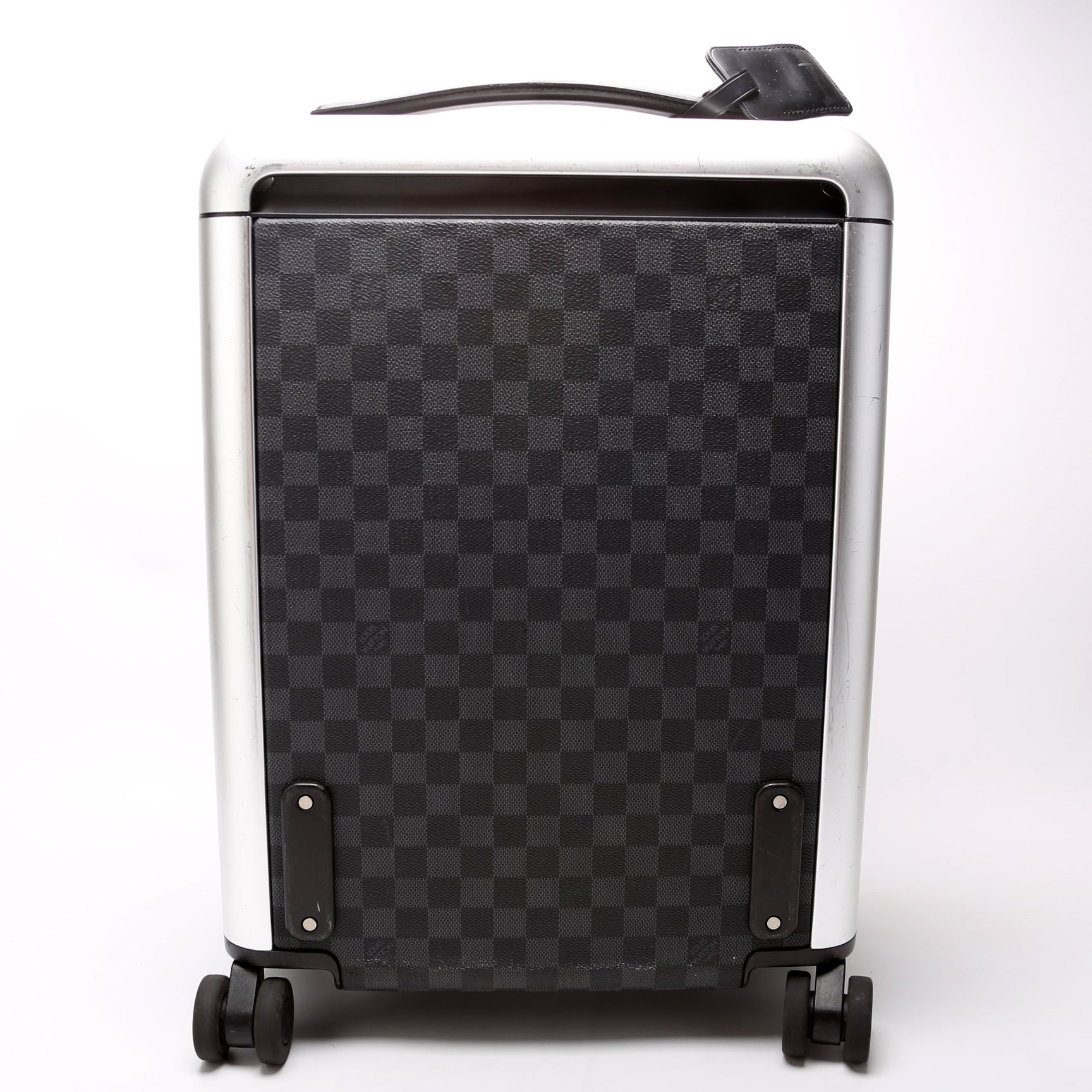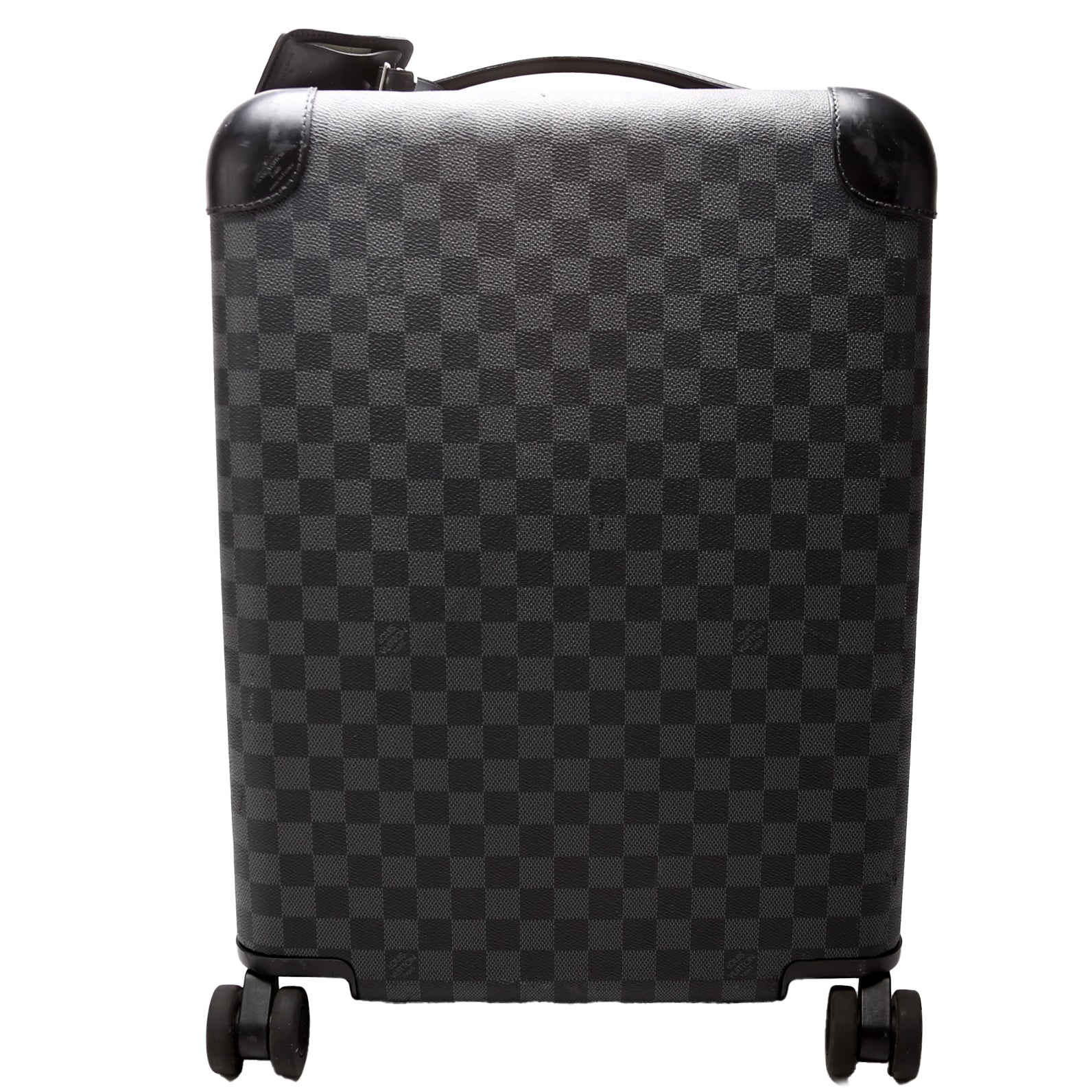 This pre-owned Louis Vuitton Horizon 50 is guaranteed 100% authentic. The exterior is in the classic Damier Graphite coated canvas.