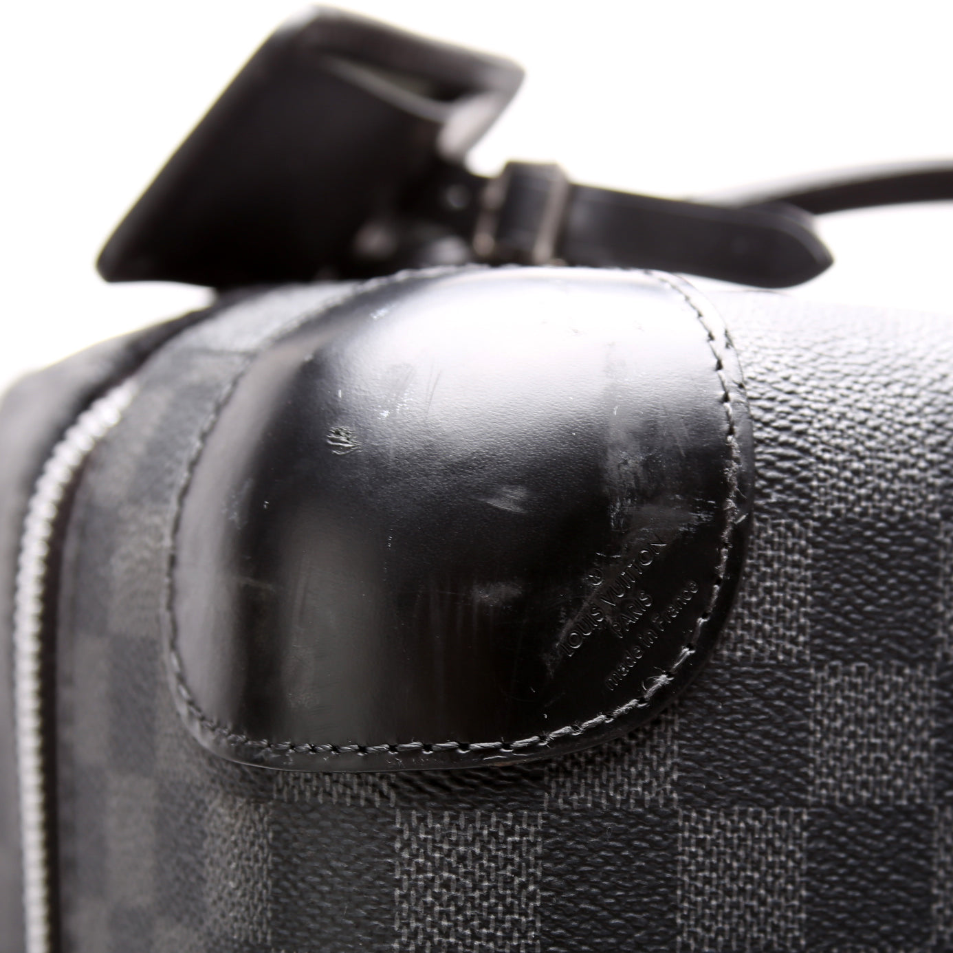 Handle: The retractable handle has scratches throughout.