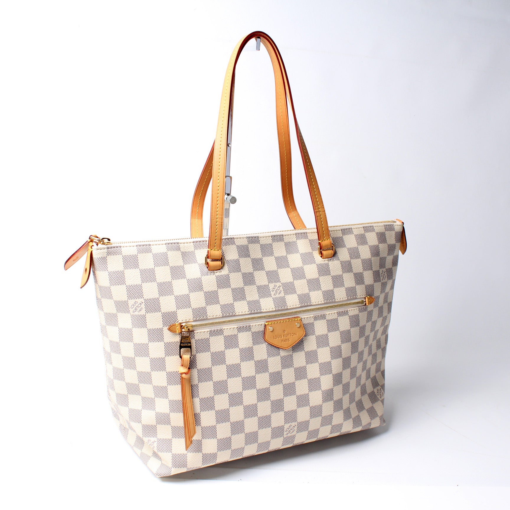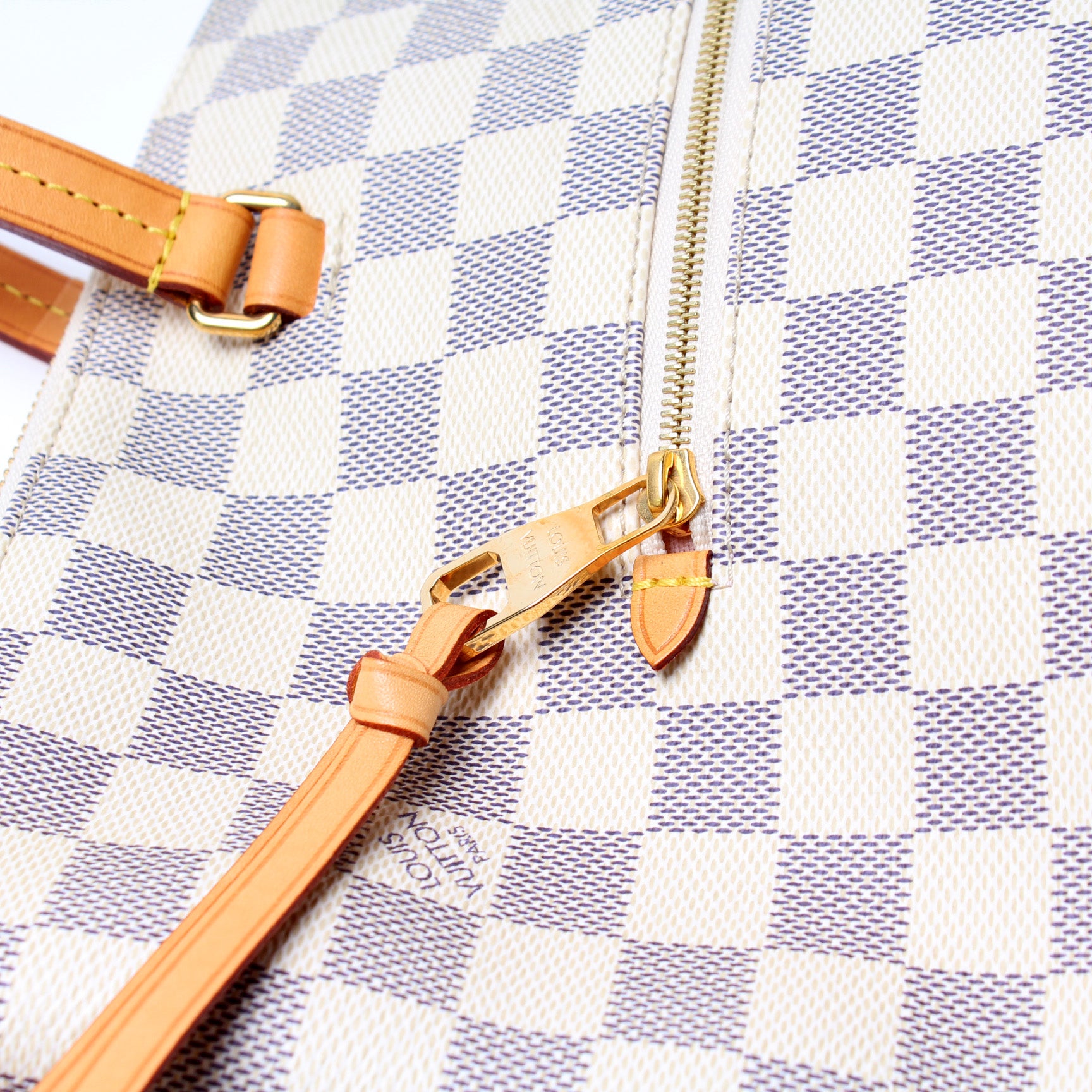 This pre-owned Louis Vuitton Iena MM is guaranteed 100% authentic. The exterior is in the classic Louis Vuitton Damier Azur coated canvas.