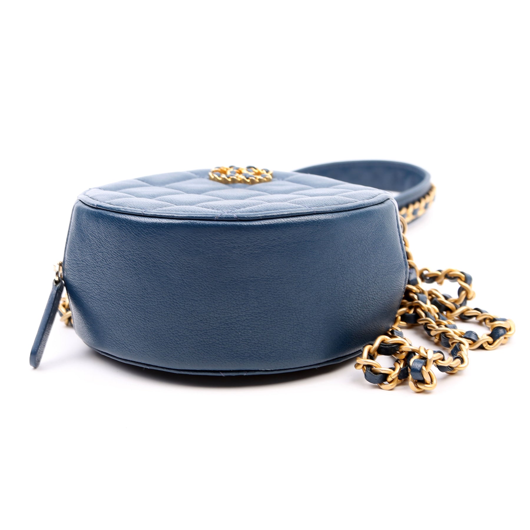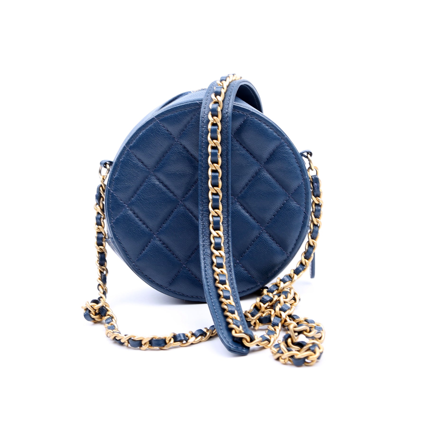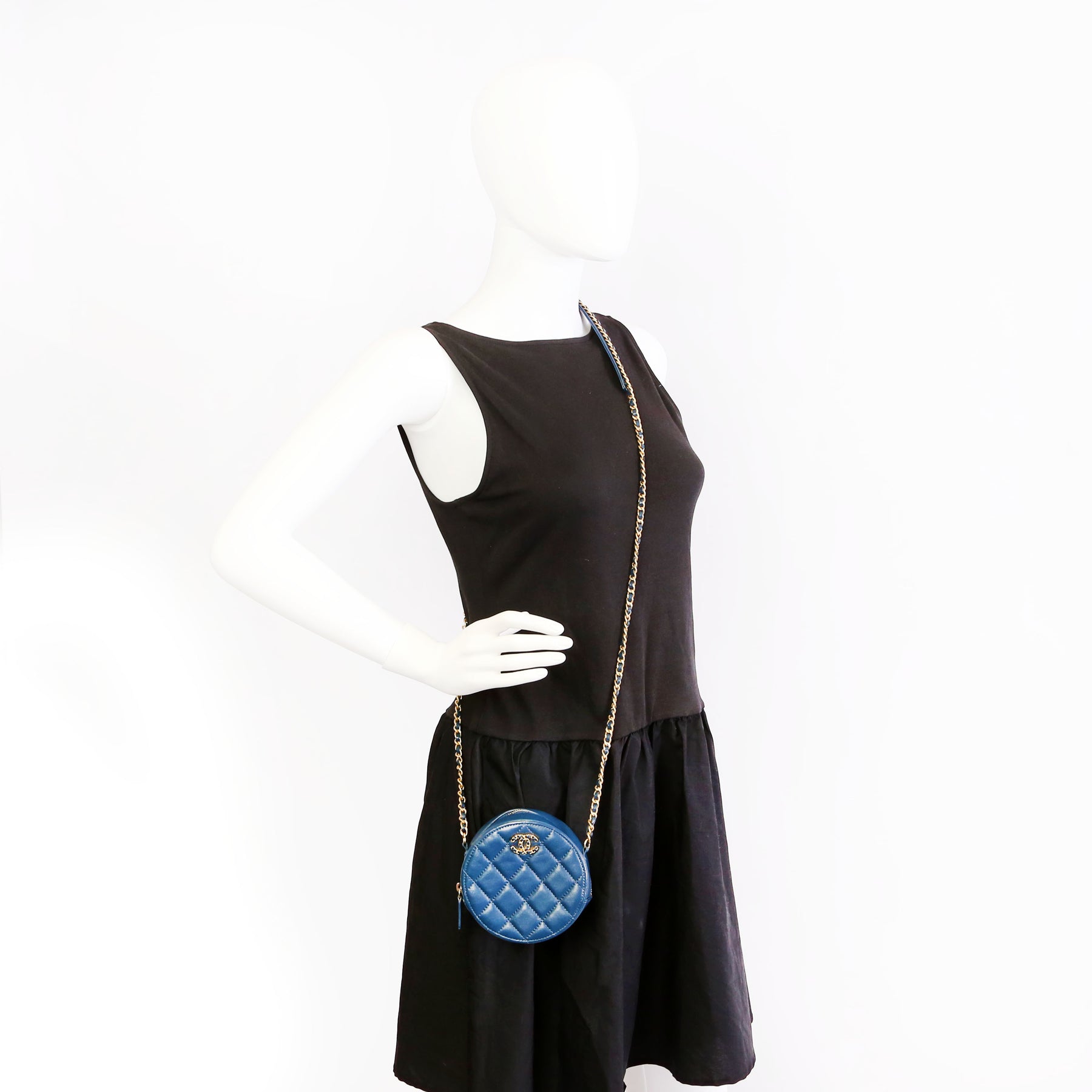 Infinity Round Clutch With Chain Quilted Lambskin 28M Blue