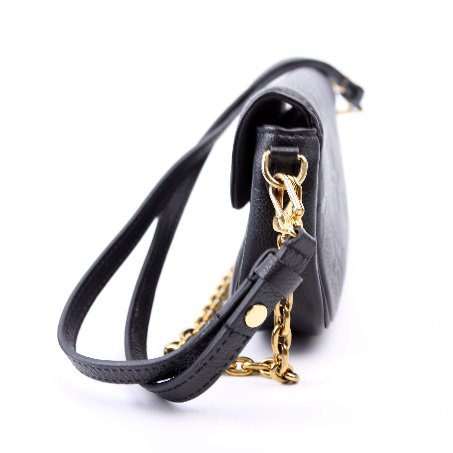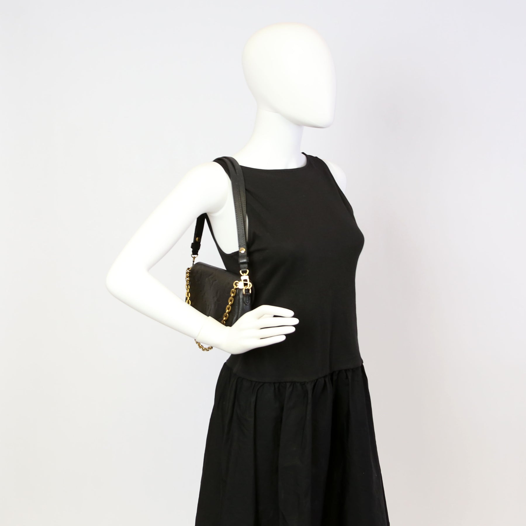 This pre-owned Louis Vuitton Ivy Wallet On Chain is guaranteed 100% authentic. The exterior is in the classic Louis Vuitton Empriente leather