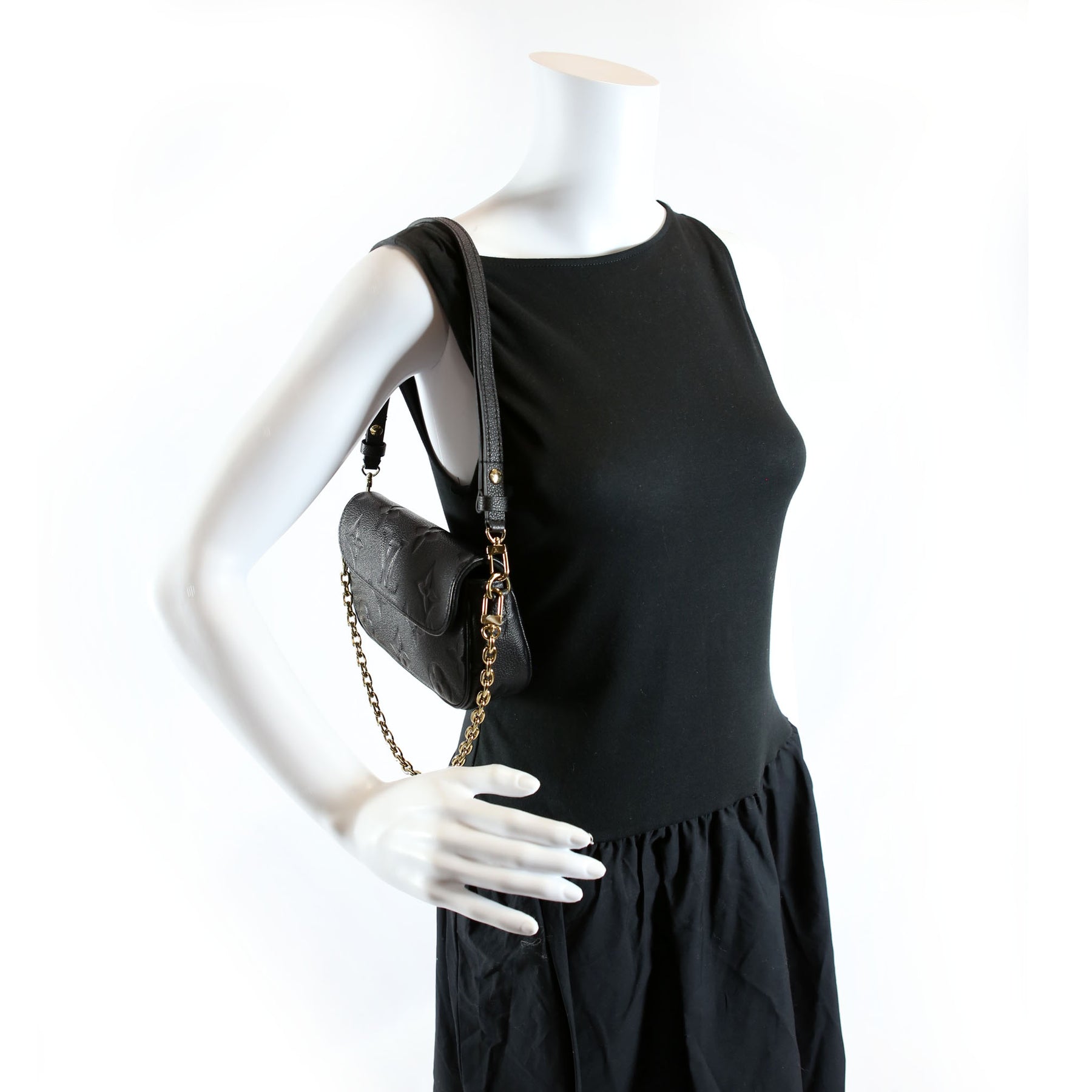 This pre-owned Louis Vuitton Ivy Wallet On Chain is guaranteed 100% authentic. The exterior is in the classic Louis Vuitton Empreinte leather.