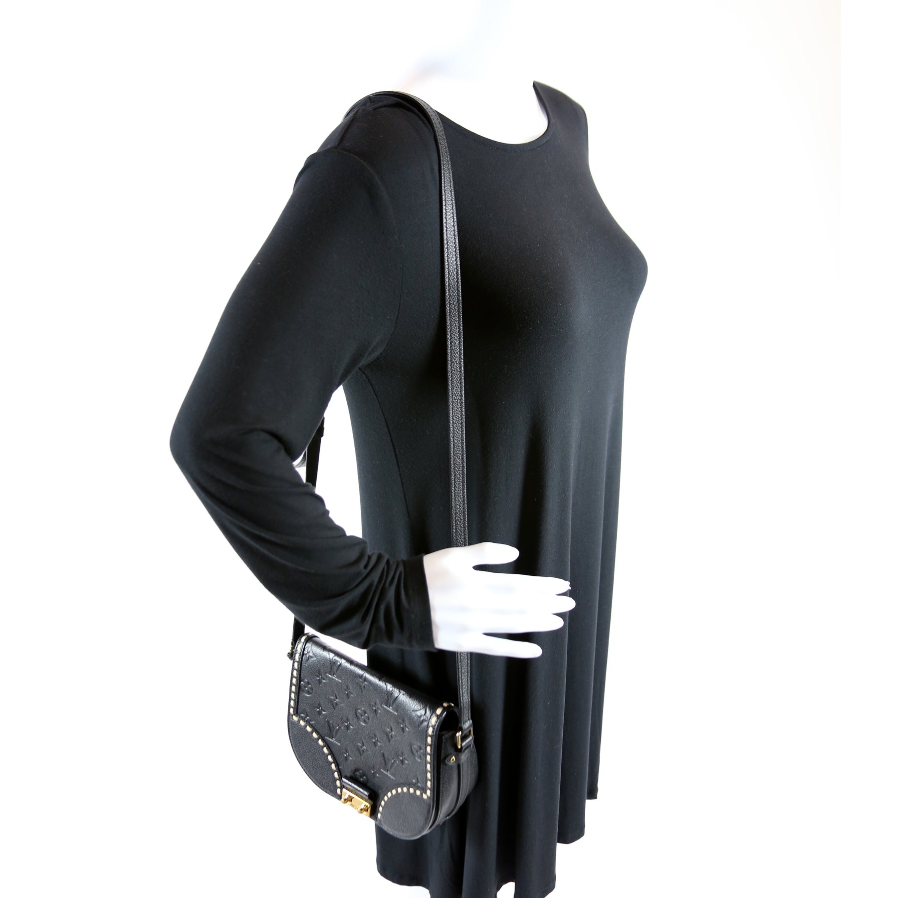 This pre-owned Louis Vuitton Junot is guaranteed 100% authentic. The exterior is in the classic Empreinte Leather.