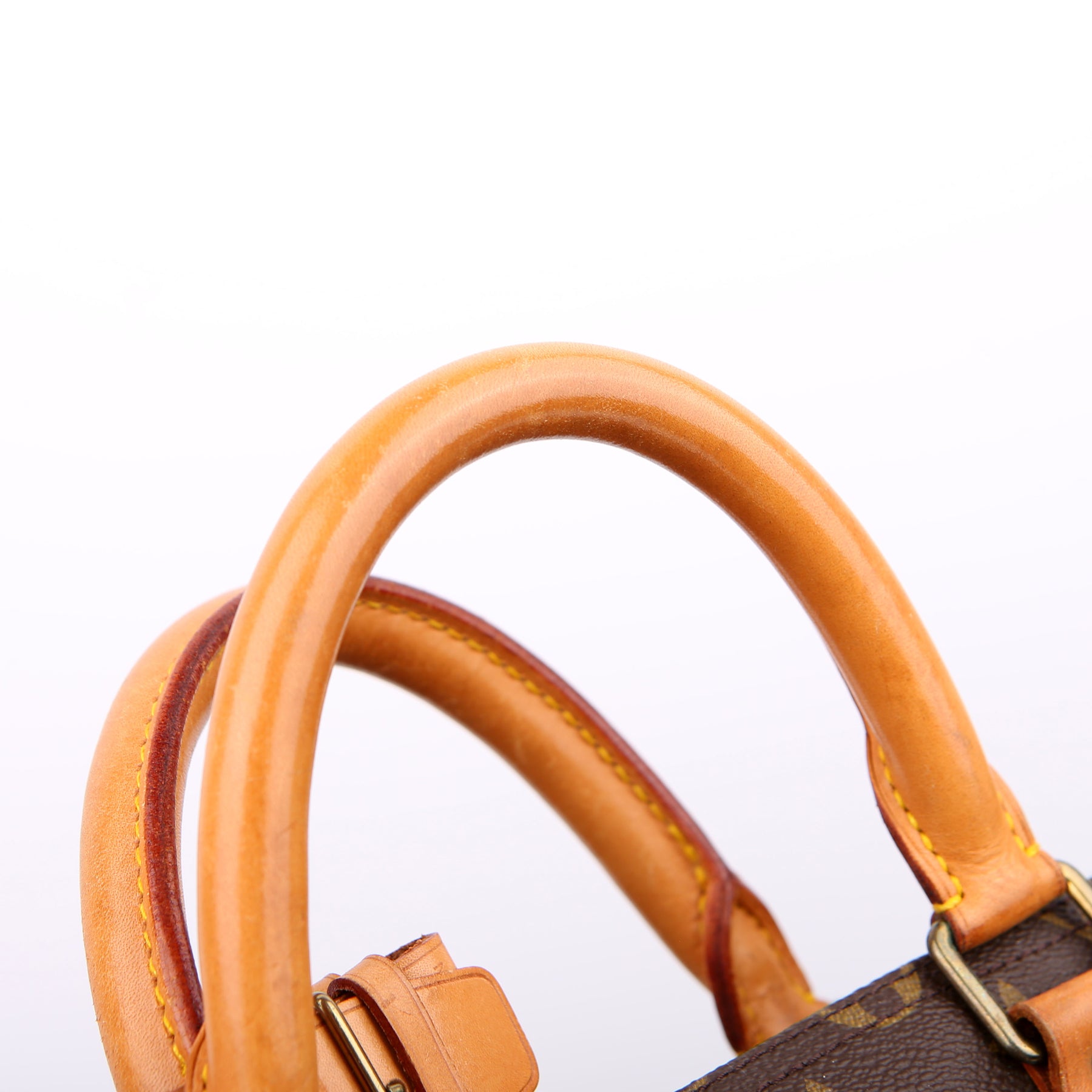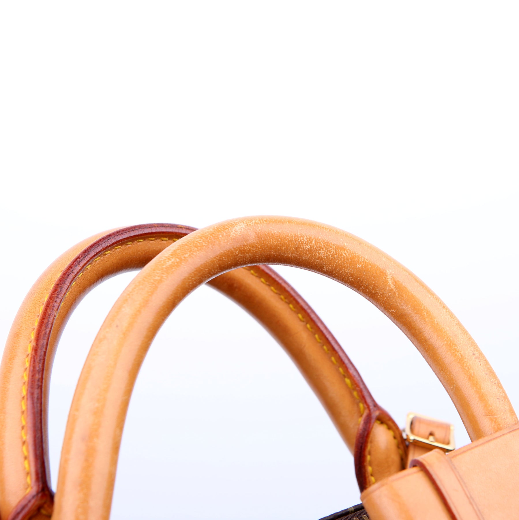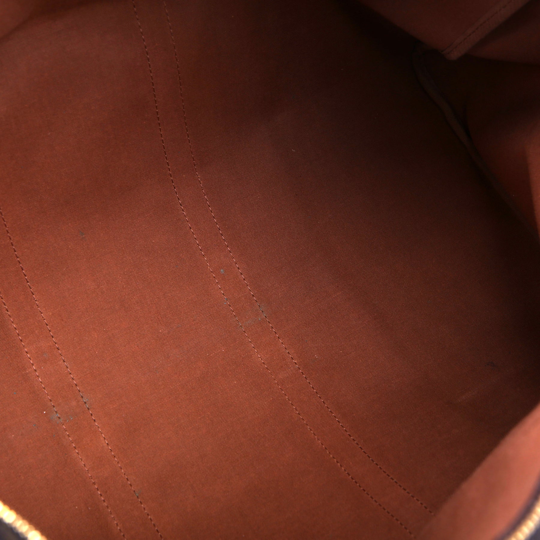 Exterior: The exterior coated canvas is free from wear. The leather has discoloration throughout.