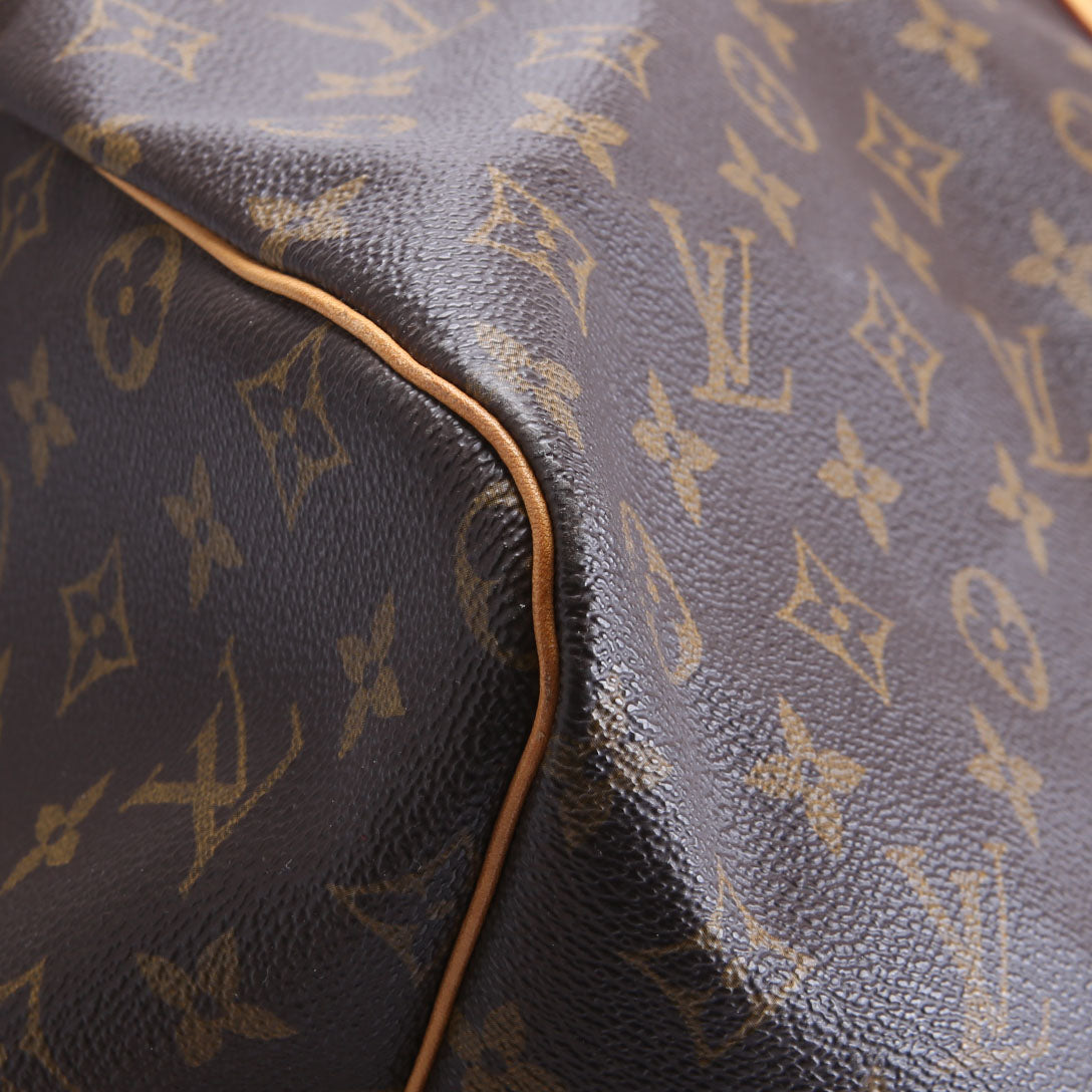 This pre-owned Louis Vuitton Keepall 60 is guaranteed 100% authentic. The exterior is in the classic Monogram coated canvas.
