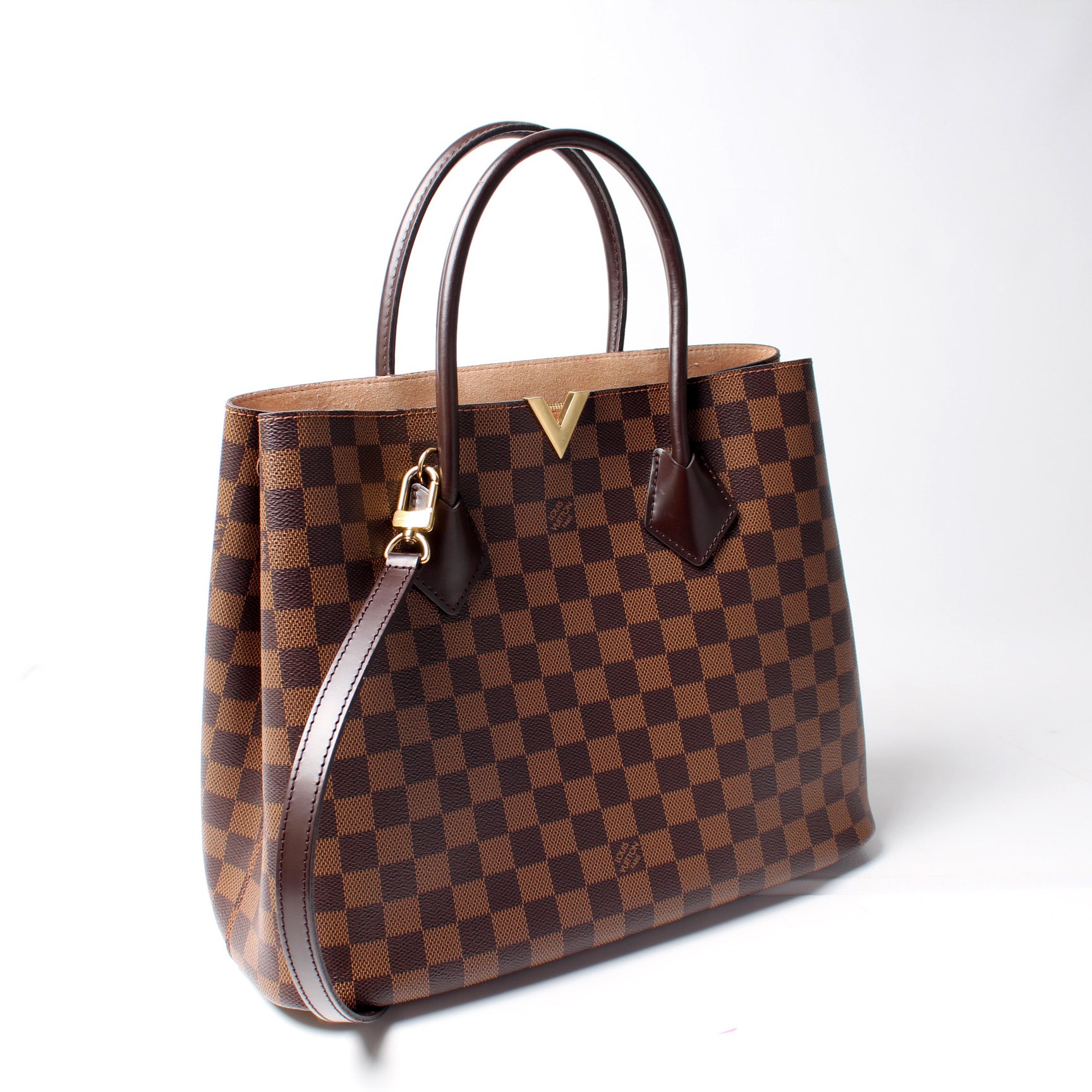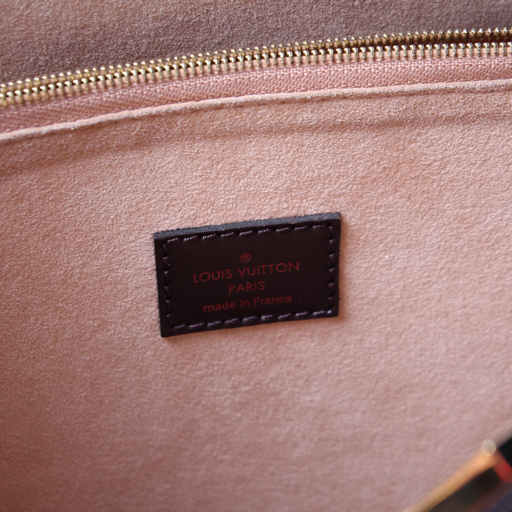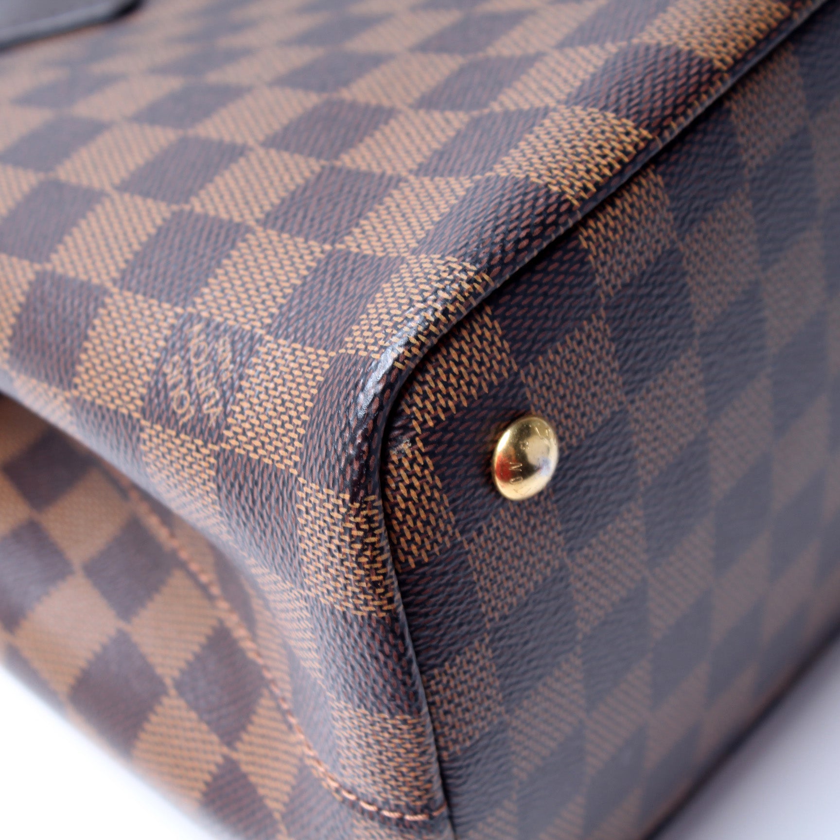 This pre-owned Louis Vuitton Kensington Tote is guaranteed 100% authentic. The exterior is in the classic Damier Ebene coated canvas.