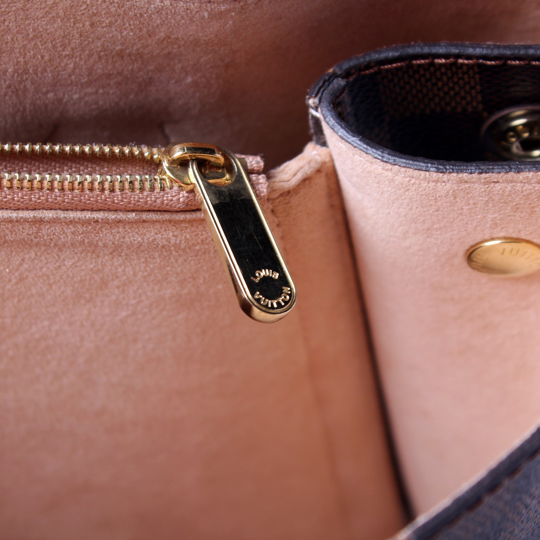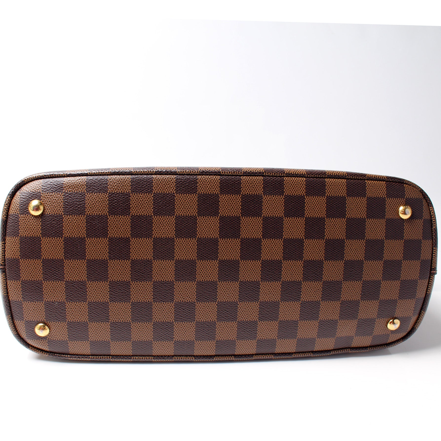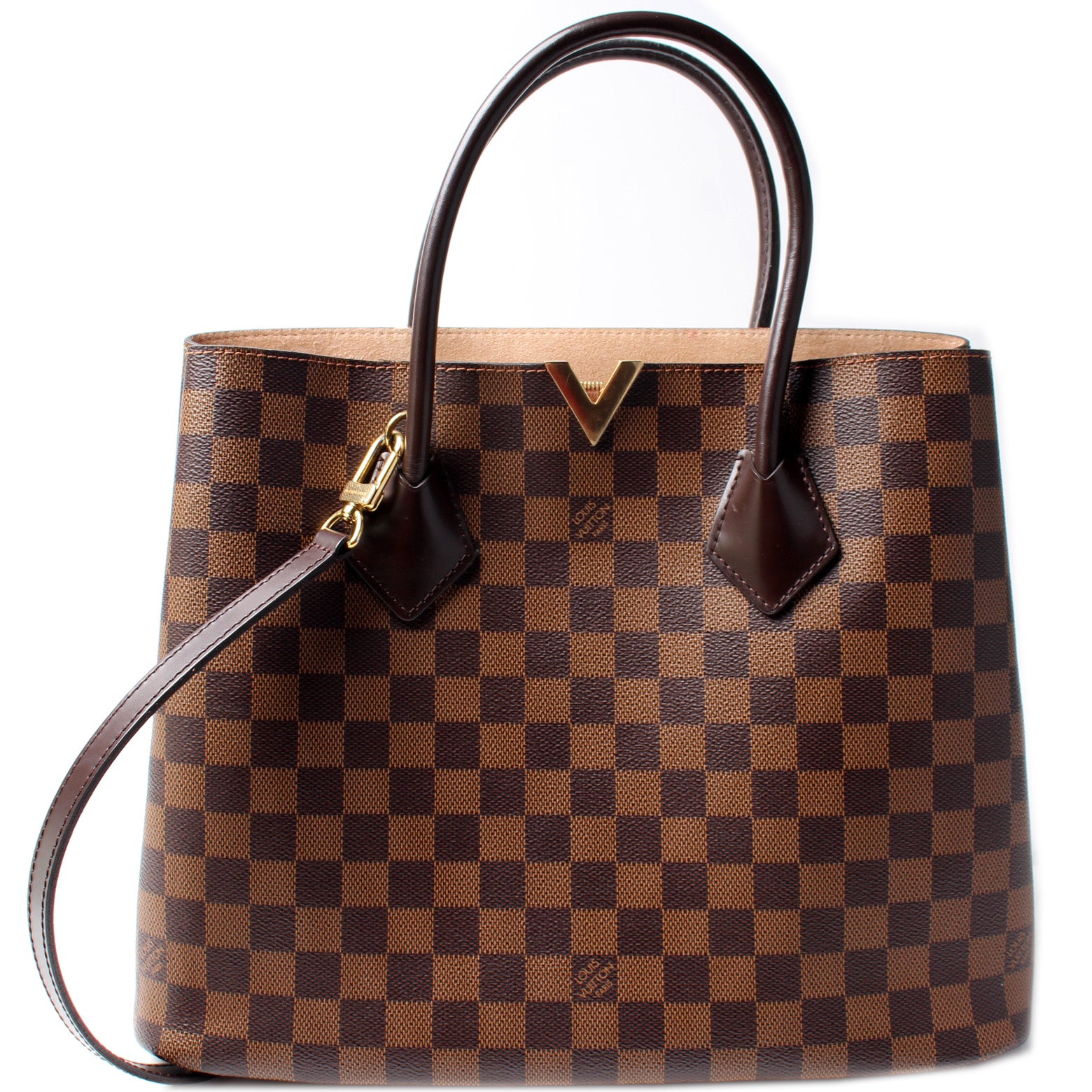This pre-owned Louis Vuitton Kensington Tote is guaranteed 100% authentic. The exterior is in the classic Damier Ebene coated canvas.