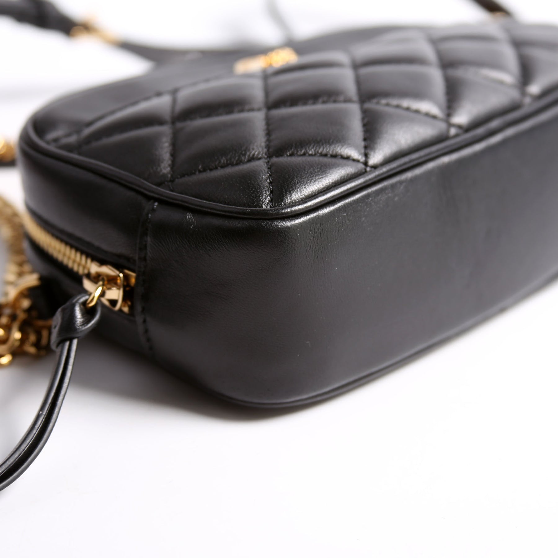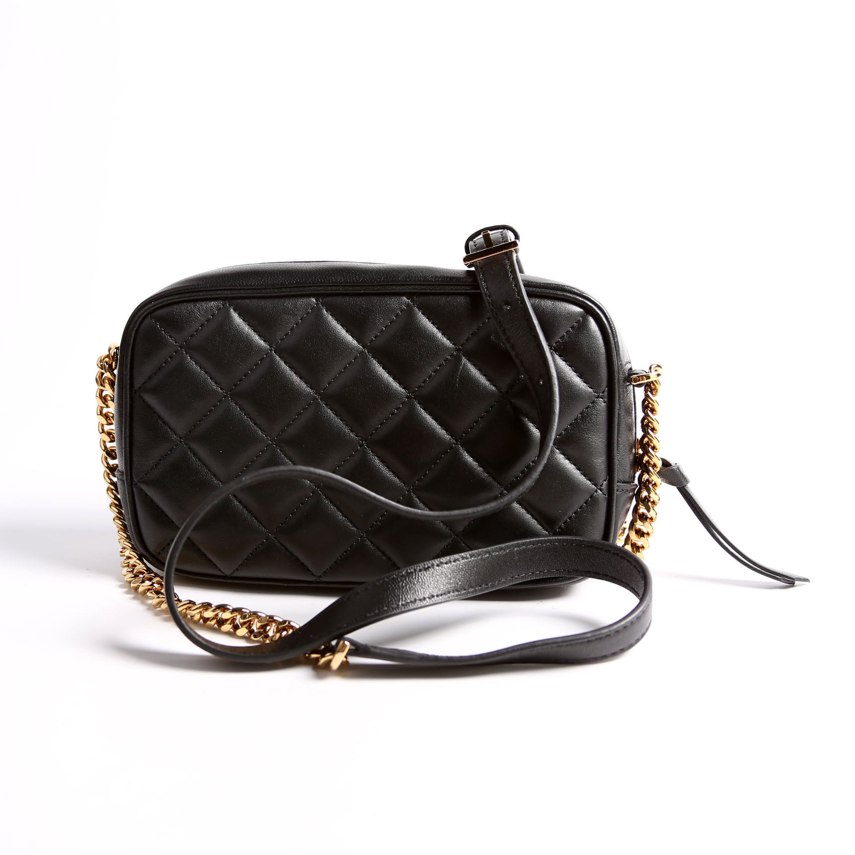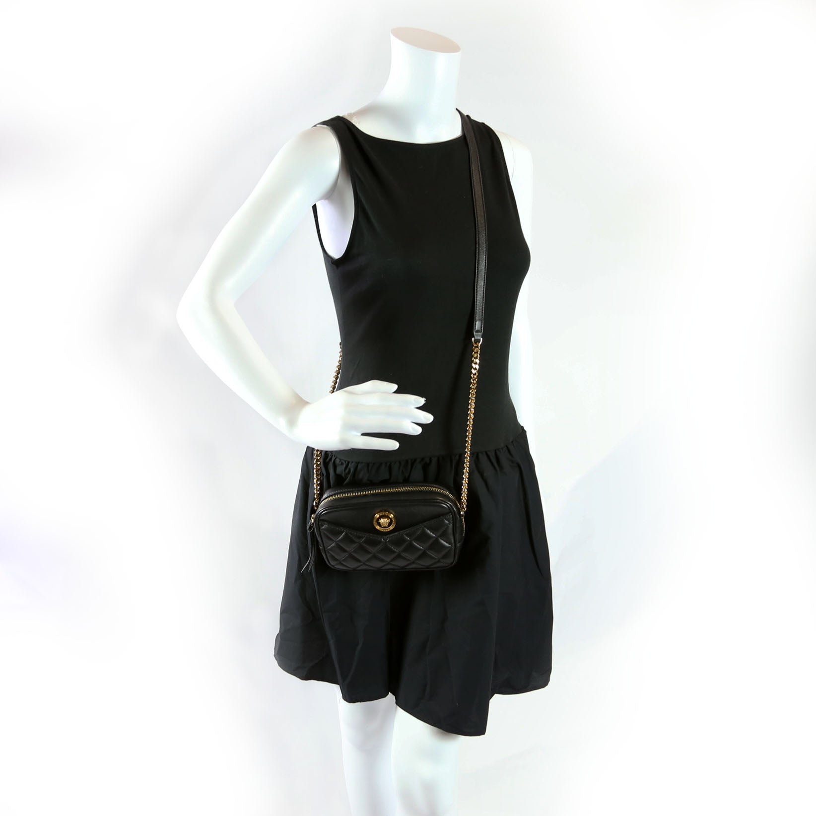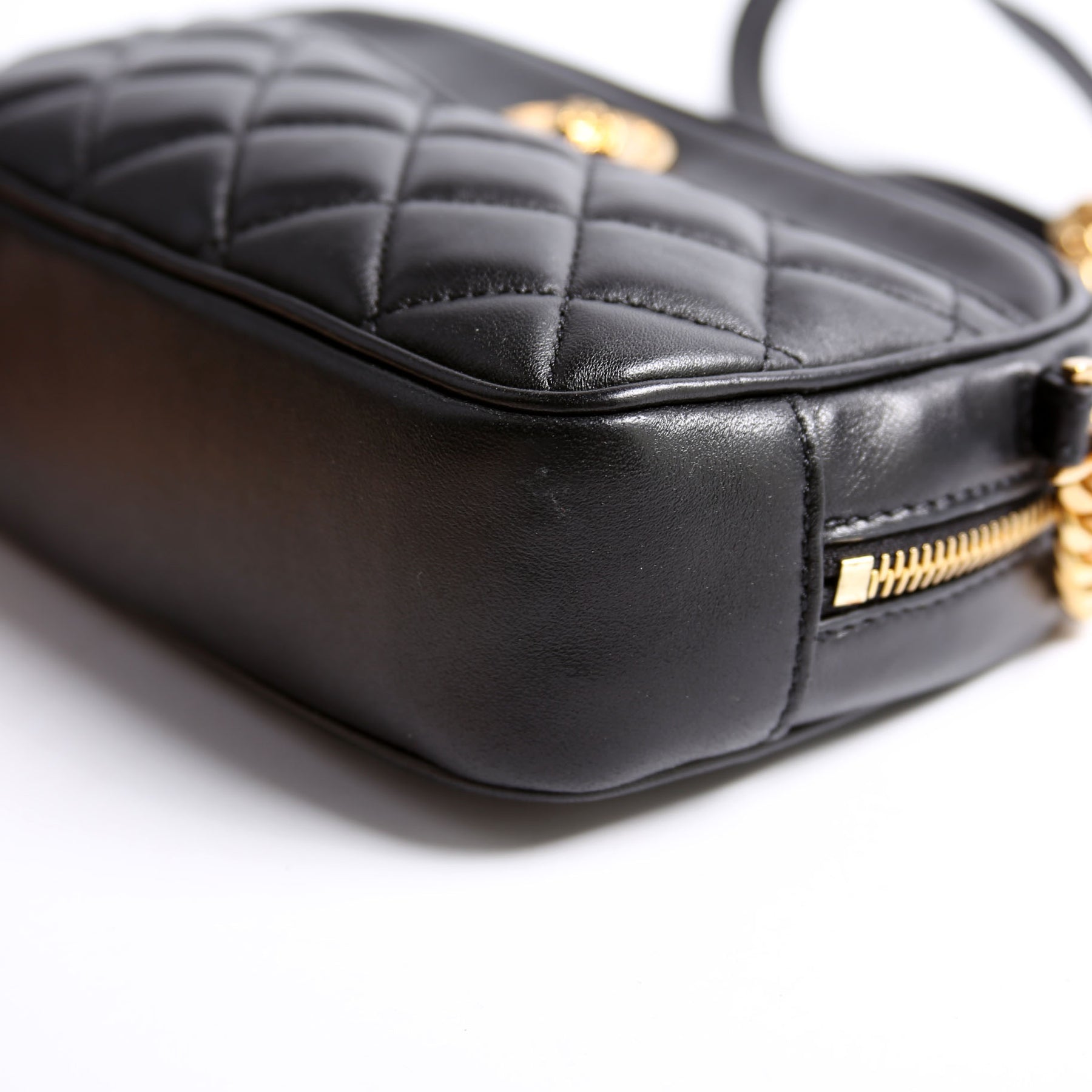 This pre-owned Versace La Medusa Quilted Leather Small Camera Bag is guaranteed 100% authentic.