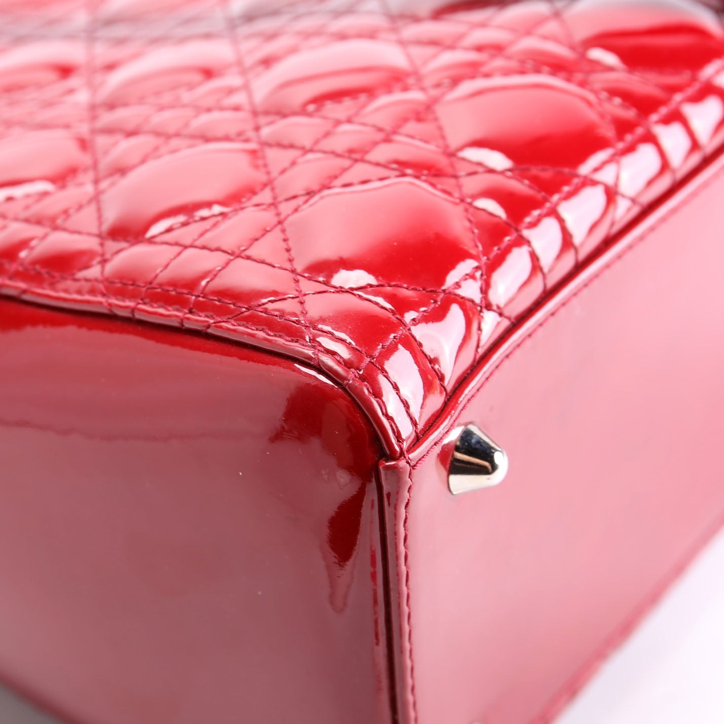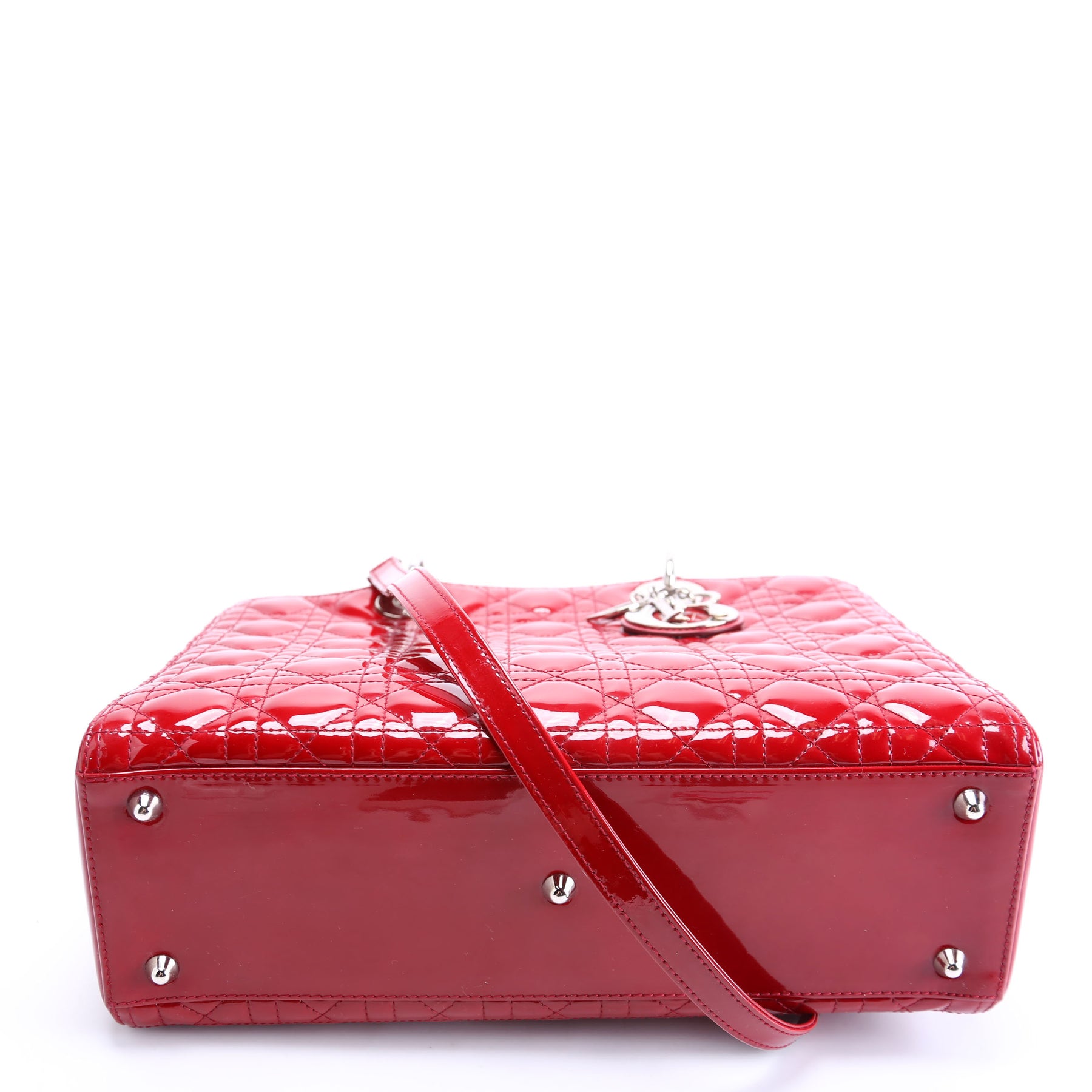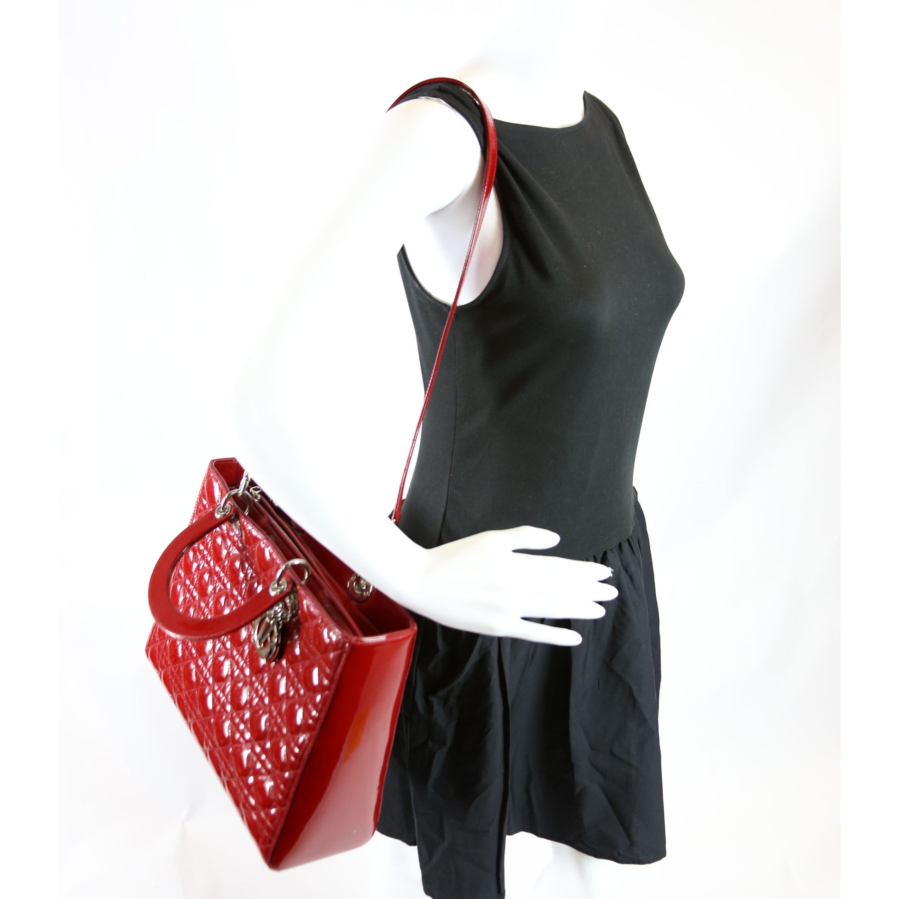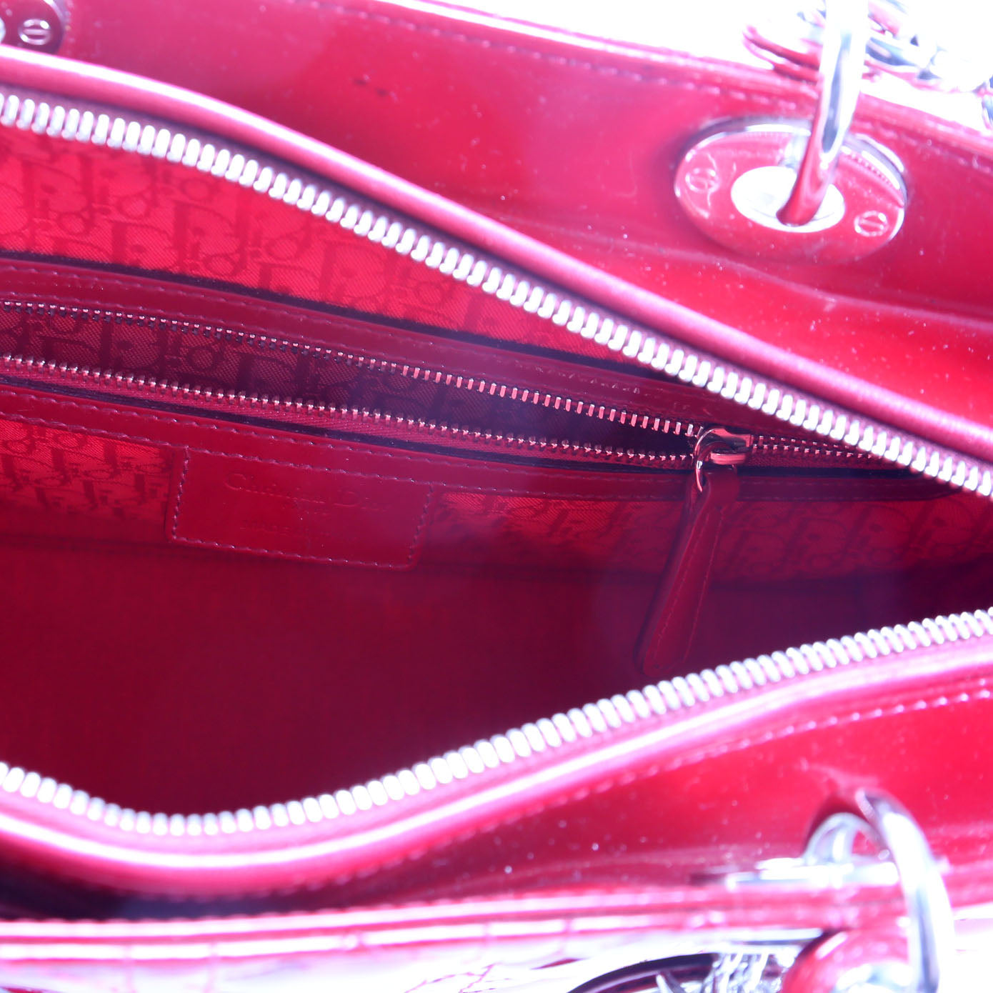 This pre-owned Dior Lady Dior Large is guaranteed 100% authentic. The exterior is in the classic Dior Patent leather.