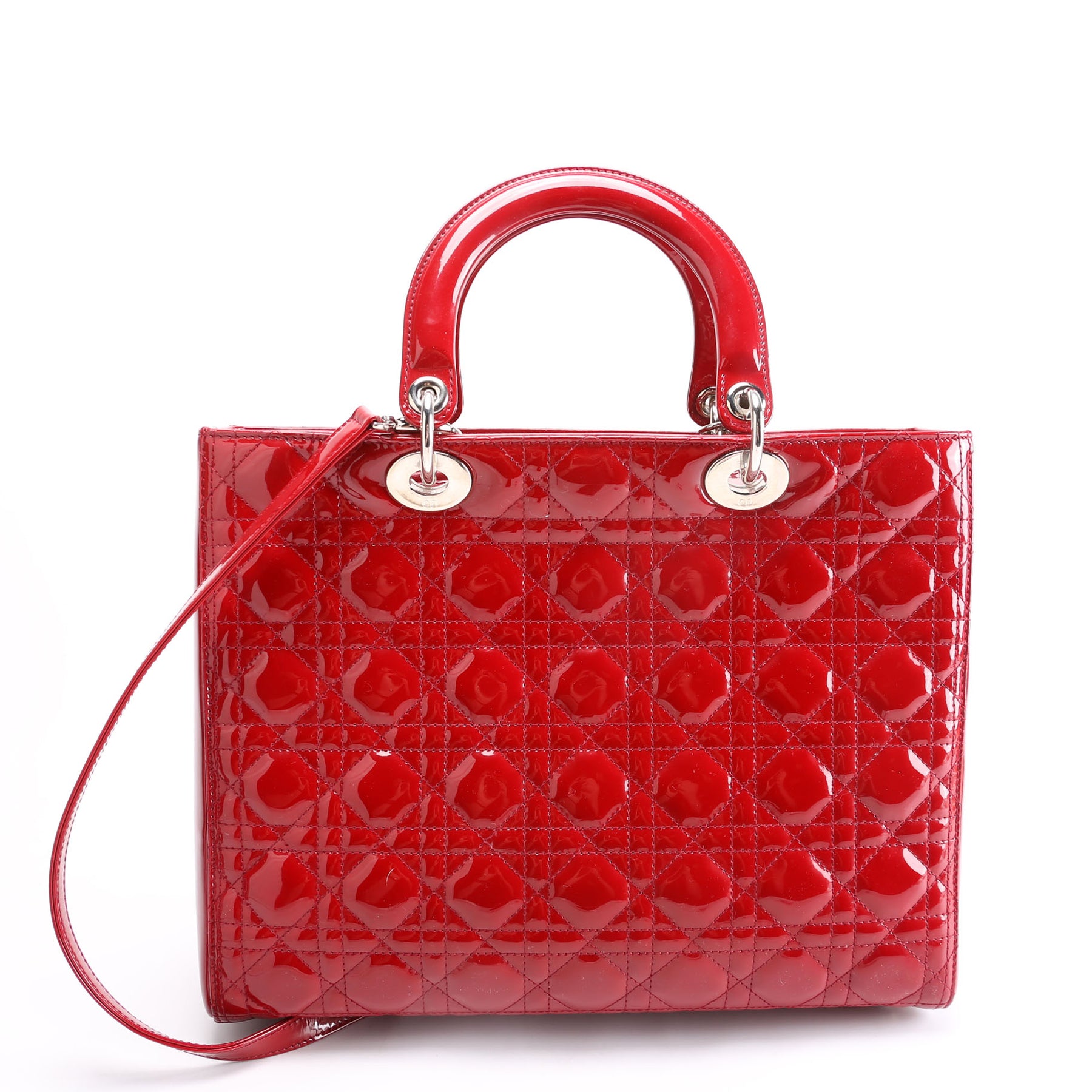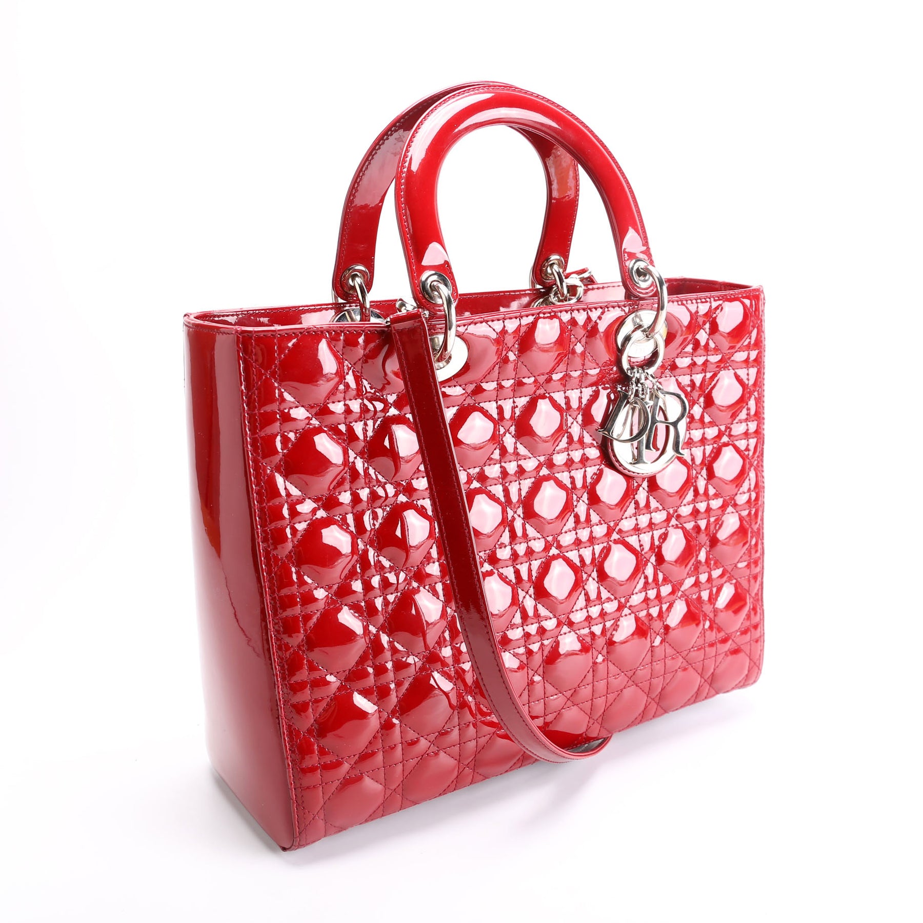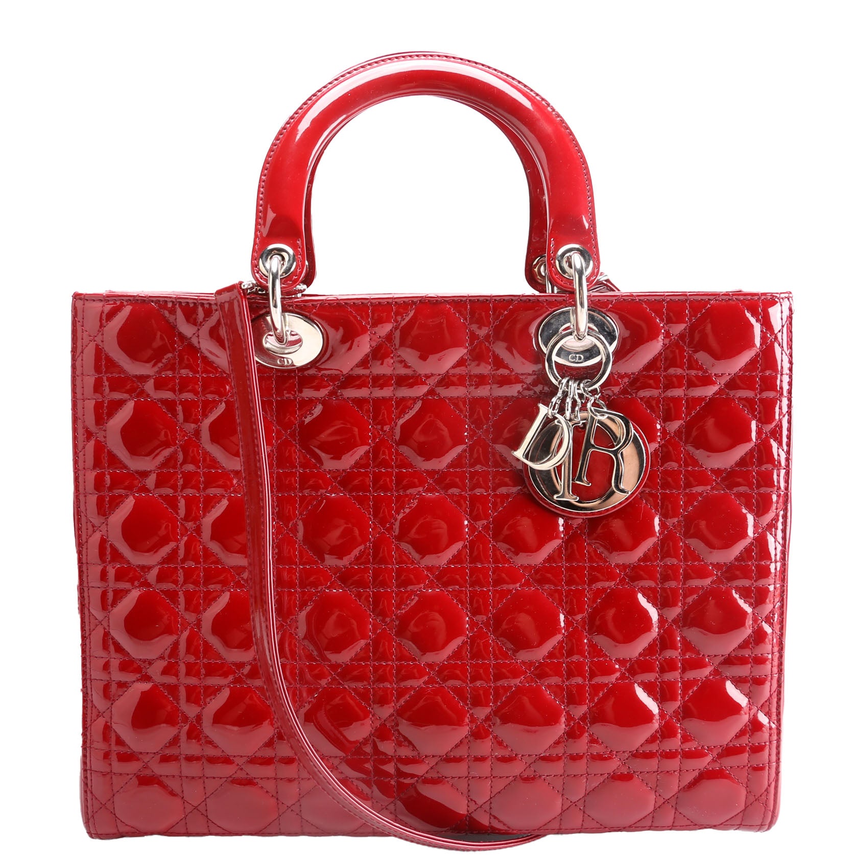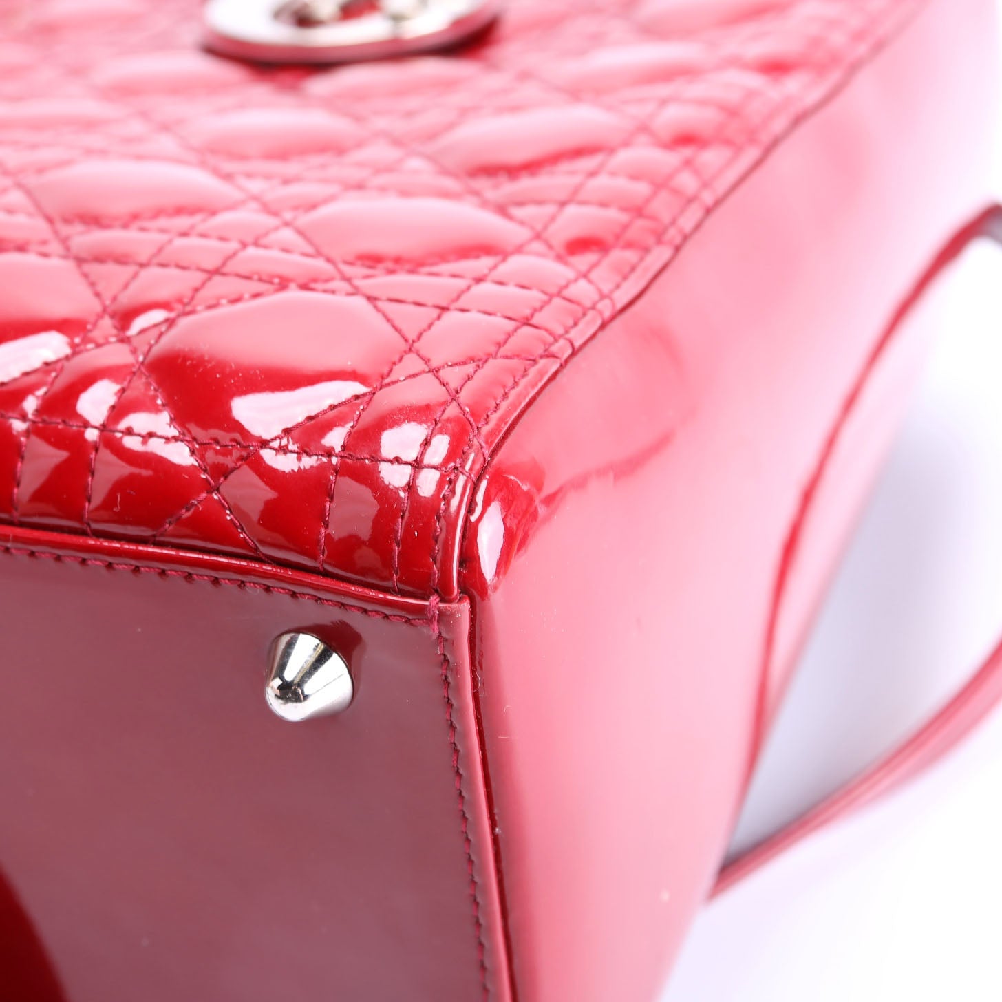 This pre-owned Dior Lady Dior Large is guaranteed 100% authentic. The exterior is in the classic Dior Patent leather.