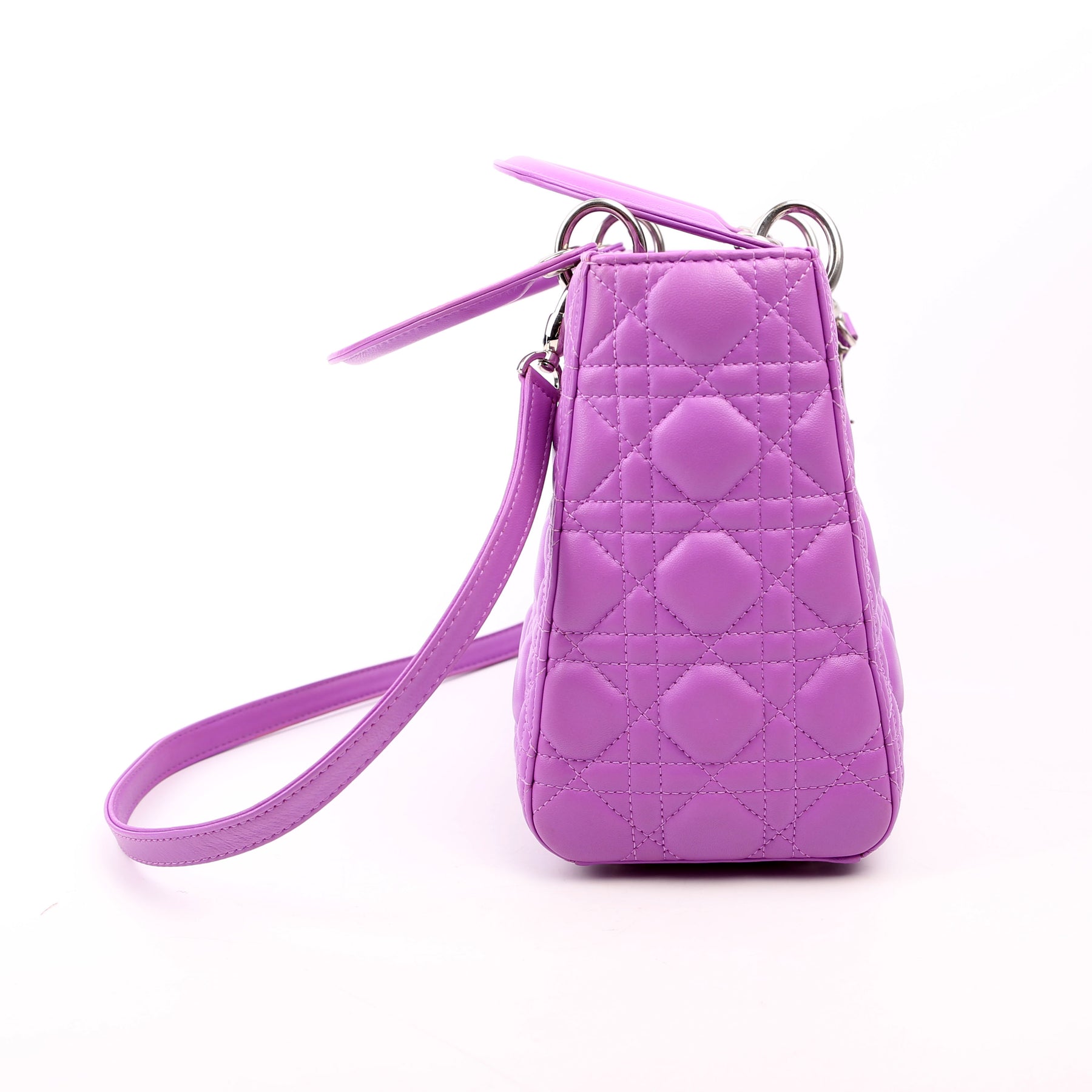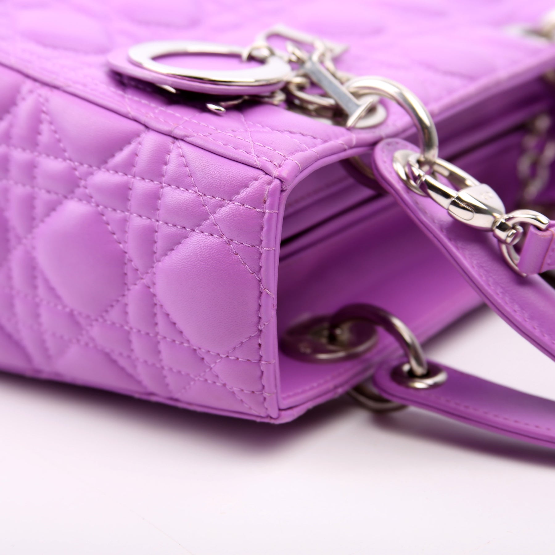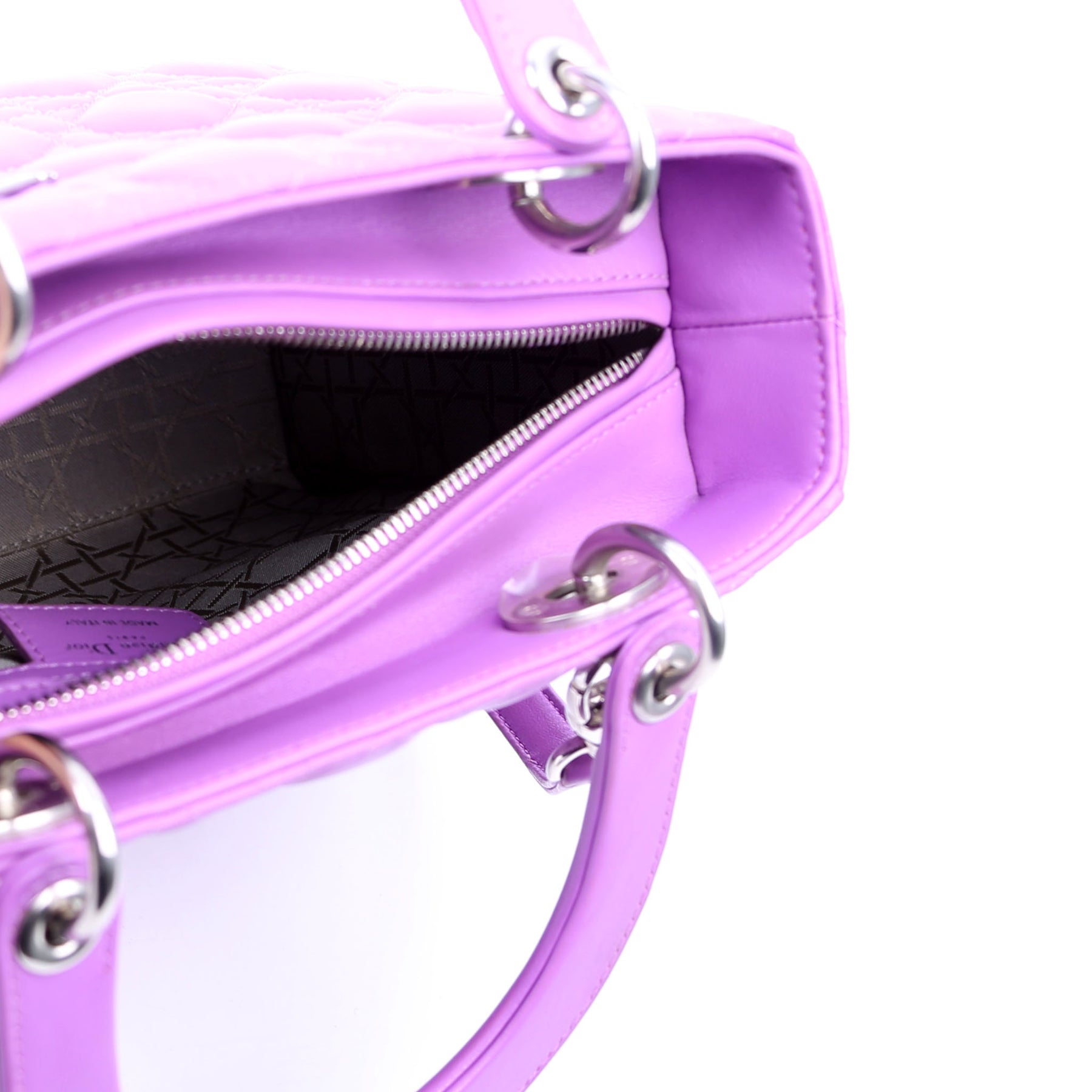This pre-owned Christian Dior Lady Dior Medium Lambskin is guaranteed 100% authentic.