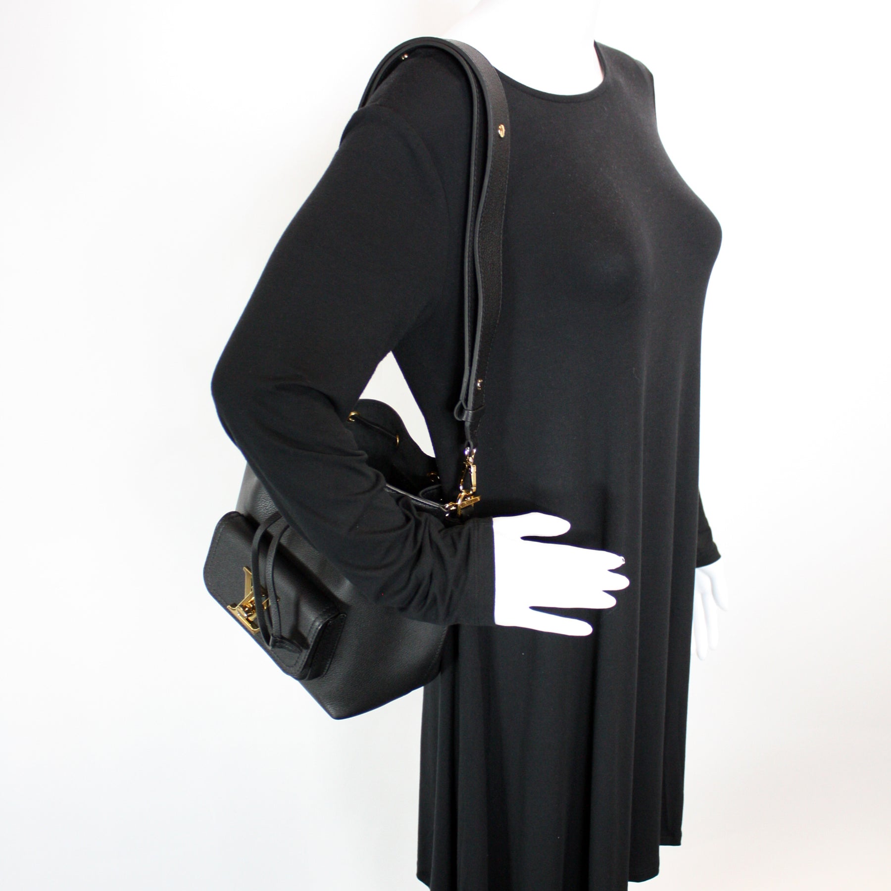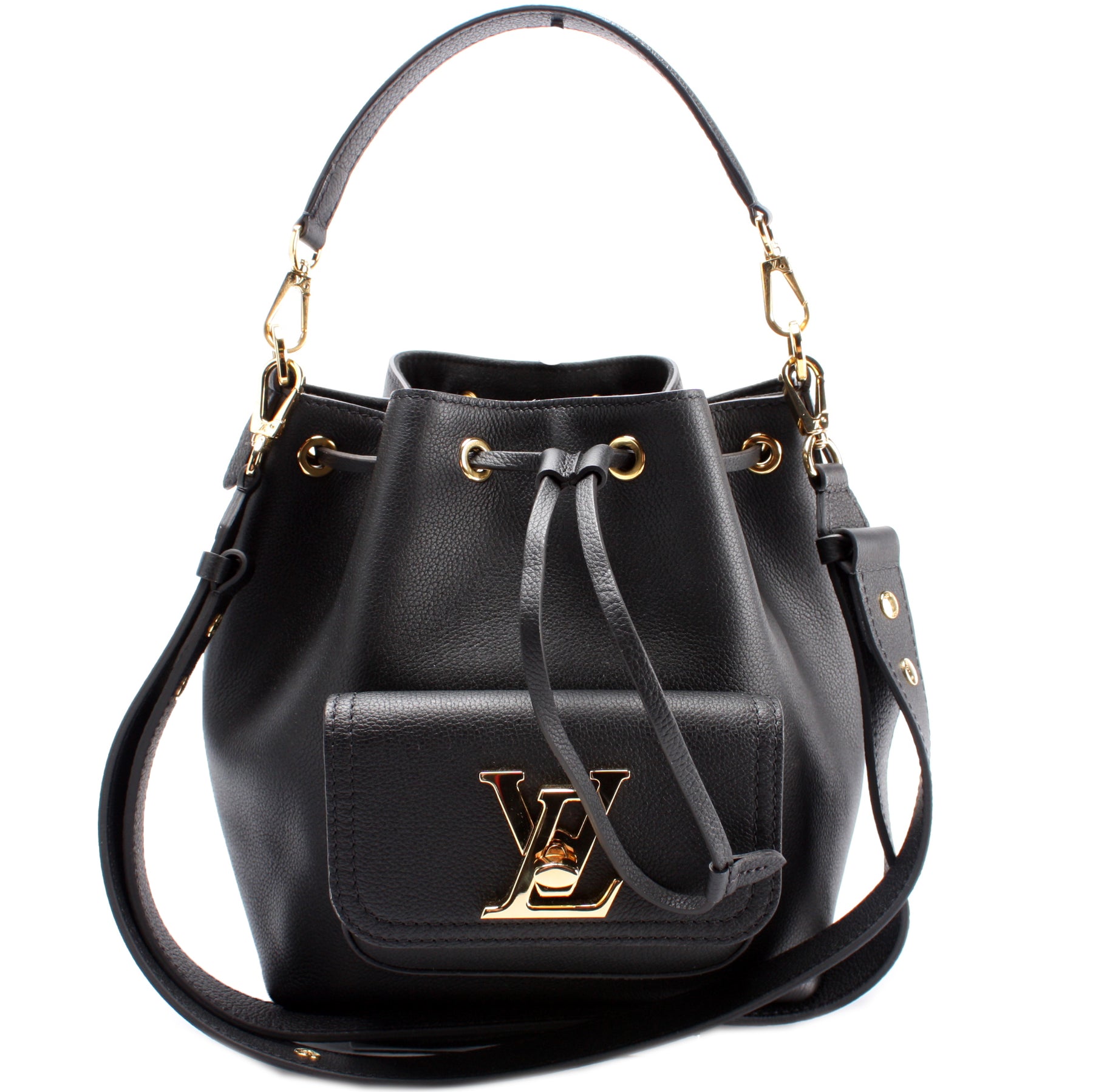 This pre-owned Louis Vuitton Lockme Bucket Bag is guaranteed 100% authentic. The exterior is in the Louis Vuitton calfskin leather.