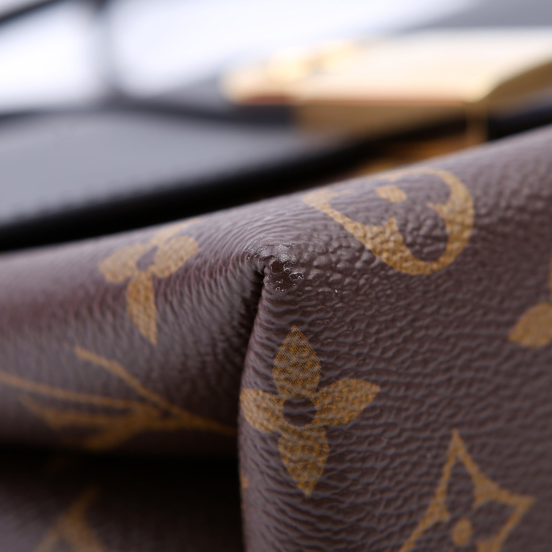 Exterior: The exterior shows minimal wear along the leather. The corners show light wear.