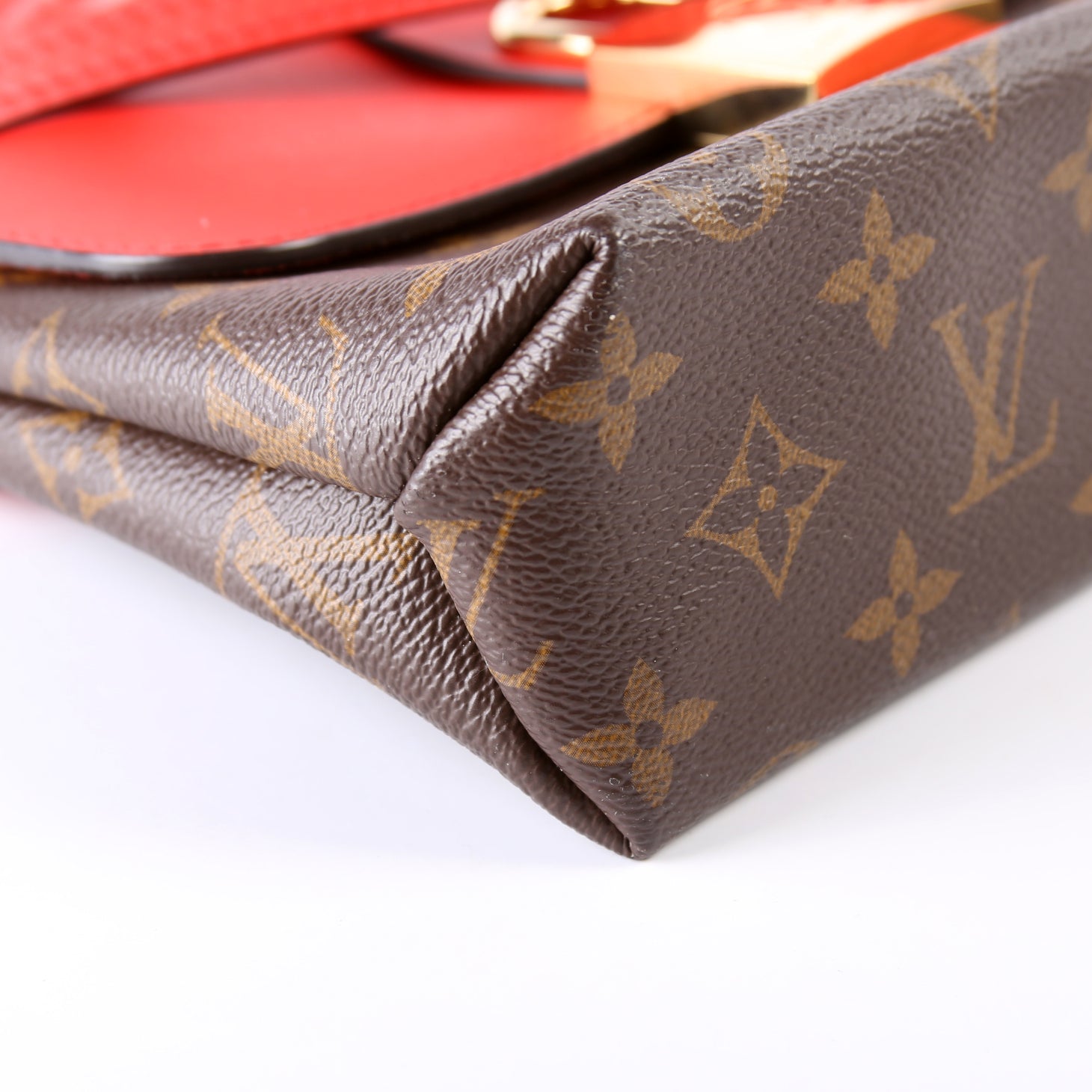 Exterior: The exterior Monogram coated canvas is free of any rips or cracks. The corners show minor wear and rubbing.