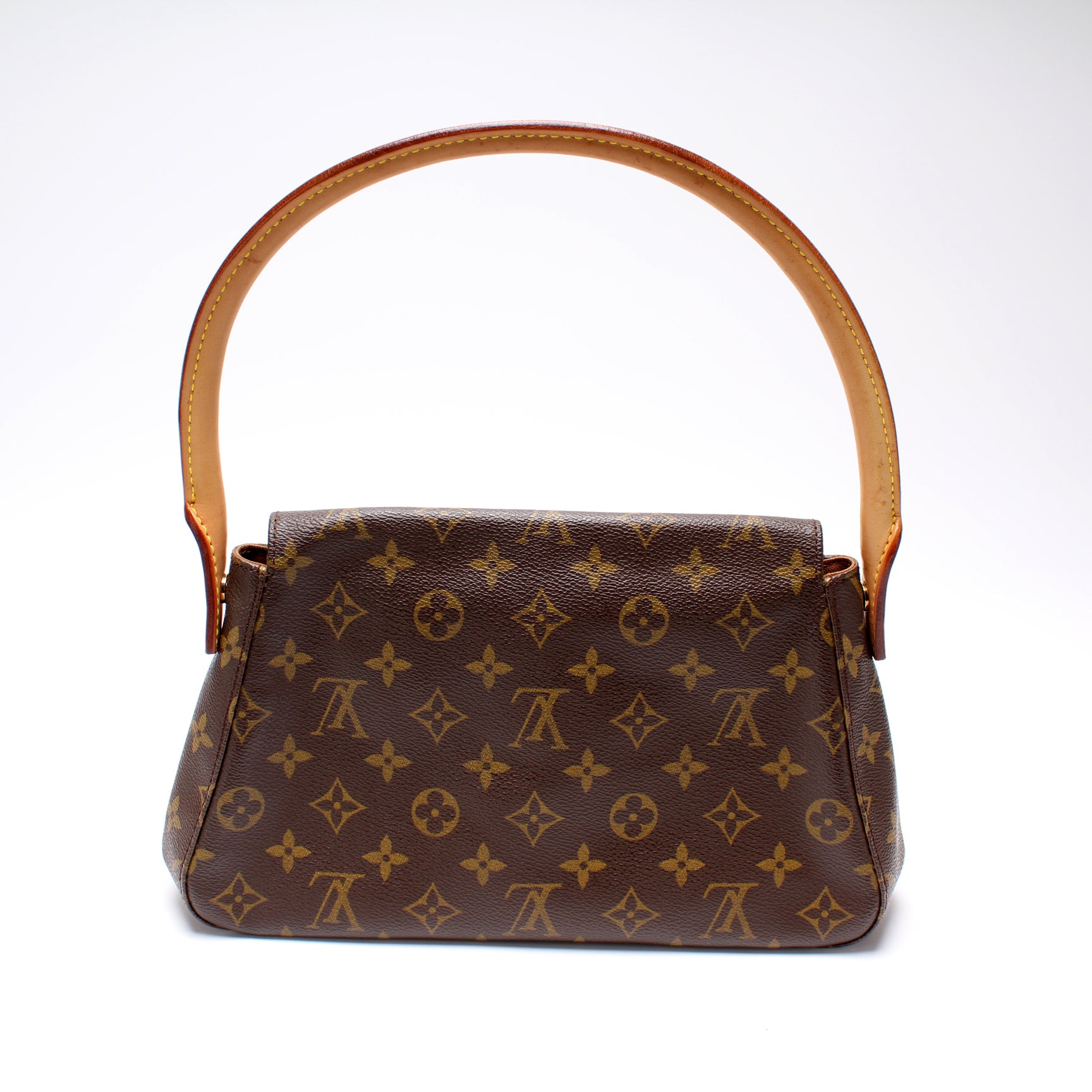 This pre-owned Louis Vuitton Looping Mini is guaranteed 100% authentic. The exterior is in the classic Louis Vuitton Monogram coated canvas.