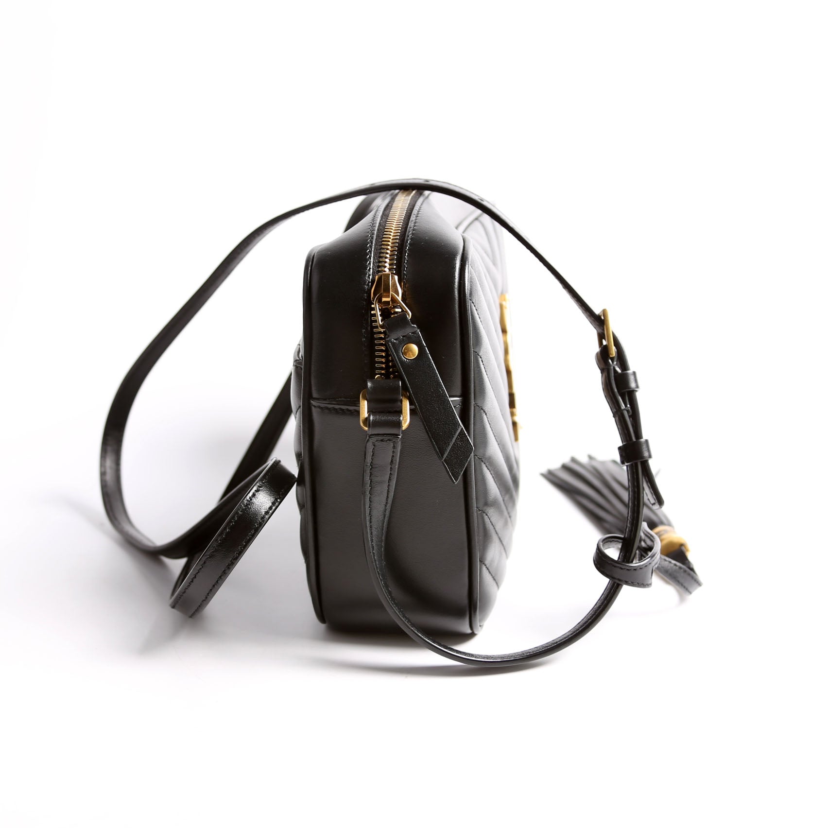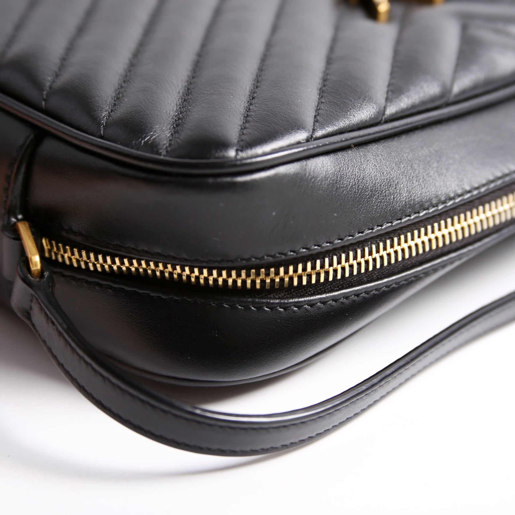 This pre-owned Saint Laurent Lou Camera Bag is guaranteed 100% authentic. The exterior is in the classic Saint Laurent Quilted Chevron leather.