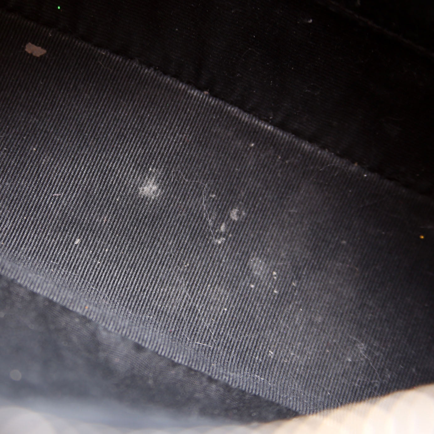 Interior: The interior shows staining throughout. It features one open pocket.
