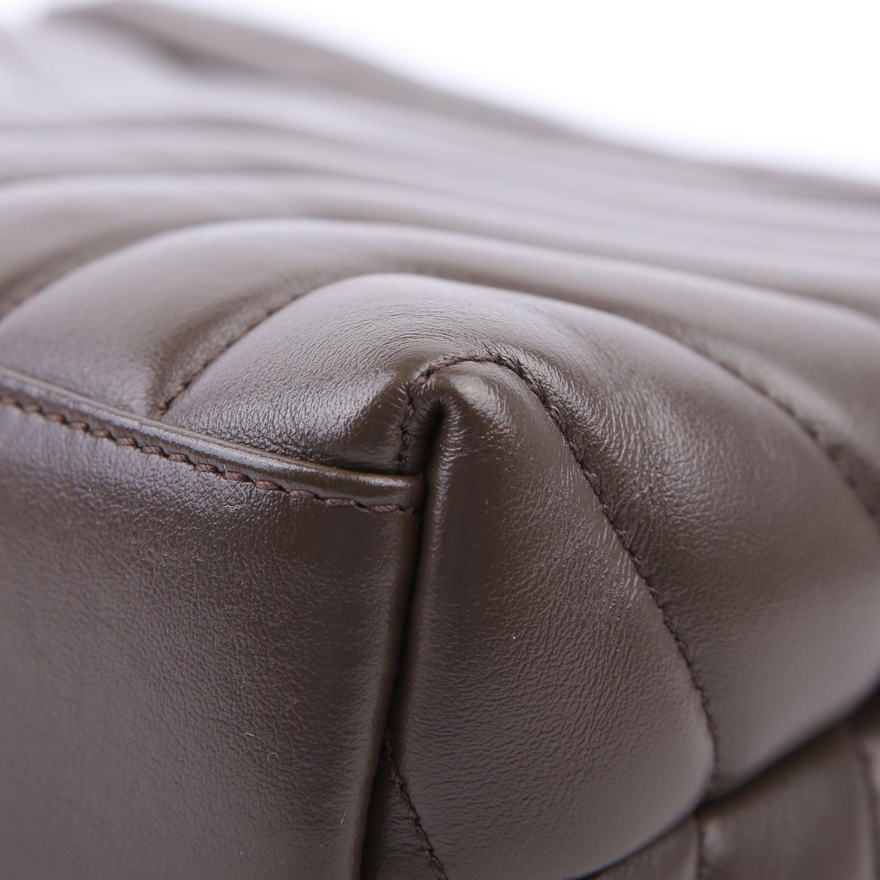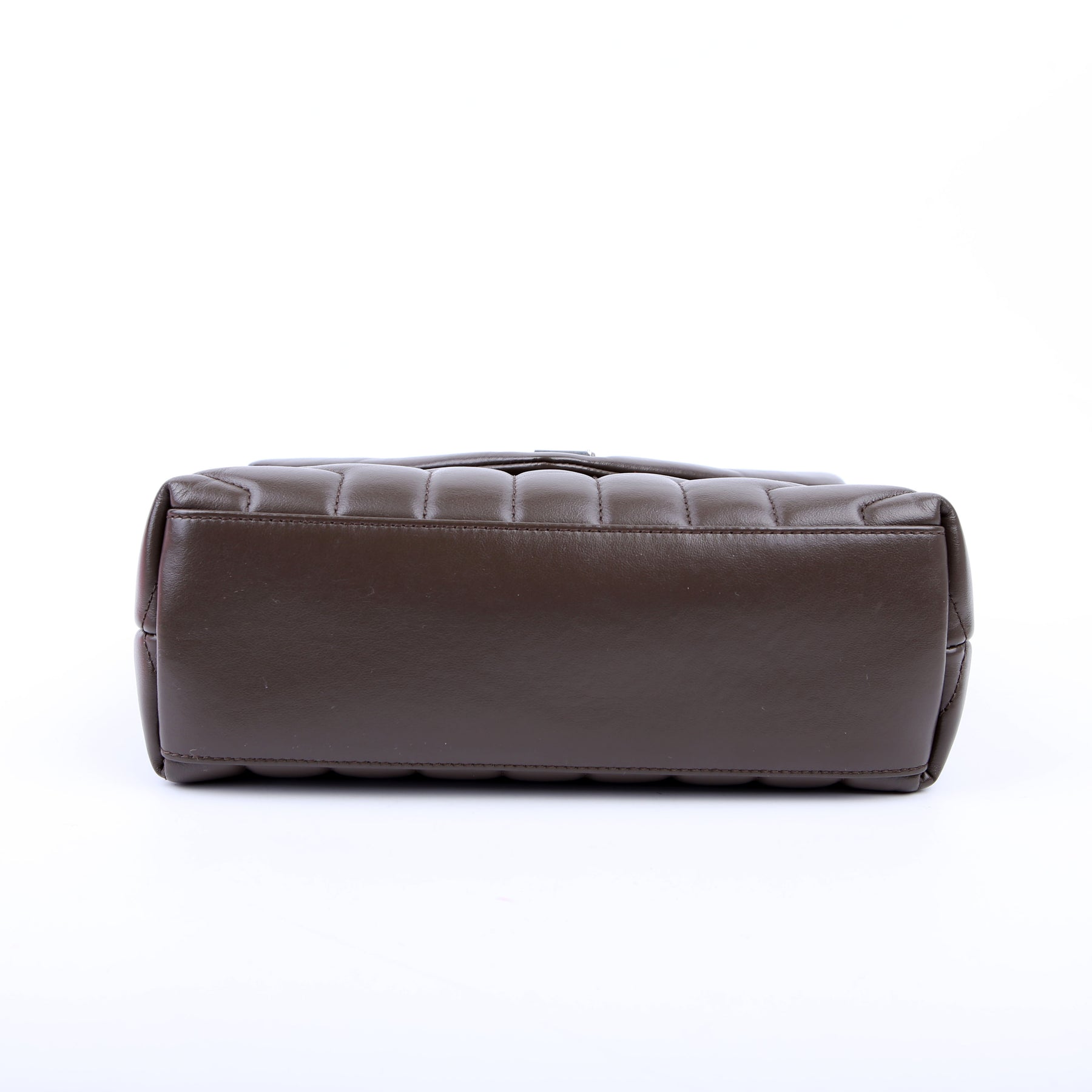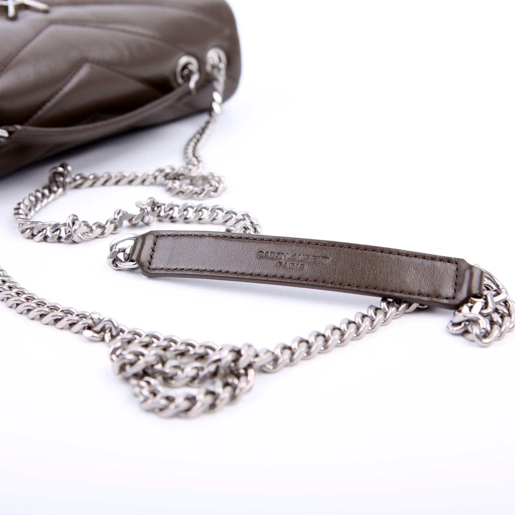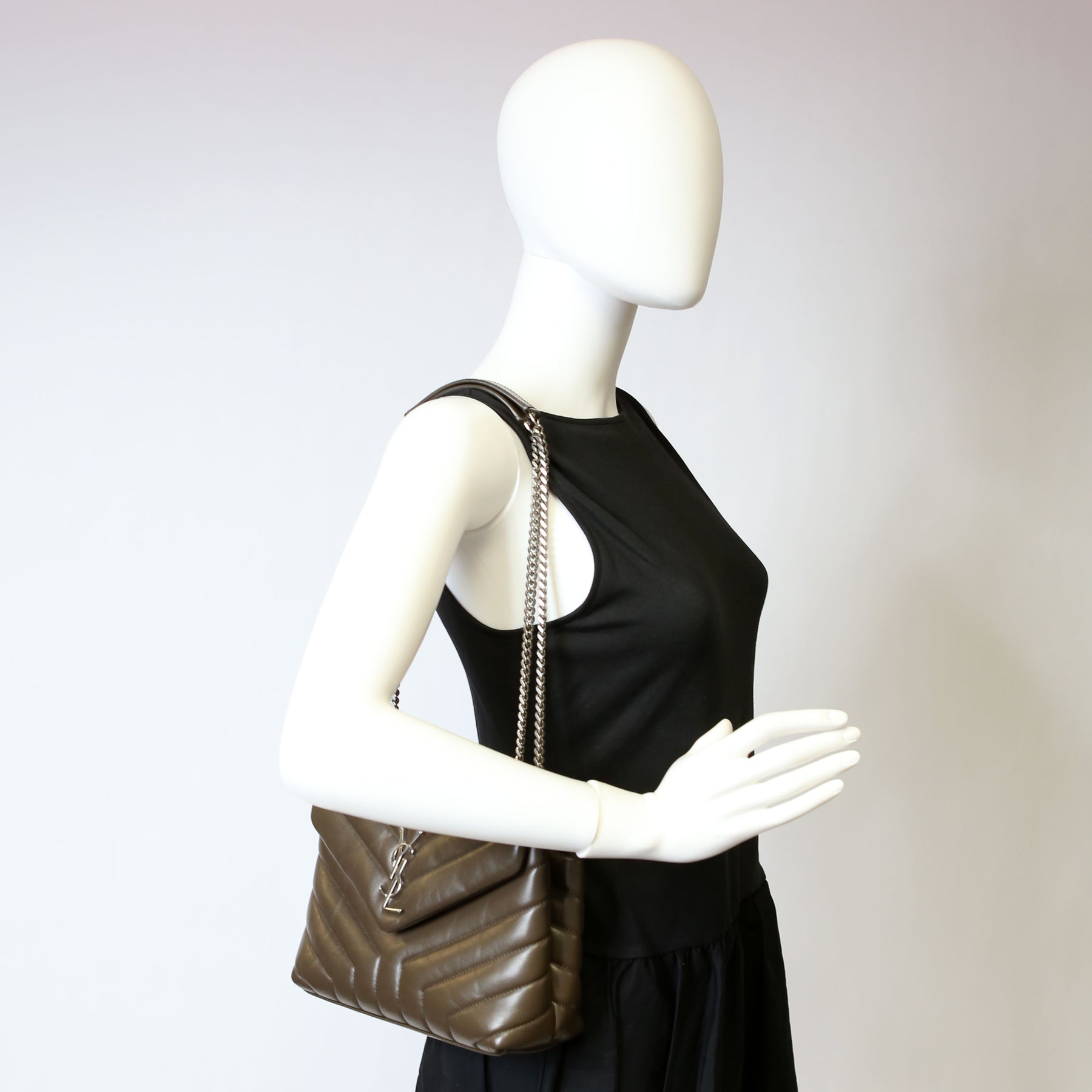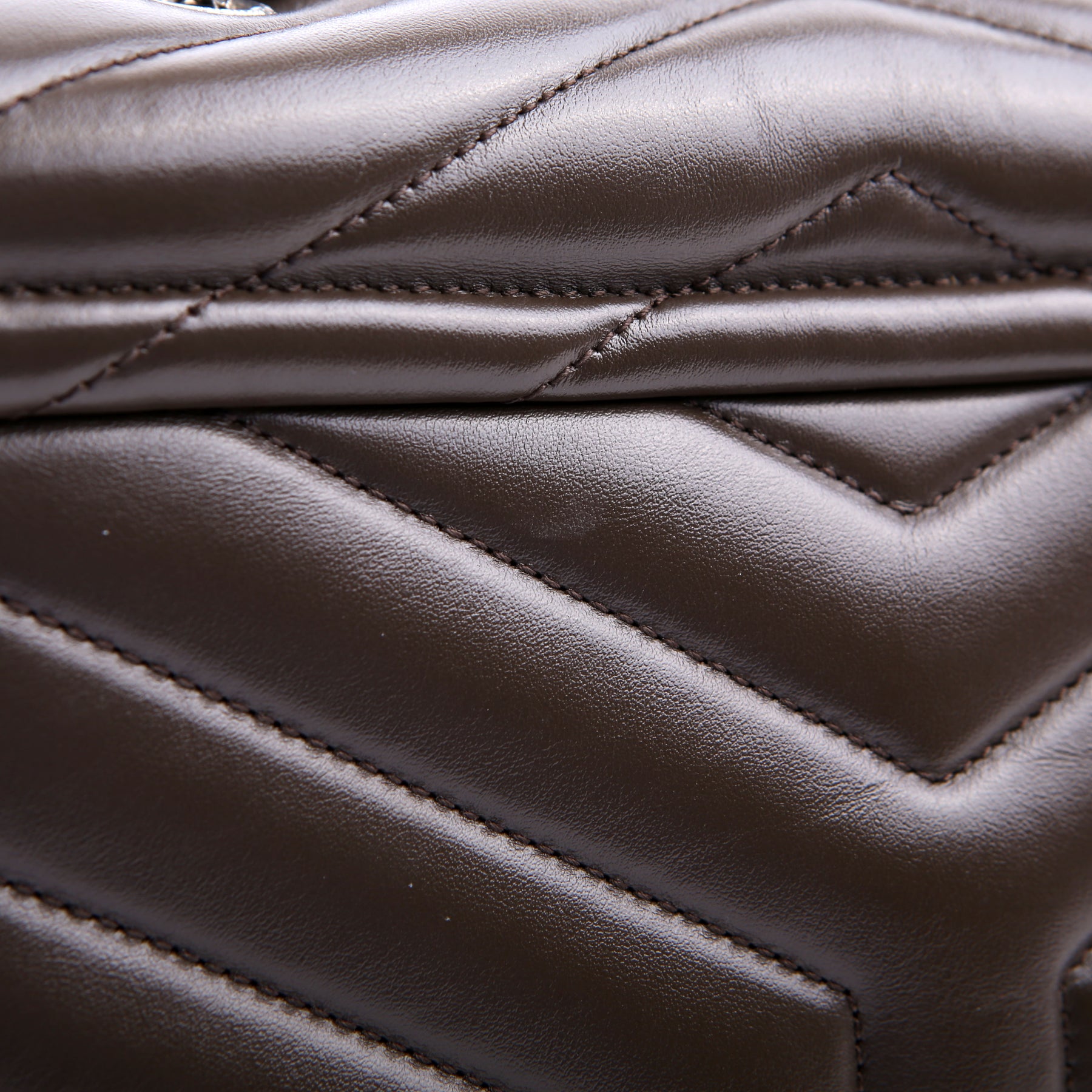 This pre-owned Saint Laurent Loulou Satchel Small is guaranteed 100% authentic. The exterior is in the classic Chevron Calfskin.